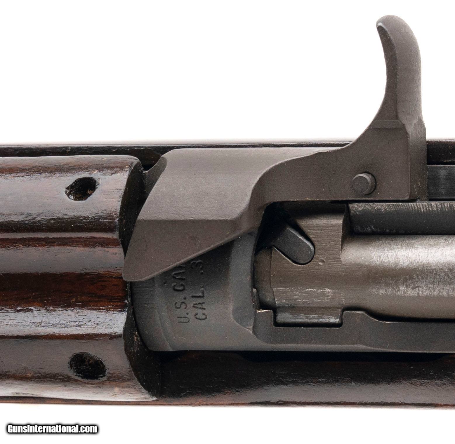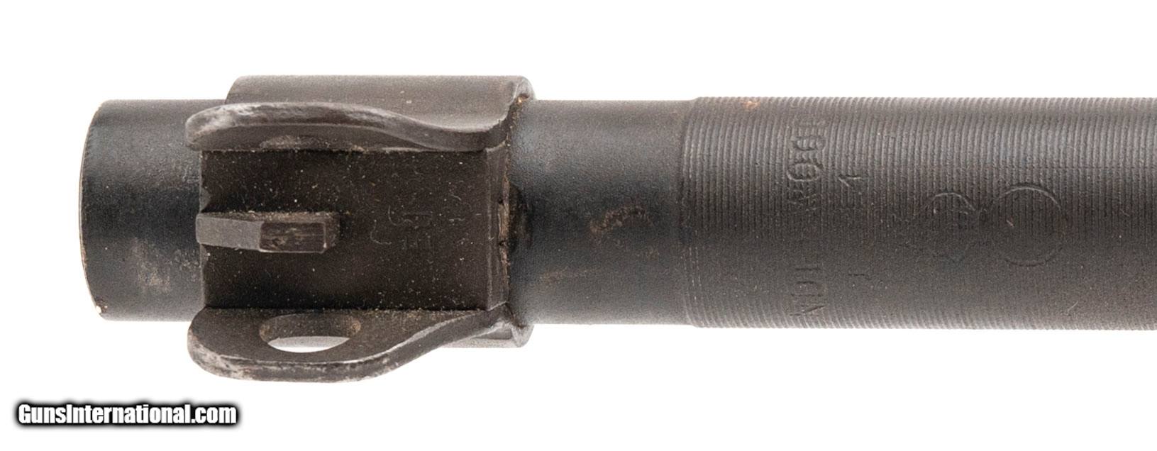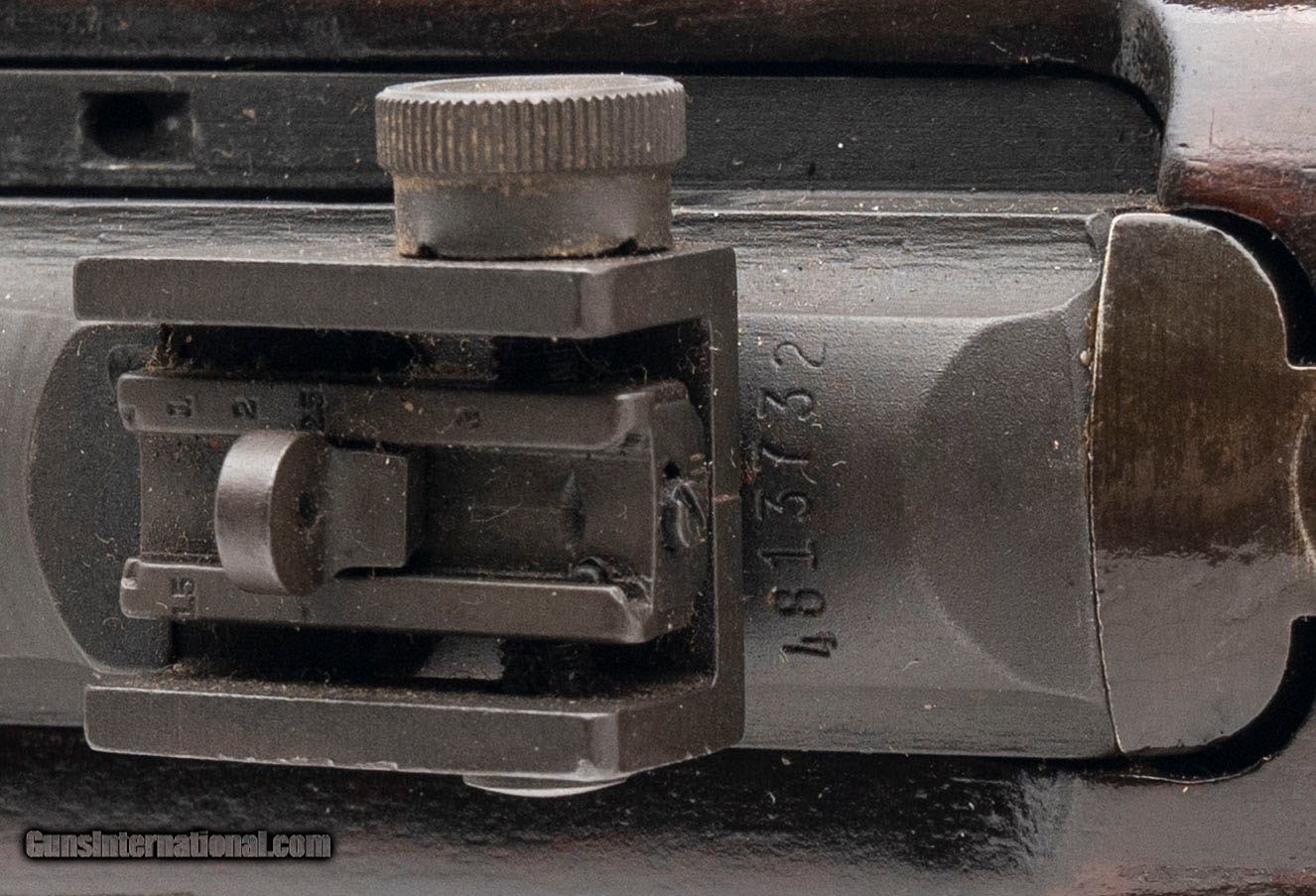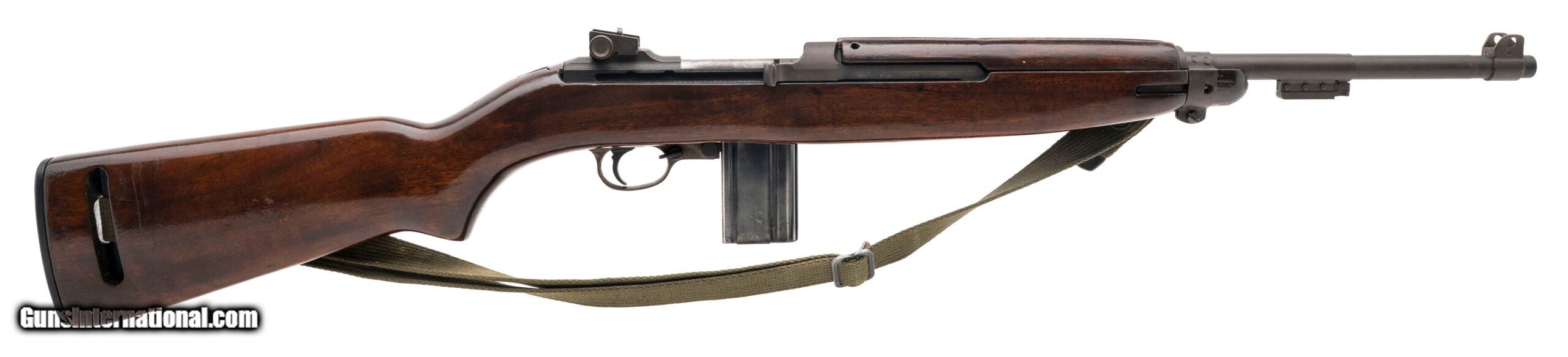 Description: "Serial No. 4813732, manufactured May 1944, .30 Carbine, 18" round barrel faintly marked: “UNDERWOOD / 5-44 / Flaming Bomb" This carbine began life as a wartime production rifle by Quality Hardware, but features several post-war arsenal upgrades. The barrel band has been upgraded to include a bayonet lug, marked with a diamond inside a small shield. The Type II milled adjustable rear sight is unmarked, and a flip safety has replaced the original push-button. The low wood stock has been refurbished and coated with varnish. Carbine comes with a sling and oiler, and the action is smooth and functions correctly. A solid example of a late WWII production carbine updated for extended post-war use. SOLD Curio/Relic: Yes |