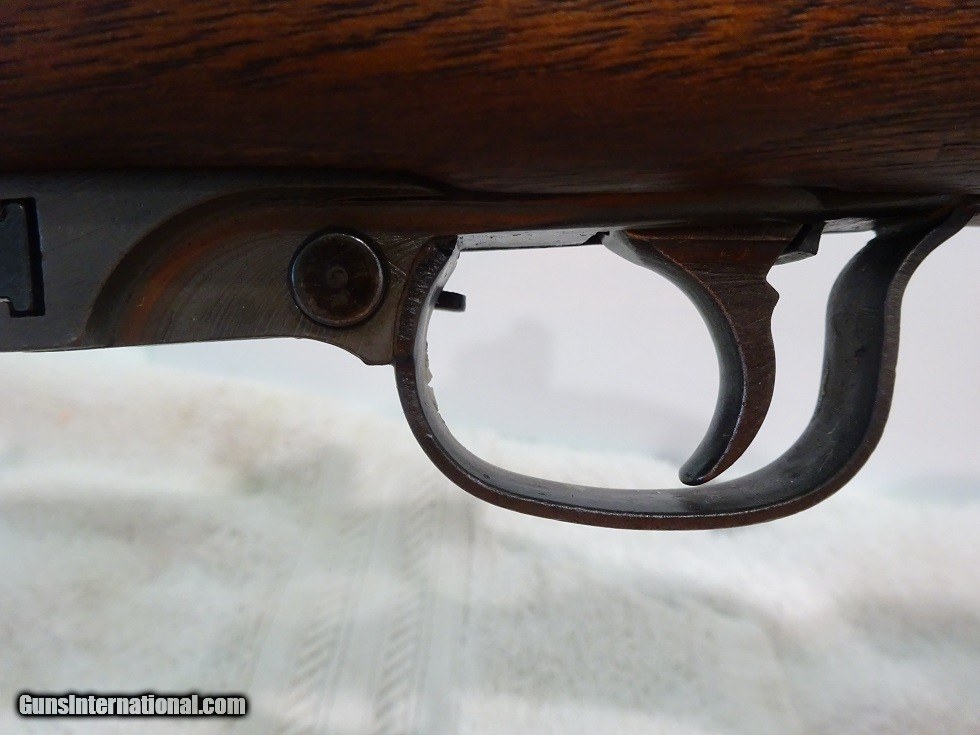 Description: A nice piece of history from WWII, Inland M-1 30 cal Carbine 1943 Semi Auto Rifle Inland Barrel "Manufactory Division General Motors 12-43 IO in sling well Flat Bolt Adjustable Rear Site marked IR Co 716006 "M" on Mag Release Front sight "R" (Inland) Barrel band Type 2 marked KI (Inland) Will ship to a C&R license holder or to an FFL if required by buyers State Laws. $40 shipping cost is with USPS SOLD Curio/Relic: Yes Rifle Caliber: .30 Carbine |
