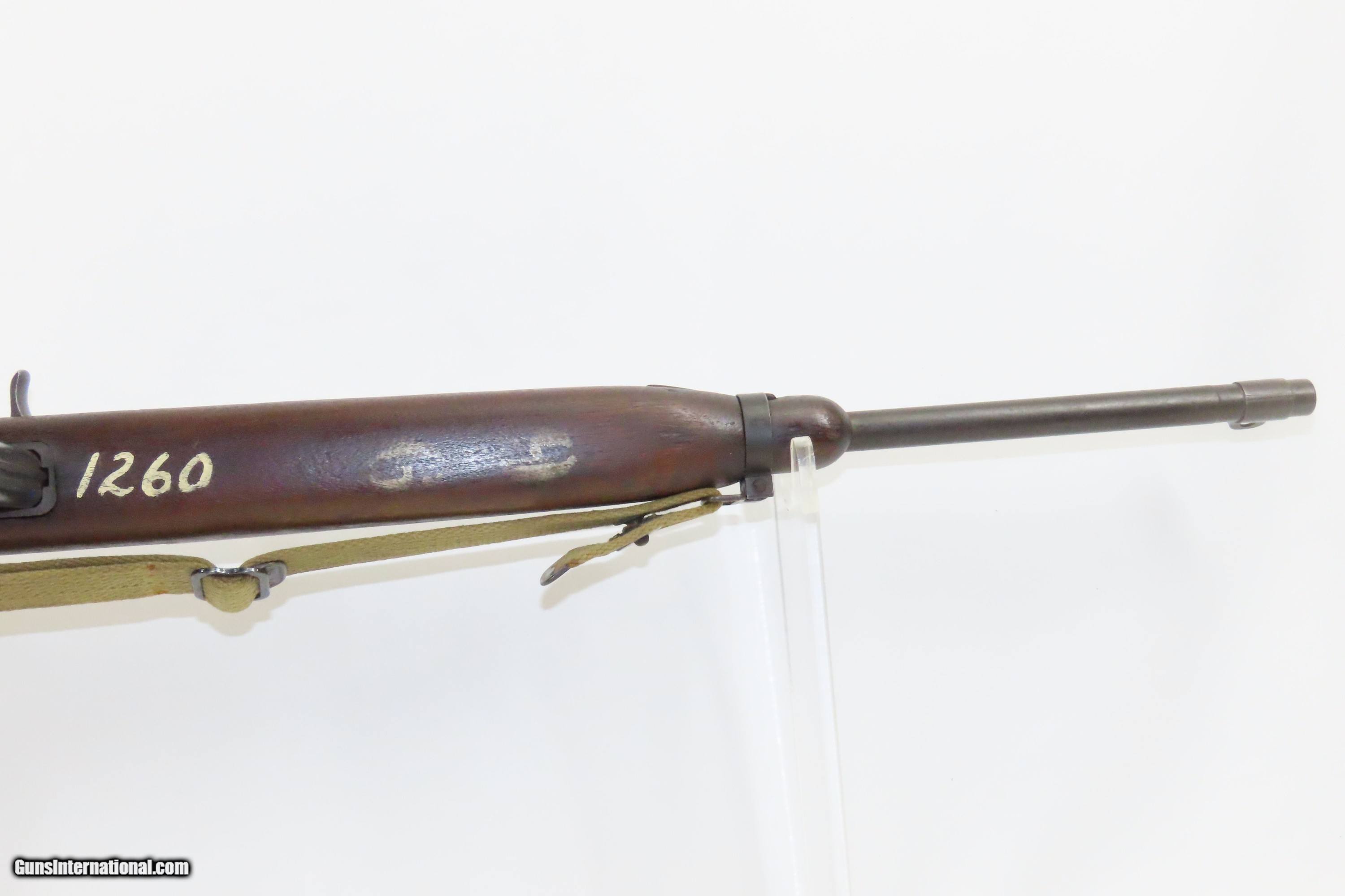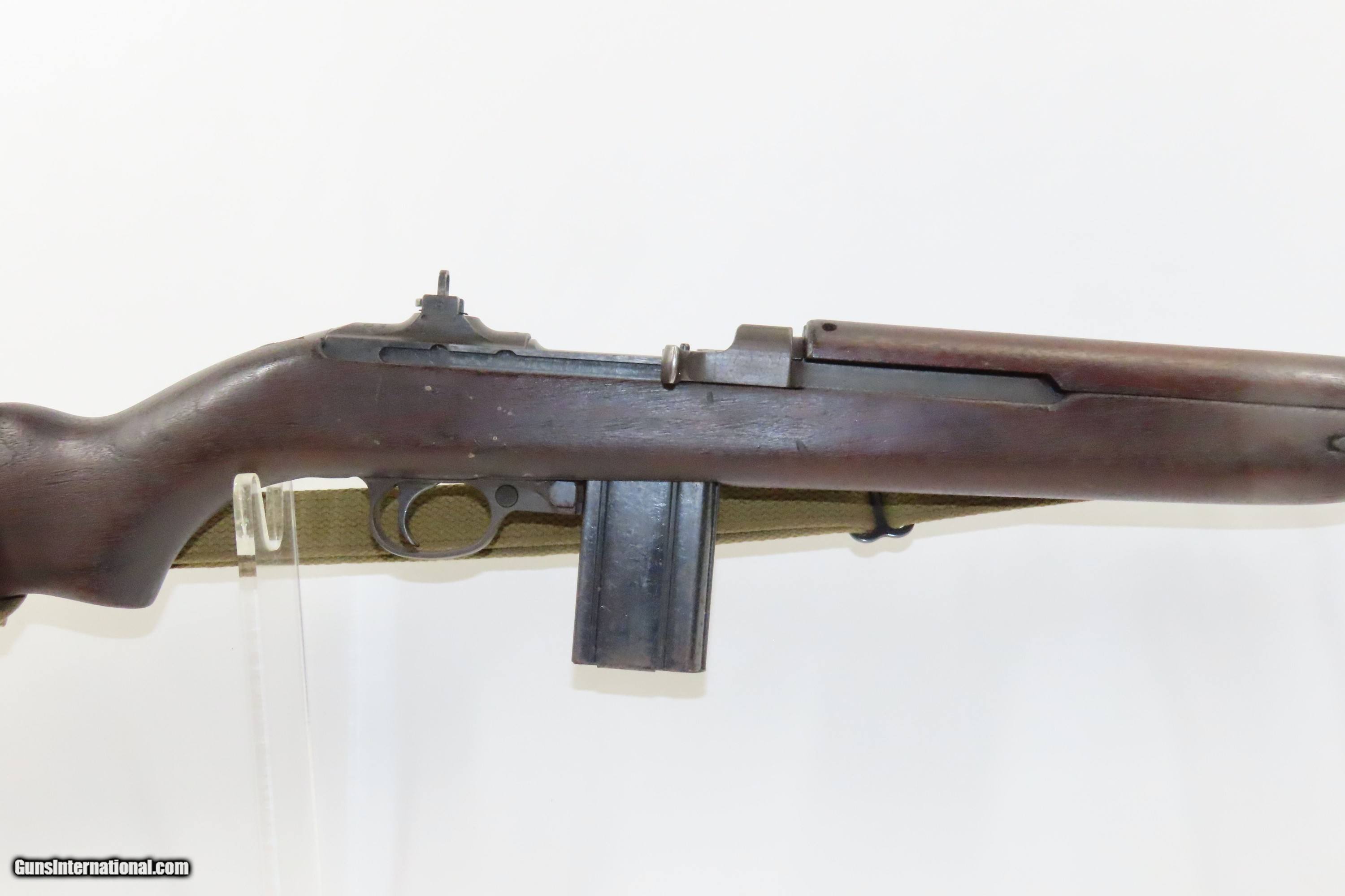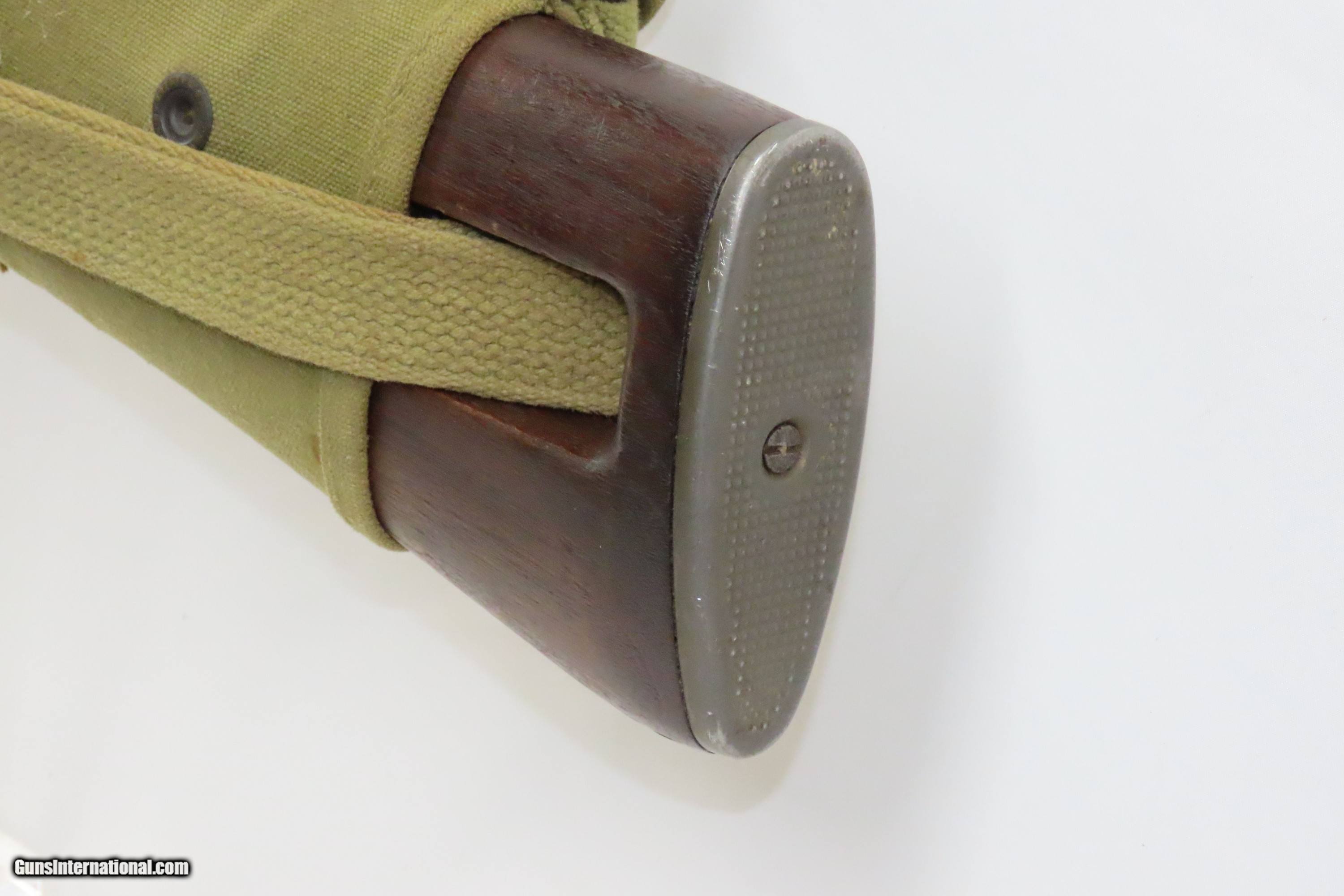 Description: 1943 WORLD WAR II U.S. INLAND M1 Carbine DUAL MAGAZINE Pouch General Motors With Earlier Features, No Bayonet Lug, Push Safety Here we present a C&R U.S. Inland M1 Carbine, manufactured in 1943 at the Inland Division of General Motors in Dayton, Ohio. This .30 caliber semi-automatic rifle was first used by the United States Armed Forces on October 22, 1941, and Inland Division was the first of 10 manufacturers to receive an order two months later in November of 1941 and was one of the only two still producing carbines when the war ended in 1945. Of the 6,110,730 carbines made of all types built during the war, Inland made 2,625,000, or 43% of the total. Despite having similar name and appearance, the M1 Carbine is not a carbine version of the M1 Garand rifle. They are different firearms and use different ammunition. Prior to World War II, U.S. Army Ordnance received many reports that the full-size M1 Garand was too heavy and cumbersome for most support troops, such as mortarmen and radiomen to carry. During prewar and early war field exercises, it was found that the M1 Garand impeded these soldiers' mobility, as a slung rifle would frequently catch on brush, bang the helmet and tilt it over the eyes. Many soldiers found the rifle slid off the shoulder unless slung diagonally across the back, where it prevented the wearing of standard field packs and haversacks. Additionally, Germany's use of glider-borne and paratroop forces to launch surprise ‘blitzkrieg’ attacks behind the front lines generated a request for a new compact infantry weapon to equip support troops. This request called for a compact, lightweight defensive weapon with greater range, accuracy and firepower than handguns, while weighing half as much as the Thompson submachine gun or the M1 rifle. The U.S. Army decided that a carbine would adequately fulfill these requirements and specified that the new arm should weigh no more than five pounds and have an effective range of 300 yards. Paratroopers were also added to the list of intended users and a folding-stock version would also be developed. The M1 carbine was also one of the most cost-effective weapons used by the United States military during World War II. At the beginning of World War II, the average production cost for an M1 carbine was approximately $45, about half the cost of an M1 rifle at approximately $85 and about a fifth of the cost of a Thompson submachine gun at approximately $225. The .30 Caliber carbine ammunition was also far cheaper to produce than the standard .30-06 ammunition; used fewer resources, was smaller, lighter, faster and easier to make. These were major factors in the United States military decision to adopt the M1 carbine, especially when considering the large numbers of weapons and ammunition manufactured and transported by the United States during World War II. This one does not have a bayonet lug and retains its dual aperture peep sight and push type safety. The overall condition is very good. Original finish. The action is excellent. The bore is shiny bright with sharp rifling. The stock has a “P” within a square in front of the pistol grip. There is a “R.R.A.” marking on the left side off the stock. The sling inlet is marked “R.M.C.”. There are two painted inventory numbers forward of the magazine. The barrel is inland and dated “7-43”. This firearm is classified as a Curio & Relic. Barrel is 18 inches. Caliber: .30 Carbine Overall condition as seen in photos. Very Fast. Very Safe. FREE SHIPPING. Will need to be sent to your local FFL or C&R licensee. This firearm is classified as a Curio & Relic. Guaranteed AUTHENTIC & Includes CERTIFICATE OF AUTHENTICITY. ancestryguns $2700 #233443 SOLD Antique: Yes |