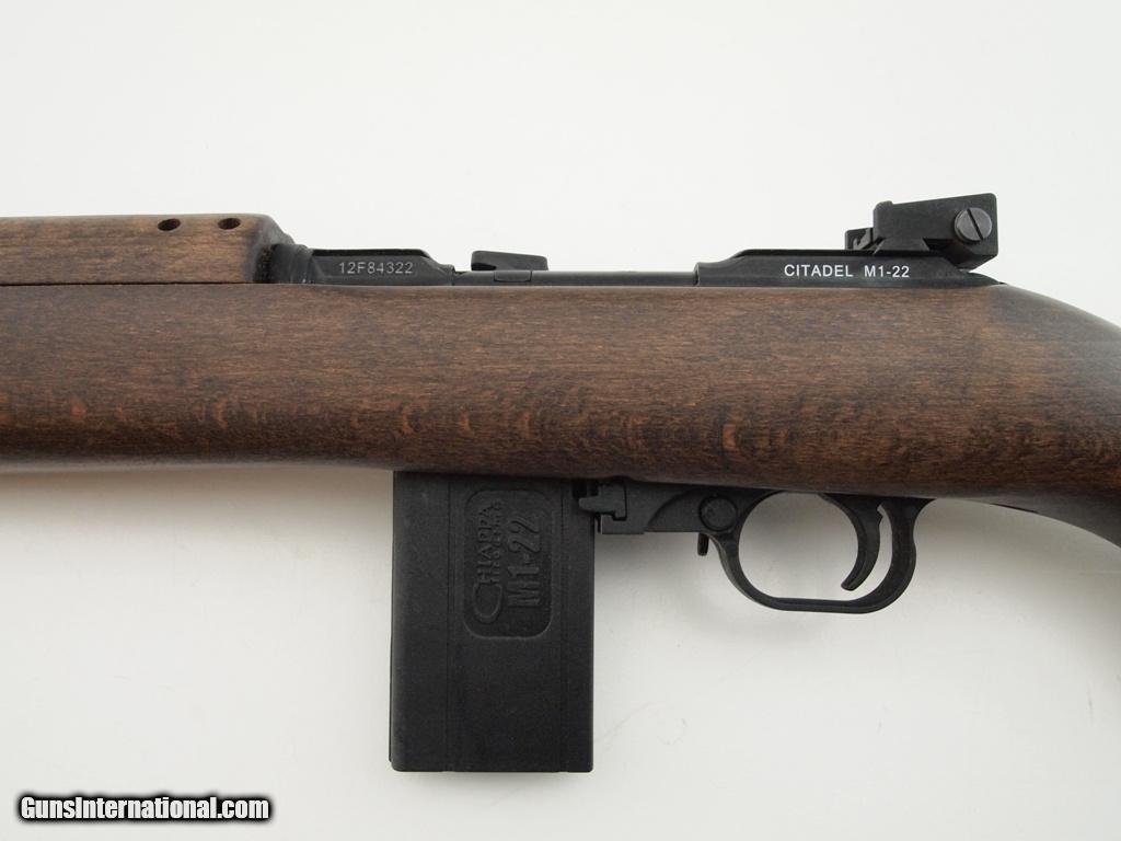 Description: Citadel M1 Carbine, .22 LR, NIB, 18" bbl, adjustable rear peep sight, front sight is blade in military wings, blued finish, very nice wood stock, and metal butt plate. Add 3% for Credit Card Shipping $30.00 SOLD |