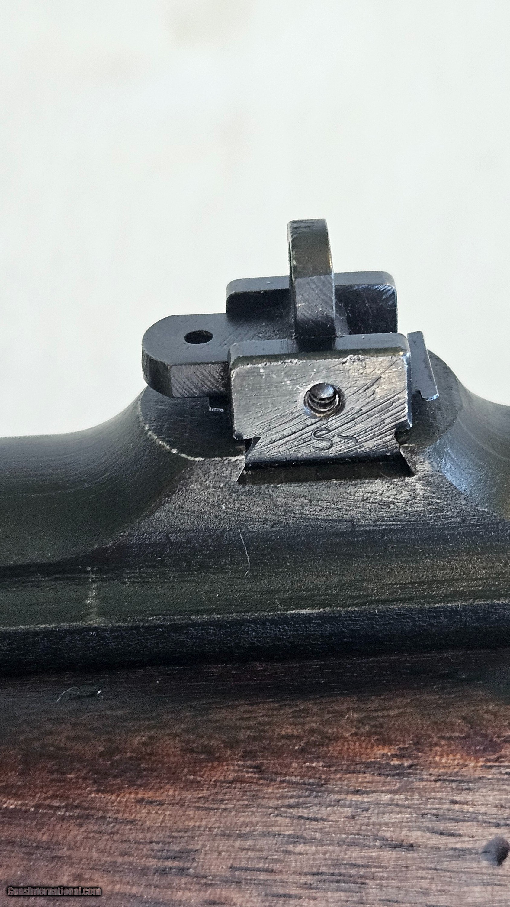 Description: This is INLAND serial #165109 in Factory Correct configuration. The barrel is Inland 1-43 with a bright and shiny bore. The stock is a dark walnut Inland I-cut Highwood stock made by Overton. There are no cracks or repairs that I find. The highwood is intact and the matching handguard is a Type 2 two rivet with a deep, wide sight groove. The sling well is marked I0 and a rack#. The flip sight is marked S~. Trigger housing is Inland T2 with all correct Inland parts including an HI marked T2 Dogleg Hammer, T1 serrated safety, T2A Mag Catch, T1 sear and a proper 22 coil hammer spring. Slide is Inland T2 marked PI in a circle and has the arc cut on the rear. Barrel Band is T1 narrow 3 weld band with a UI swivel. Front sight is sideways N to look like Z. This is a fine collectable Early Inland M1 Carbine that will make a great addition to any collection. Curio/Relic: Yes Rifle Caliber: .30 Carbine Manufacturer: Inland Model: .30 CARBINE Serial Number: 165109 Barrel Length: 18 Bore Info: EXCELLENT Condition: EXCELLENT Metal Condition: EXCELLENT Wood Condition: EXCELLENT Bore Condition: BRIGHT, SHINY Barrels: Inland Barrel Type: USGI Action: Semi -Auto Stock: Type 1 I-cut Highwood IO Finish: USGI Weight: 5.5 lbs Manufacture Date: January 1943 Price: $4,150.00 Buy Now Contact Seller |