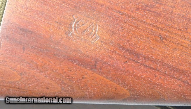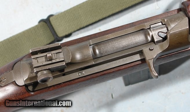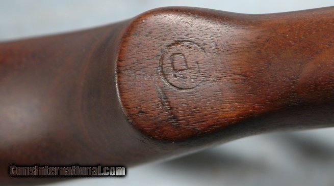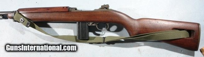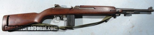 Description: EARLY WW2 NATIONAL POSTAL METER U.S. M1 .30 CAL. CARBINE DATED 8-42. All original and matching with late WW2 battle sight and bayonet lug added. August 1942 production with correct 1,53x,xxx early serial number. Excellent plus condition with 98% original Parkerizing. Matching stock and handguard with excellent Ordnance cartouche on butt the original finish. Working order and bright extra nice bore. Original magazine, oiler and sling. SOLD Curio/Relic: Yes |