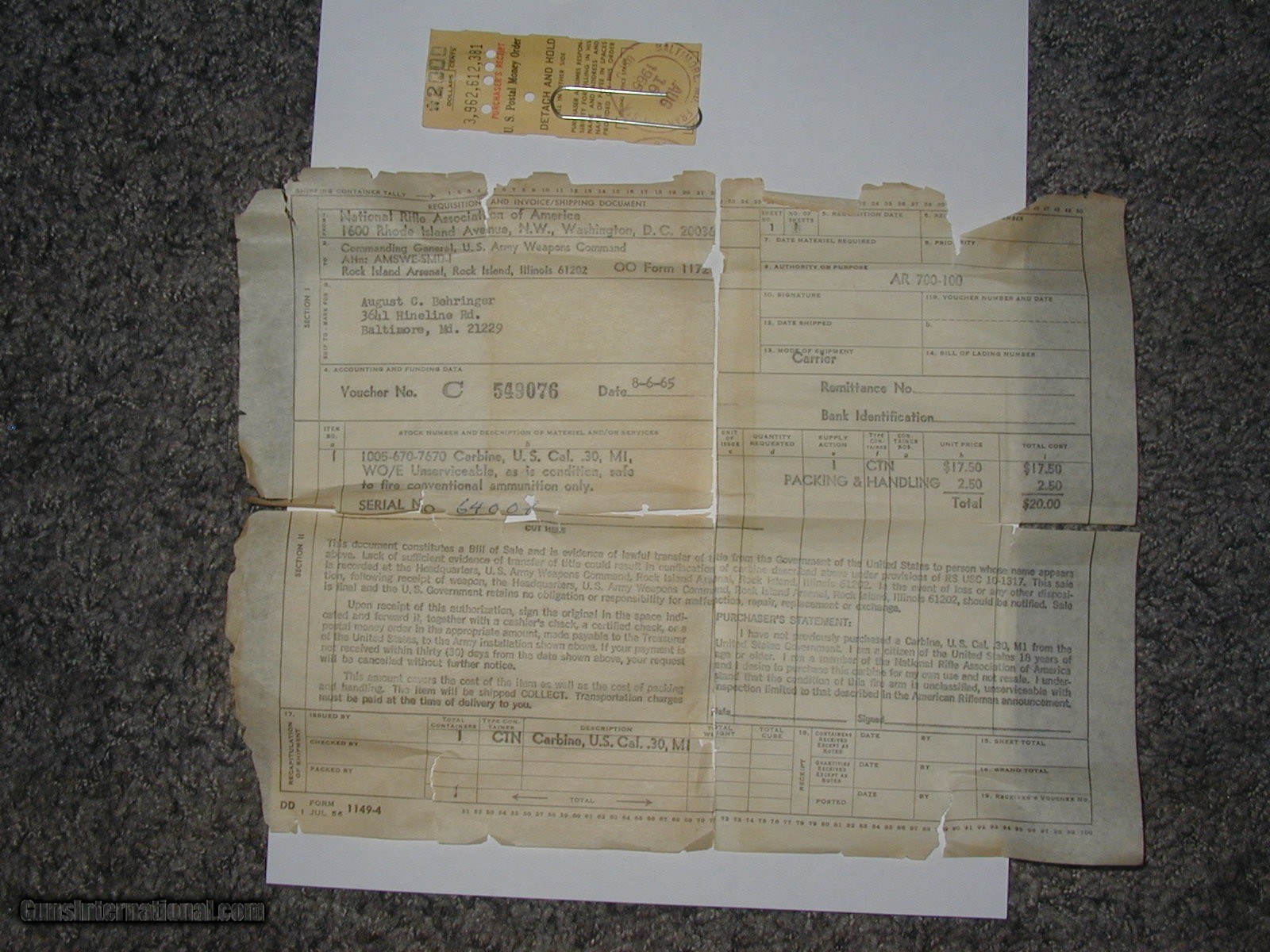 64, XXX, CARBINE w/ DCM/NRA PAPERS IN ALL ORIGINAL UNALTERED CONDITION