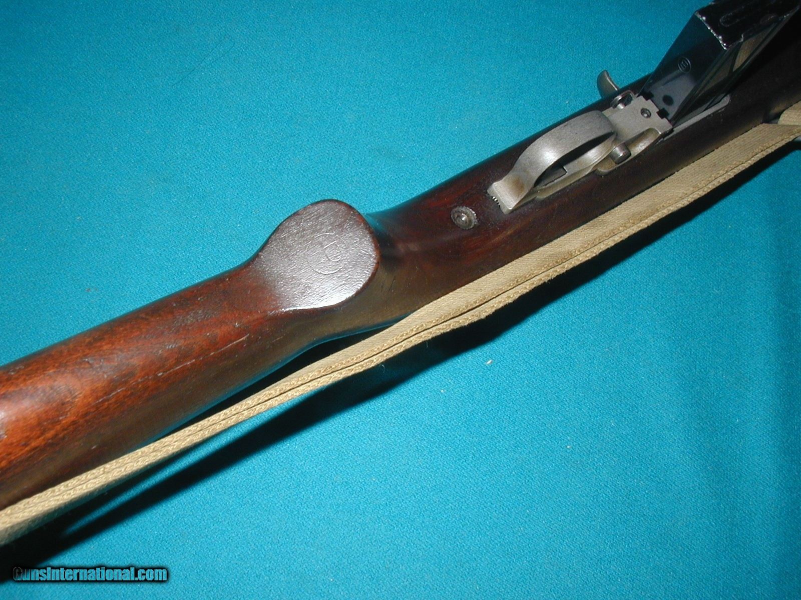 Description: THIS IS A BEAUTIFUL ALL ORIGINAL 10-42, 64, XXX EARLY INLAND CARBINE....IT SHOWS VERY LIGHT USE AND SOME HONEST WEAR, BUT STILL IS IN BEAUTIFUL AS ORIGINALLY ISSUED CONDITION....ALL INTERNAL PARTS ARE CORRECT , DOG LEG HAMMER, SERRATED MAG RELEASE, SPRING LOADED RETAINING PIN, OI BOLT, CIRCLE P OP ROD, DOUBLE BEVEL TRIGGER HOUSING, ETC......MINT BORE, GREAT CARTUCHED WOOD, JUST A REALLY NICE UN-,MOLESTED EARLY M1 CARBINE.....WITH ORIGINAL PAPERS AND POSTAL M.O. PAY STUB OF ORIGINAL PURCHASE IN 8/65.....KHAKI SLING AND EARLY INLAND DRAIN HOLE MAG. ......C&R OK SOLD Curio/Relic: Yes |