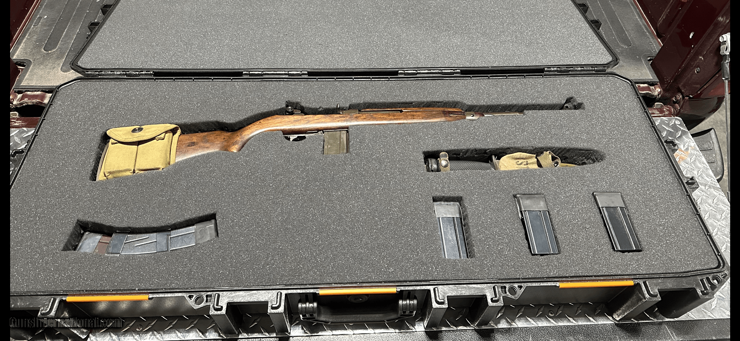 Description: IBM WWII M1 .30 CARBINE #3862061 BUILT EARLY 1944, IBM 18" BARREL NO DATE SHINNY BORE AND SHARP RIFLING WITH PERFECT ORDNANCE CROSSED CANNONS STAMP AND ORDNANCE INSPECTOR STAMP LW-B IN SLING WELL. PREFERRED 4 POSITION REAR SIGHT, PARKERIZING 98% WITH WOOD IN GREAT CONDITION WITH MINIMAL HANDLING MARKS. MILITARY SLING AND 2-15RD MAG POUCH, OILER IS IN TACT ALSO US VICTORY MFG. INC. 1944 MILITARY MUZZEL COVER. BAYONET WITH SCABBARD, 11- 15RD MAGS AND 2- 30RD BANNANA STYLE MAGS WITH JUNGLE CLIP AND 10 RUBBER MAG COVERS. OUTSTANDING COLLECTABLE SHOOTER WITH PELICAN VAULT HARD CASE CUSTOM FITTED. THIS CARBINE IS BEING OFFERD FOR SALE FROM EXTENSIVE COLLECTION UNDER CURRENT OWNERSHIP FOR 39 YEARS. PRICE INCLUDES SHIPPING, WIRE TRANSFER FOR PAYMENT, 3 DAY INSPECTION PERIOD IF THE RIFLE LEAVES FFL DEALER INSPECTION IS OVER NO RETURN, REACH OUT FOR ANY QUESTIONS THANKS FOR LOOKING! SOLD Curio/Relic: Yes Rifle Caliber: .30 Carbine Manufacturer: I B M Model: M1 .30 CARBINE Serial Number: 3862061 Barrel Length: 18 Condition: As shown in pictures |