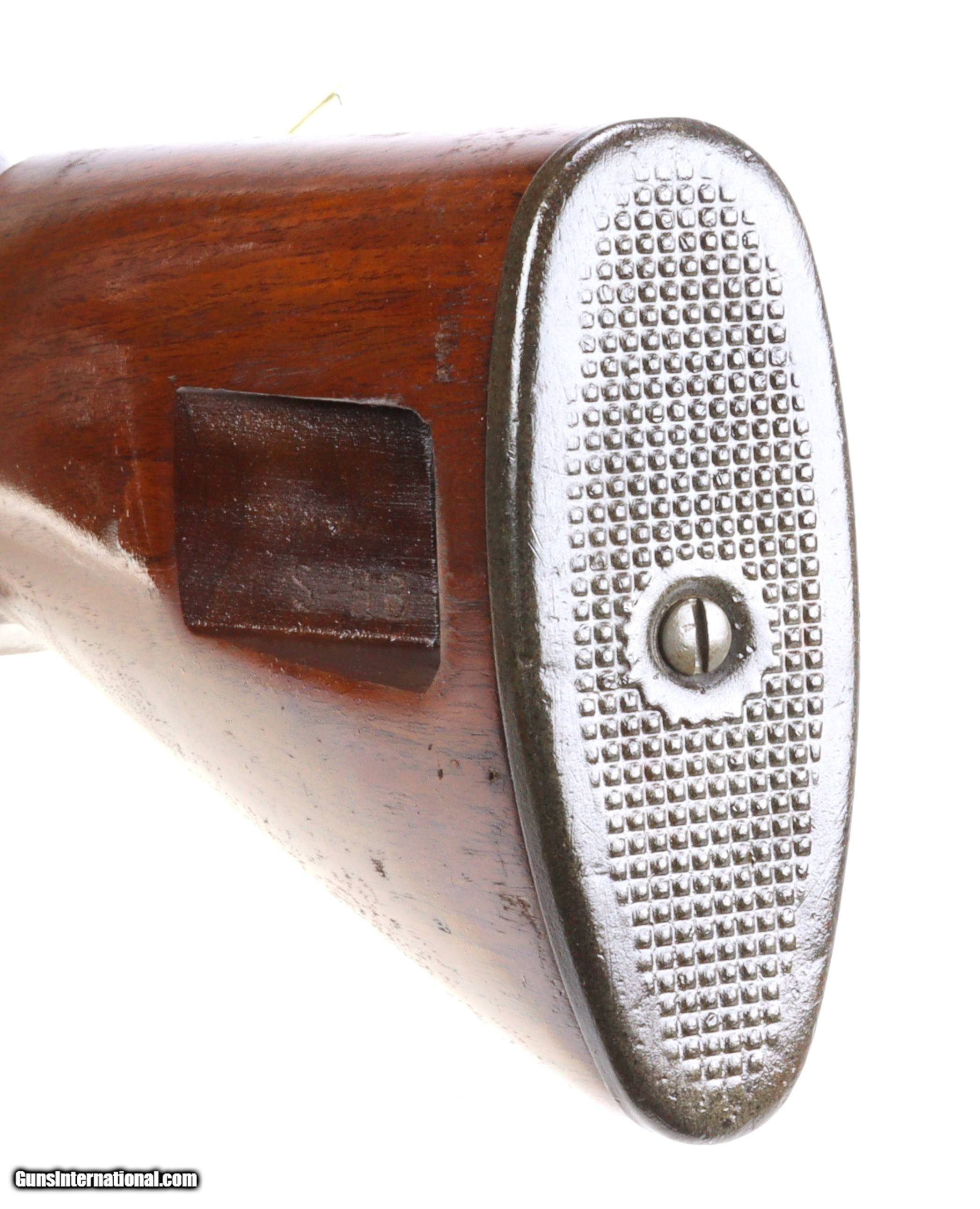 Description: IBM, M1 CARBINE, SN#3671279, .30 Caliber, 18" Barrel w/VG Bore. LOP: 13 1/8", Weight: 5lbs, 7ozs. Original Metal Butt Plate. Trigger pull: 5lbs 5ozs. Stock has been Refinished by Shooters Exchange, Ships to Lower 48, W/Insurance. $45.00 Sold to TX Buyer SOLD Curio/Relic: Yes |