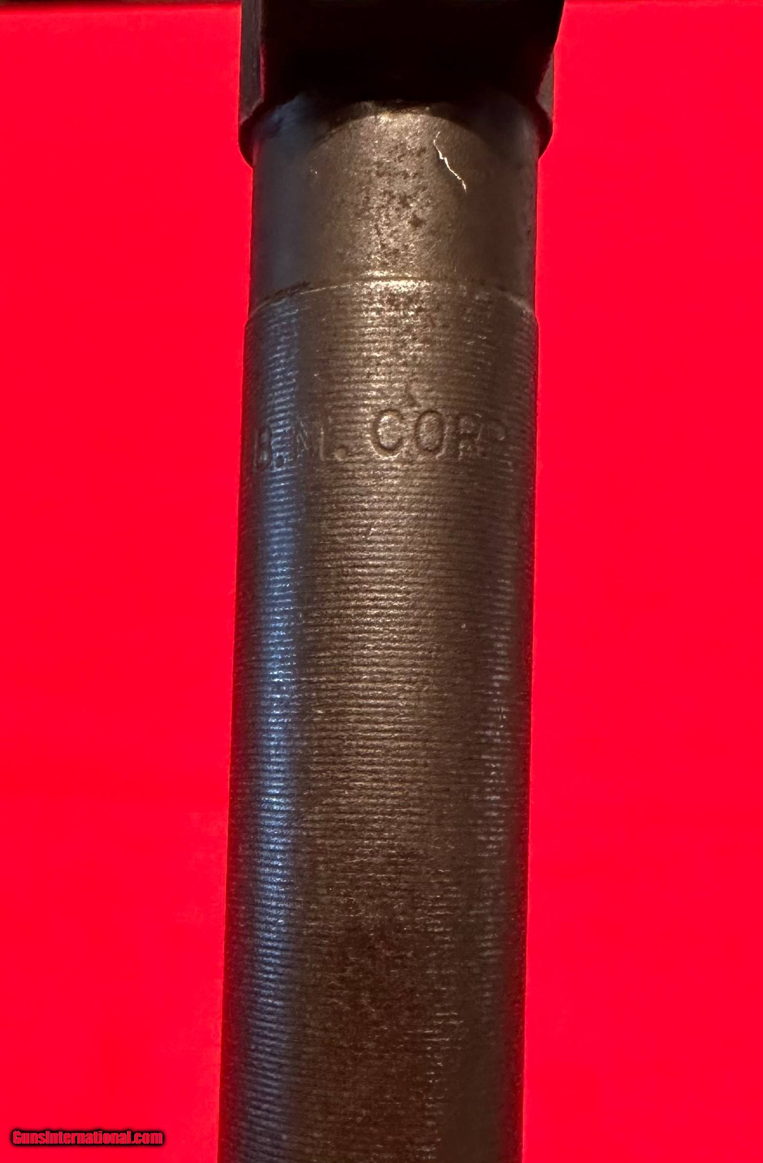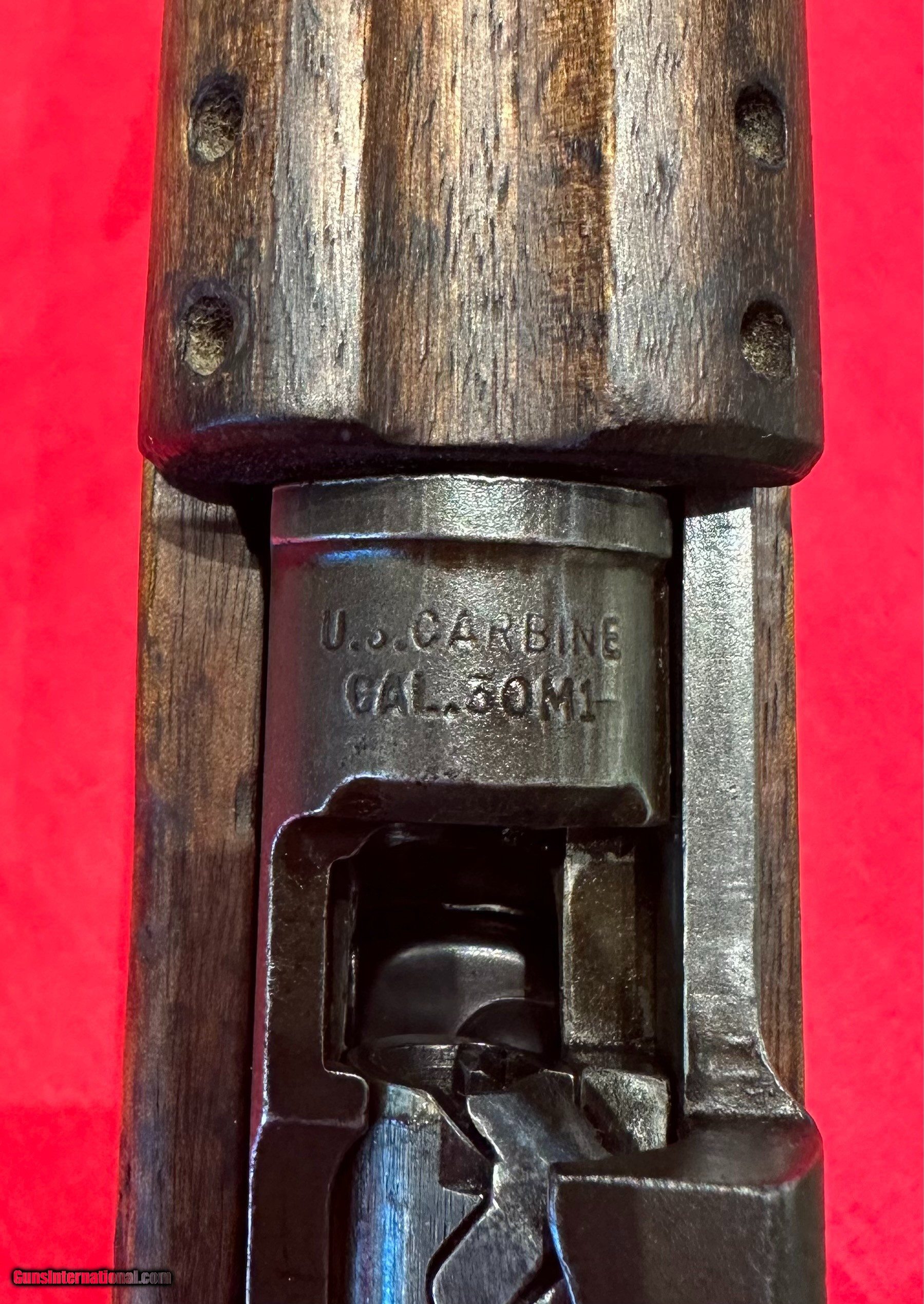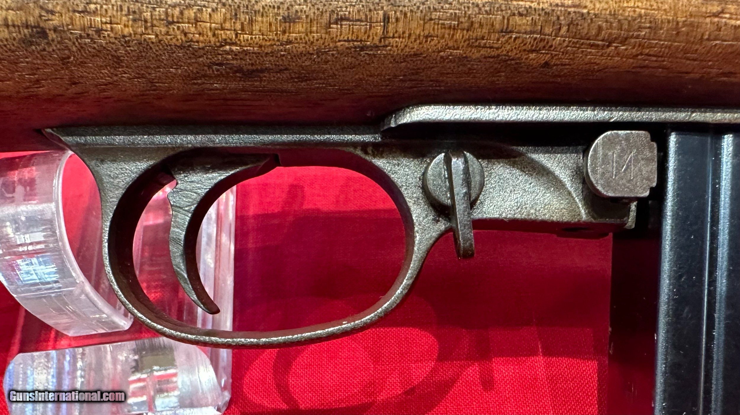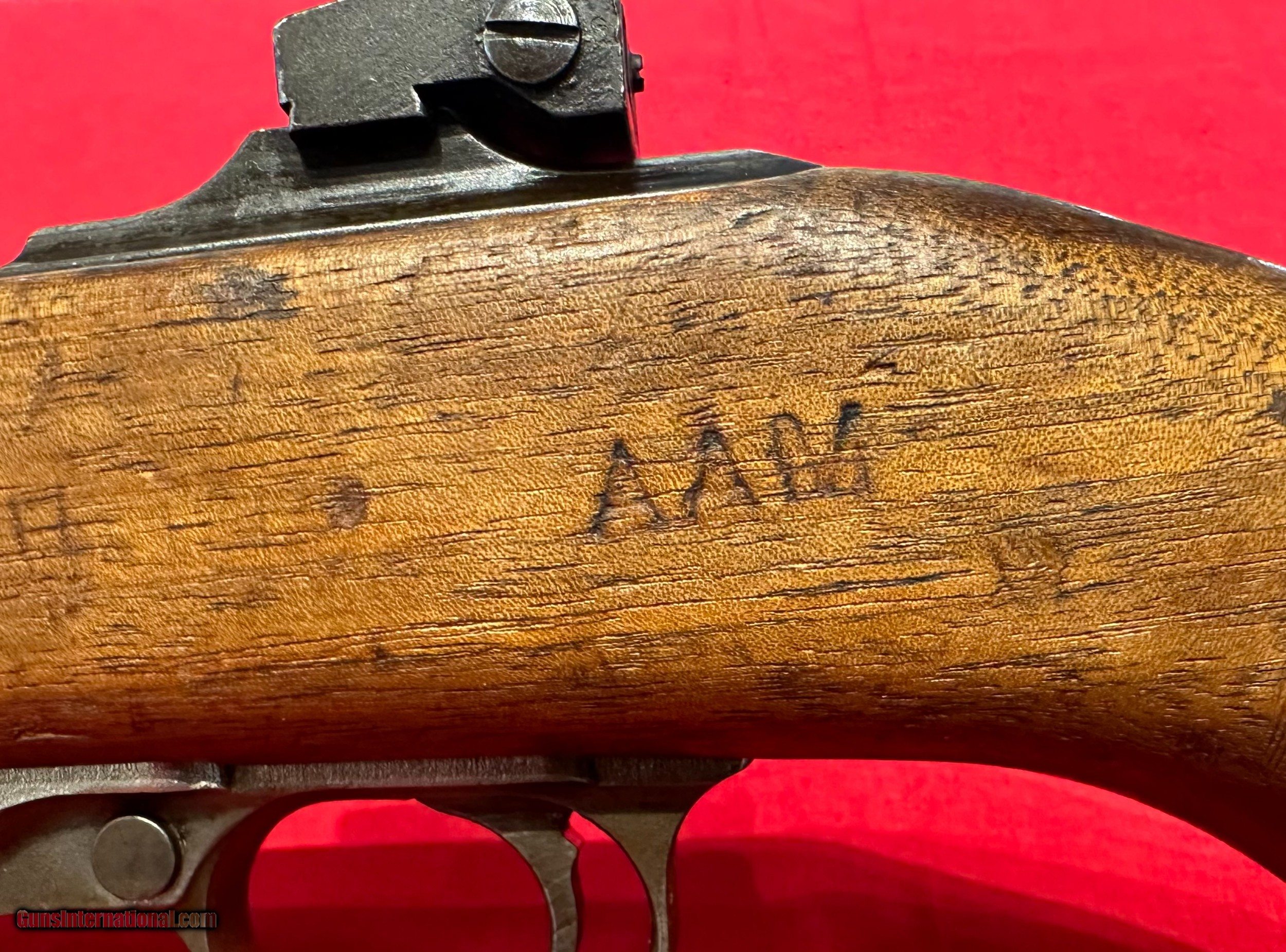 Description: Very nice IBM M1 Carbine with lots of features. -IBM barrel -Rotary style safety -Milled type adjustable sight -Type 3 barrel band -Flat top bolt -Straight stock / low wood configuration -Includes oiler, early khaki sling, spanish made flash hider SOLD Rifle Caliber: .30 Carbine Manufacturer: IBM Model: M1 CARBINE Serial Number: 38717XX |