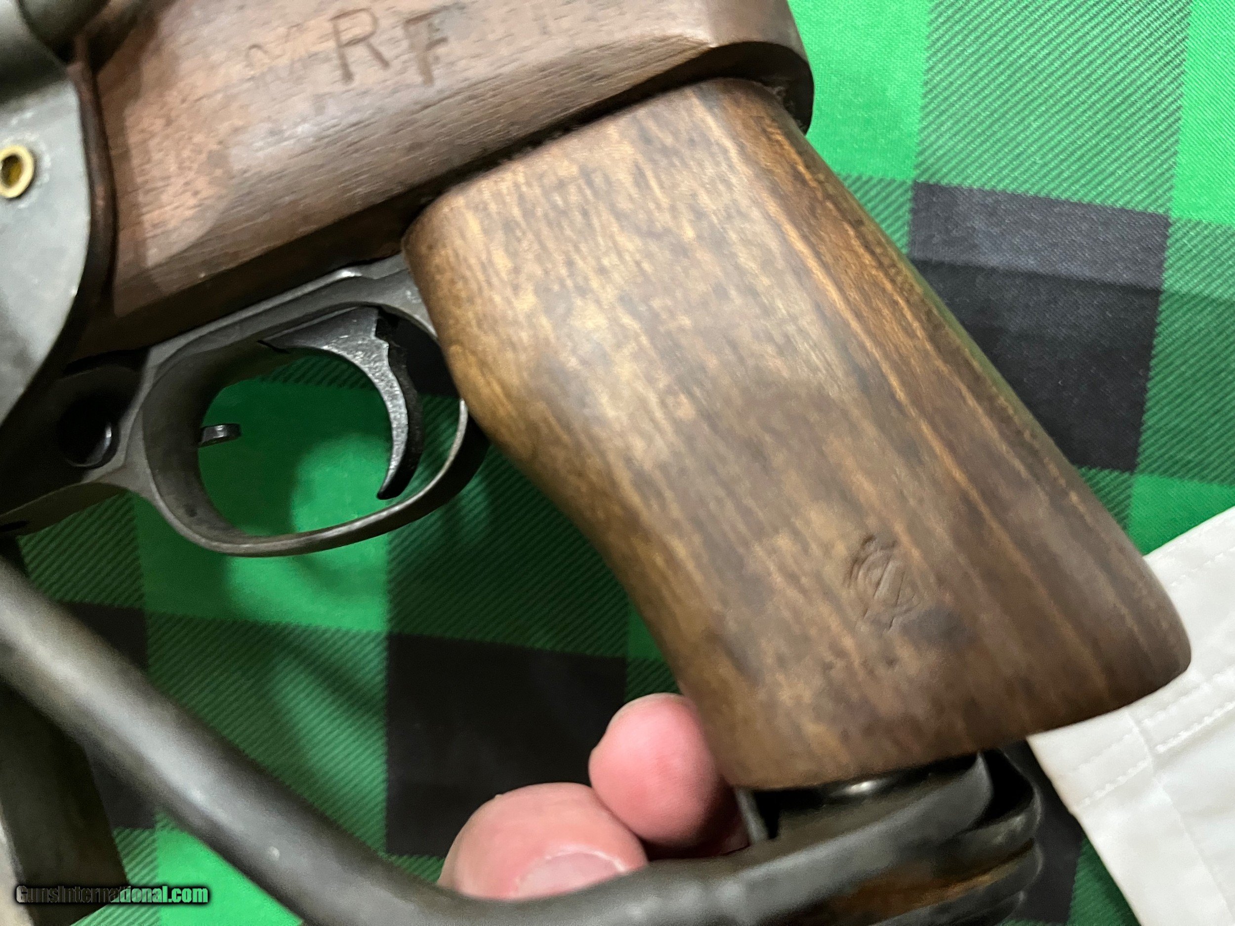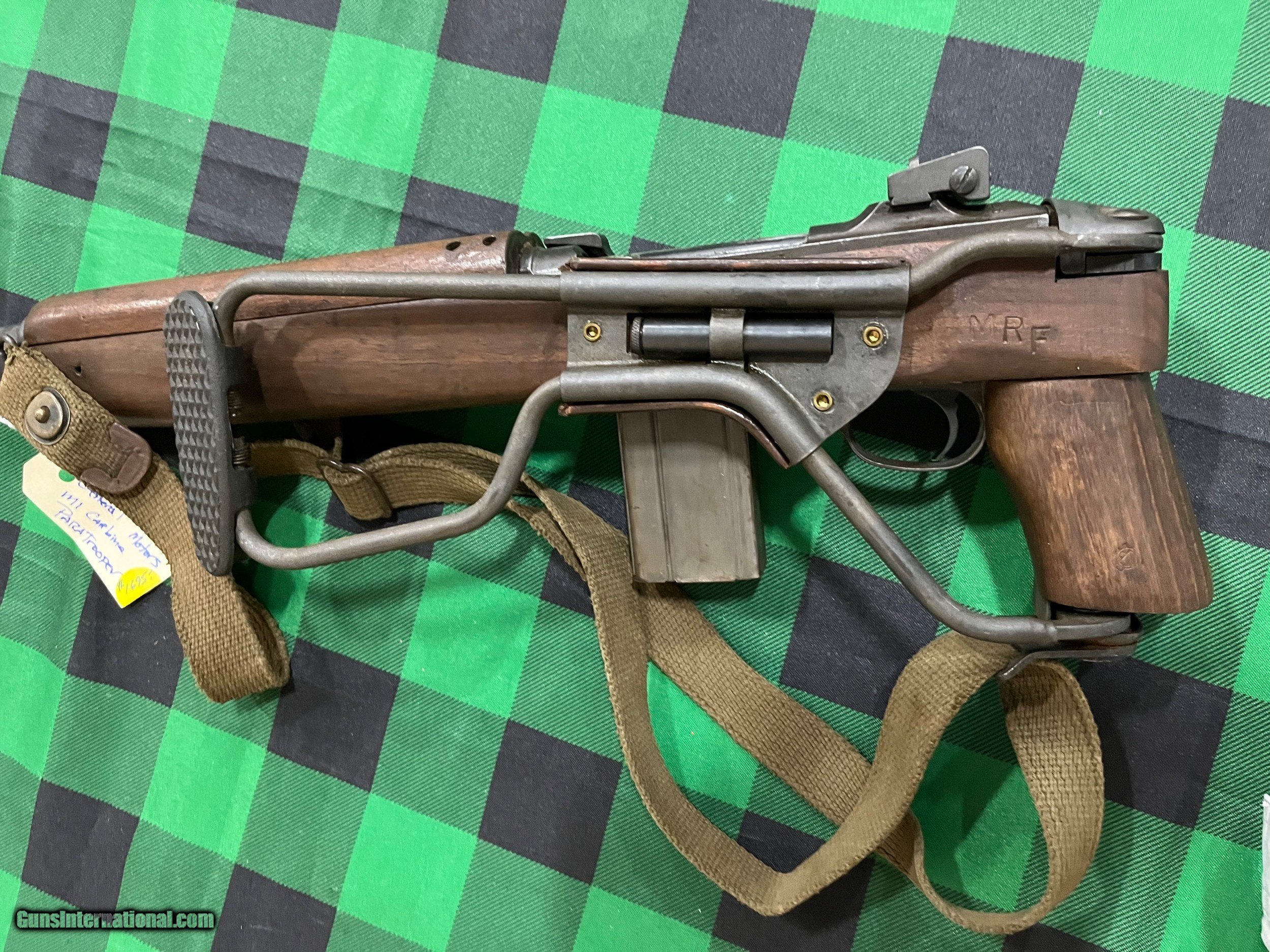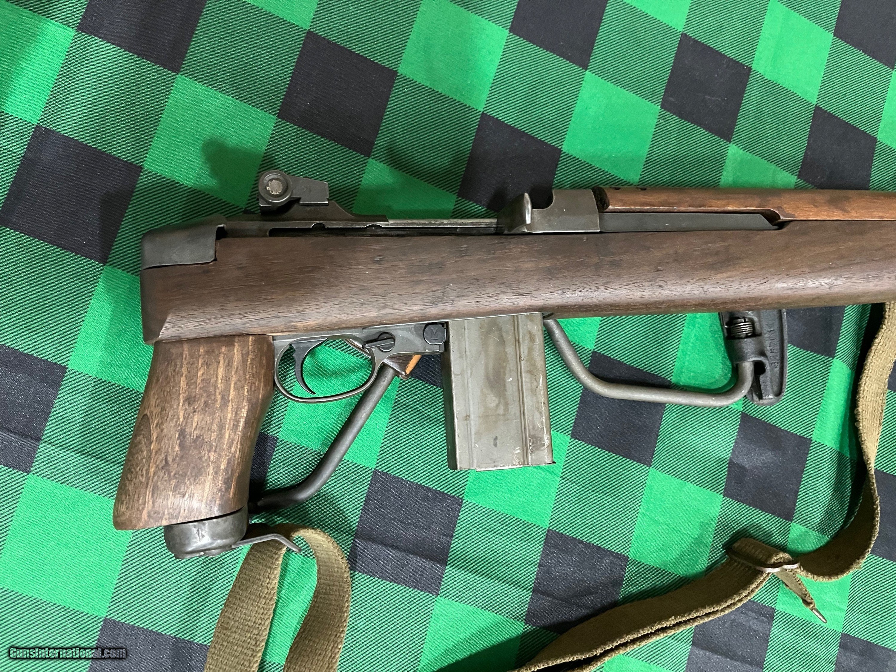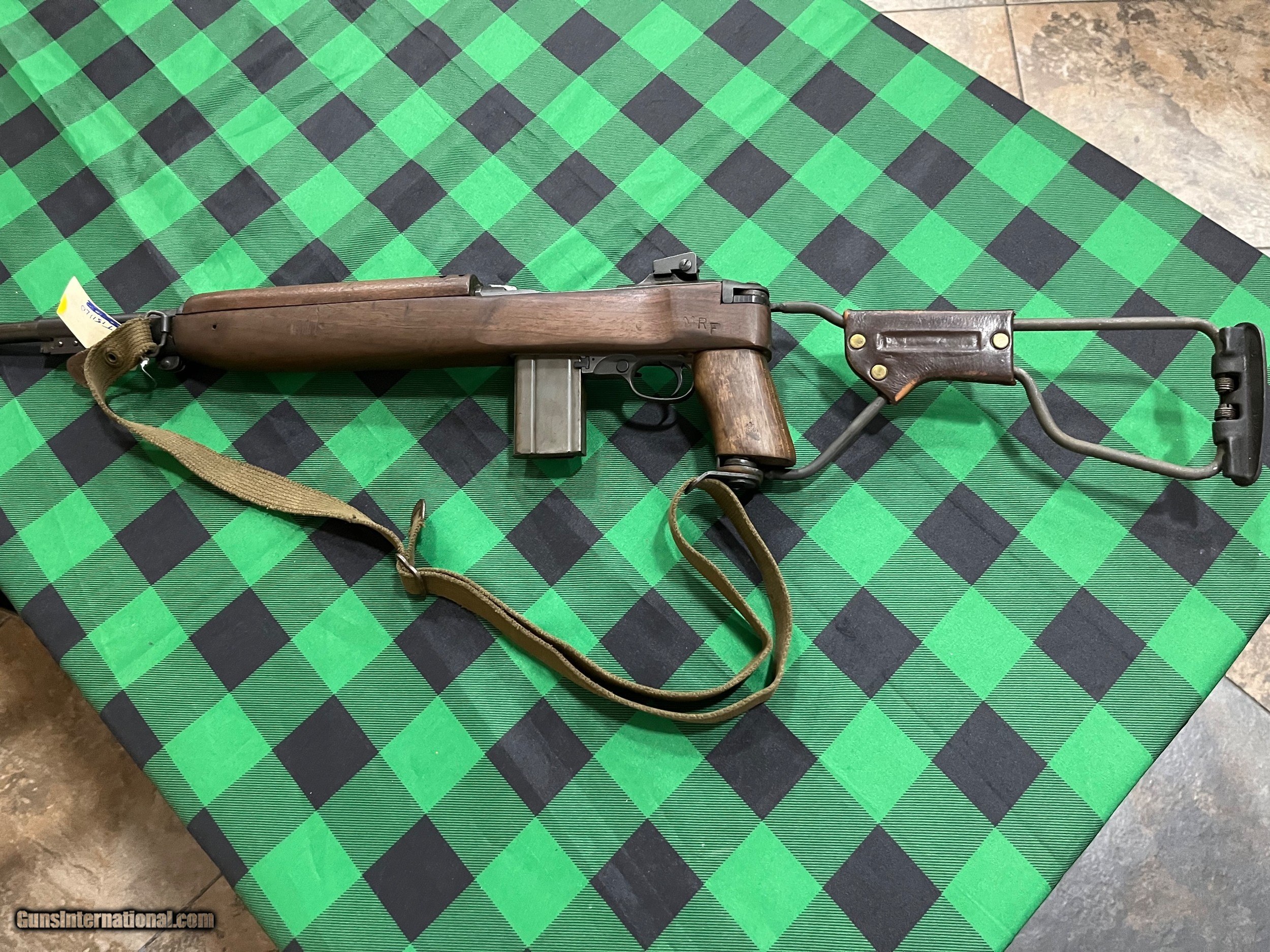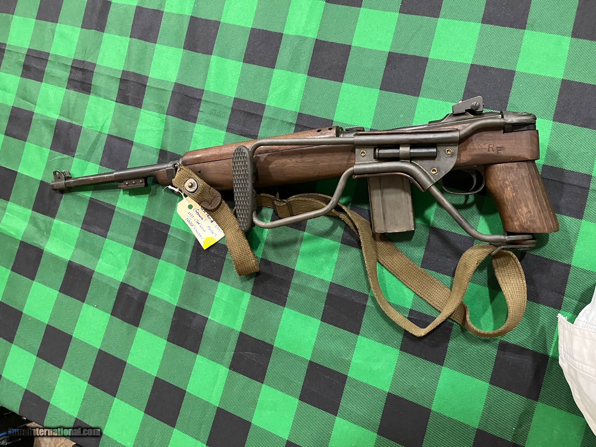 Description: General Motors inland division M1 carbine paratrooper. Caliber 30 US. Serial number 971218. Inland barrel dated 3/44 . Stock looks to be a very well-made reproduction. SOLD Curio/Relic: Yes |