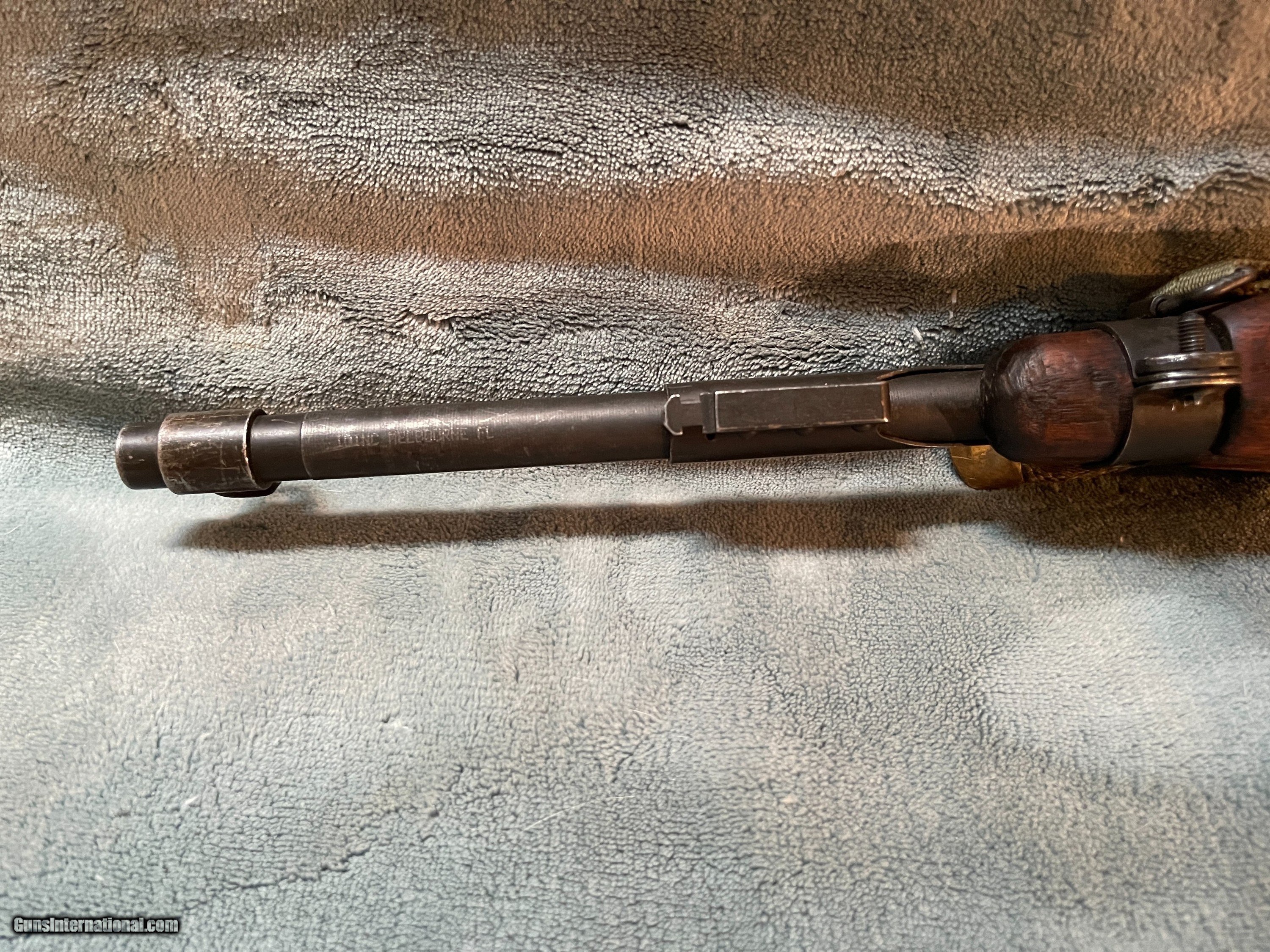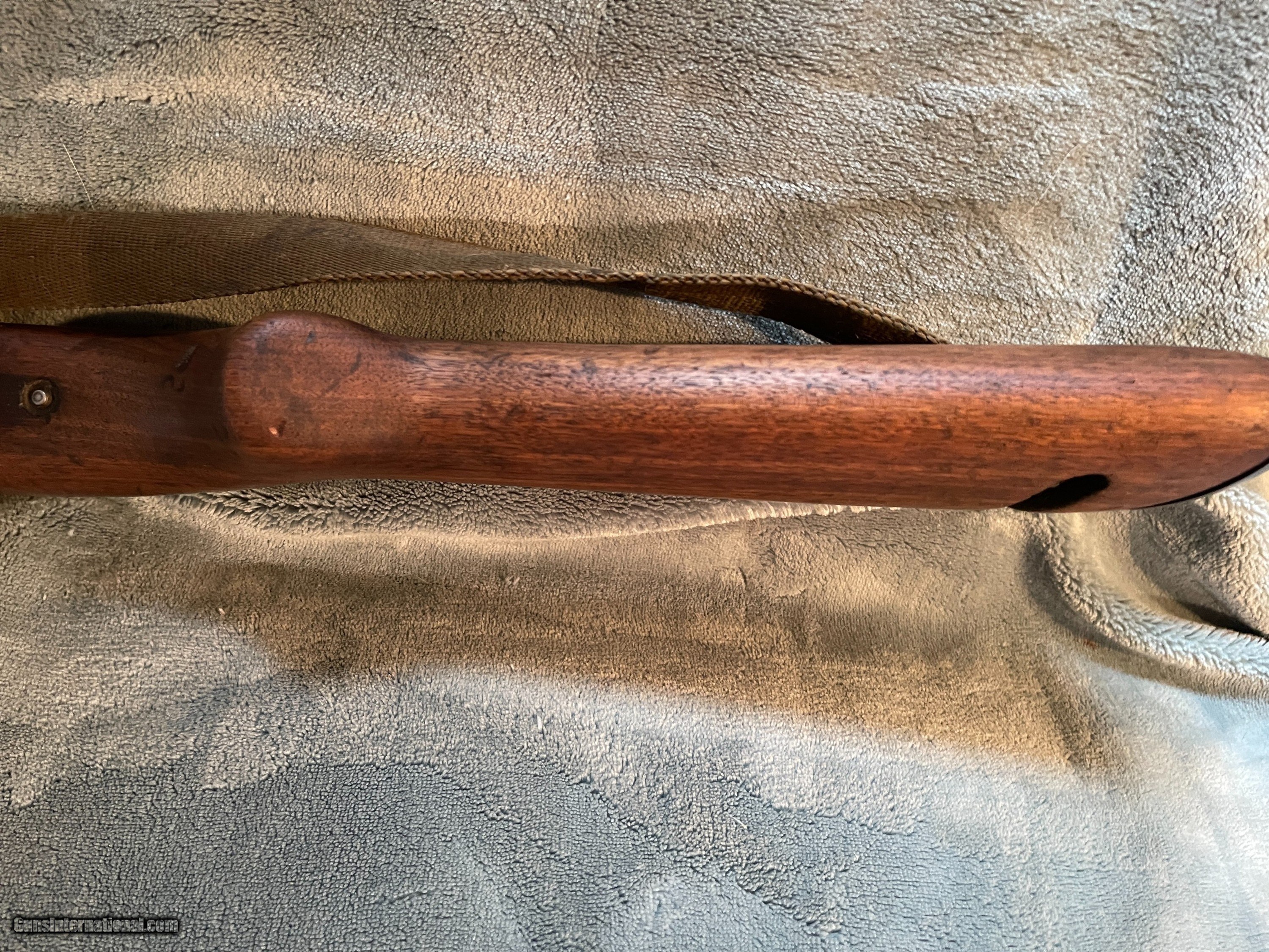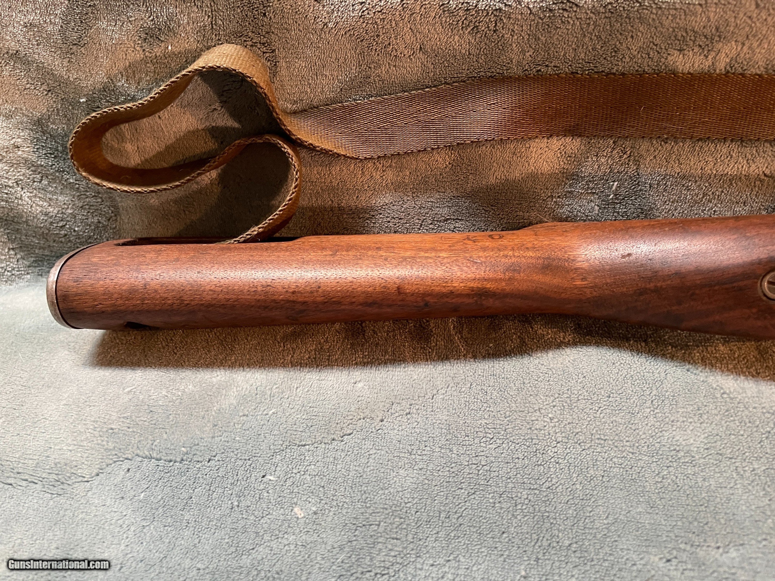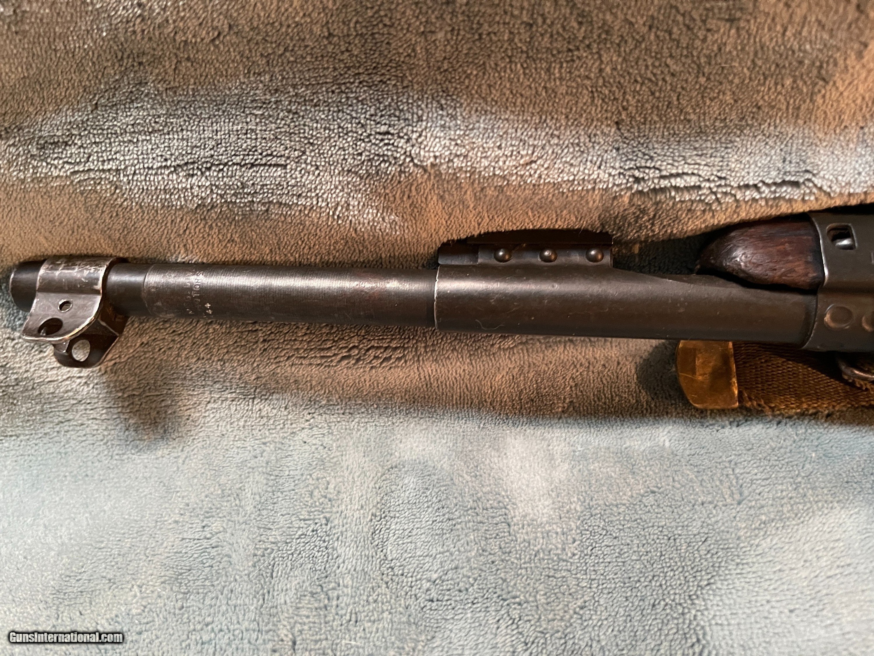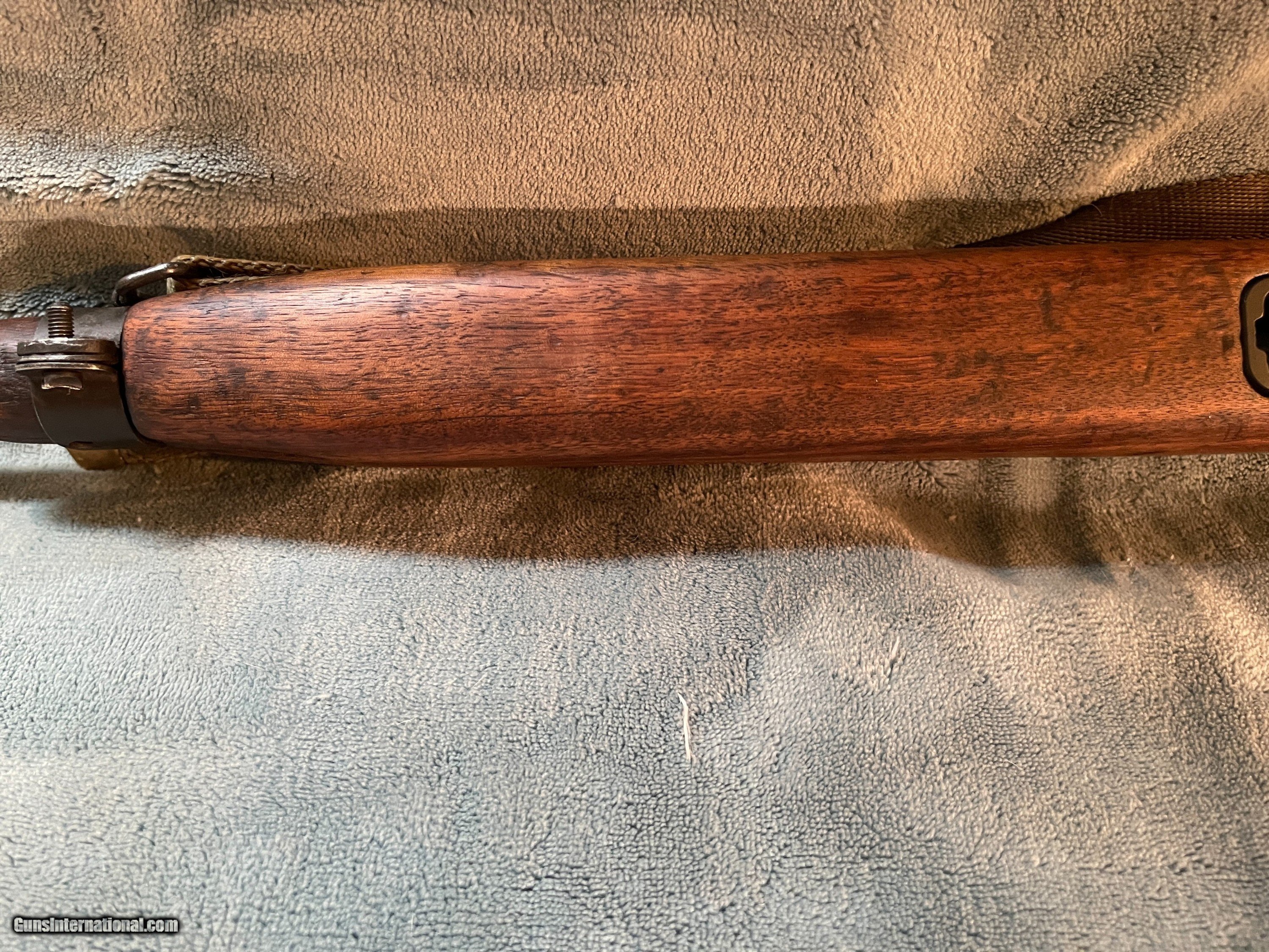 Description: This is a solid rifle in good condition. The bore is shiny with deep lands. Feels good mechanicaly, shoots well. Barrel marked Inland Mfg. Div. General Motors, dated 1/44, matches serial number manufacture date (1-8/44). Front band has Inland A! marking. Sling has originalm oiler. Barrel also has Ionic Melbourne, FL import faint marking indicating Ethiopia. Please see photos for wood and metal condition. Buyer pays only actual shipping/insurance charges. 3% CC fee. SOLD Curio/Relic: Yes Rifle Caliber: .30 Carbine Manufacturer: Inland Div Model: M1 Carbine Serial Number: 5231667 Condition: very good Metal Condition: good Wood Condition: good Bore Condition: bright |