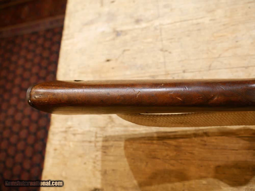 Description: ***PLEASE READ ENTIRE DESCRIPTION*** ***SEE PICS FOR DETAILS*** Inland Division of General Motors M1 Carbine semi-auto rifle in .30 Carbine. Barrel made by Underwood marked 3-44 along with the flaming bomb ordnance stamp. Receiver is Inland sn: 6439XXX so likely made oct/nov of 1944. My research shows this may have been originally built this way as clean-up of Underwood's barrels. The stock is likely from an arsenal rebuild and has the crossed cannons on the stock and IO stamped in the sling channel, making it an Inland stock. Sling looks period correct if not original. Adjustable rear sight and the action has the round-bolt. This should make a great shooter but we haven't fired it. Bore is shiny with strong rifling. If we missed something or need better pics please let us know. Please call or email with any questions. Must ship to FFL. ***$35 SHIPPING AND INSURANCE*** ***NO CREDIT CARD FEES*** ***NO WARRANTIES IMPLIED OR EXPRESSED*** SOLD Manufacturer: INLAND DIVISION OF GM Model: M1 CARBINE Caliber Info: .30 CARBINE Condition: USED, GOOD |