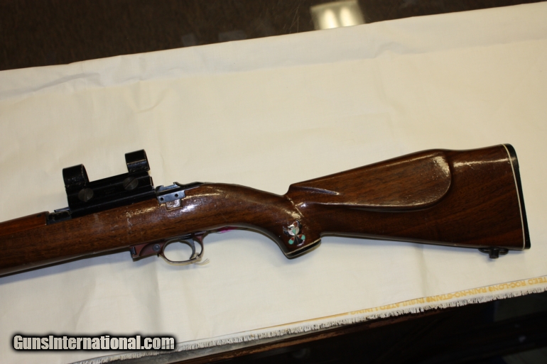 Description: This is a classic WW II era M 1 Carbine. Has had the stock reworked for hunting and general shooting. Made by Inland Division of General Motors this rifle is in good shape. Does show age but has been well maintained and shoots well. Weaver side scope mount but no magazine. Small inlay on one side of the stock. Can be a real collectors item. Shipping $25.00 SOLD |