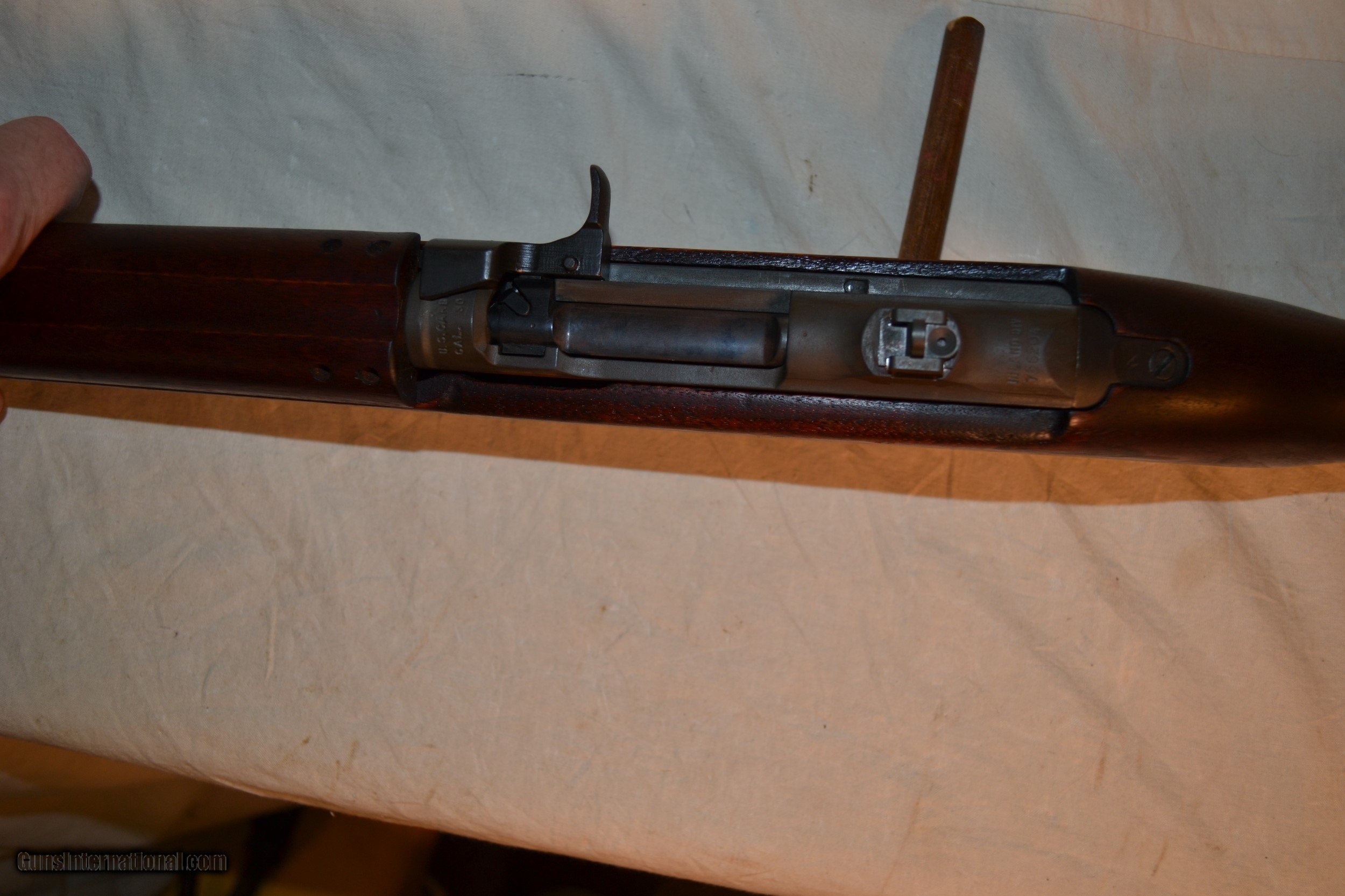Description: Reduced ! This Inland M-1 Cal .30 Se No. 766204 , July 1943, w/Flip Sight and "S" letter.his is a fine example of an original w/all of the correct internal and other part components. The bore is a nice mirror w/a distinct twist and the actionis excellent. The following parts inventory make up this collector piece: Receiver - w/the Inland Ser No. of 766204, Recoil Plate - "IO", Barrel w/Inland Div of General Motors imprinted and dated "7-43", Thr front sight is"R1A", Bolt is flat T3 w/the proper Firing Pin, extractor, plunger and ejactor, Trigger Housing = INL w correct sear, hammer, safety and "M", Oper Slide T-II, Stock - Correct Cross Cannons Cartouche, Hand Guard ha the "IO", Barrel Band T II. Overal in excellent original type condition. SOLD Manufacturer: Inland Model: M-1 Carbine Serial Number: 766294 Caliber Info: .30 Condition: Excellent |