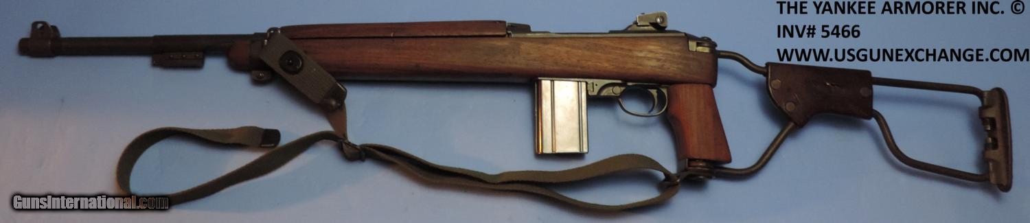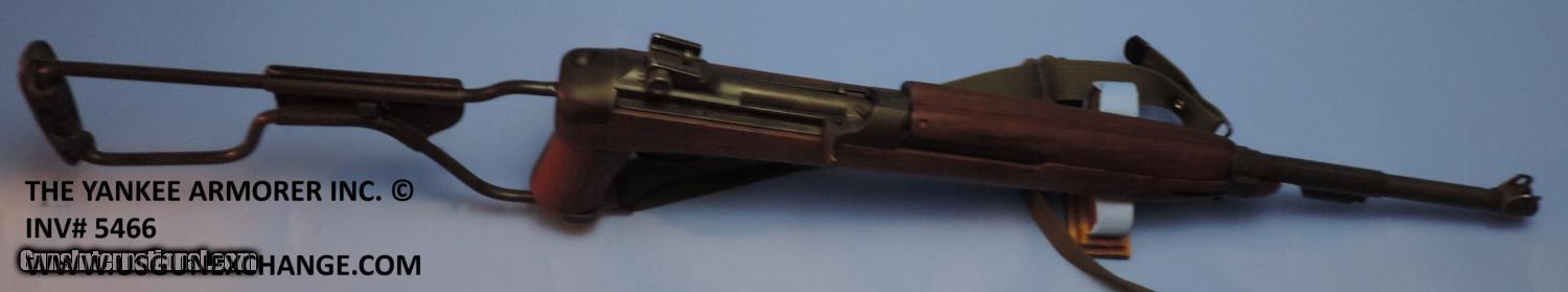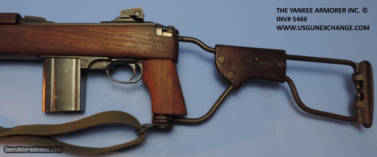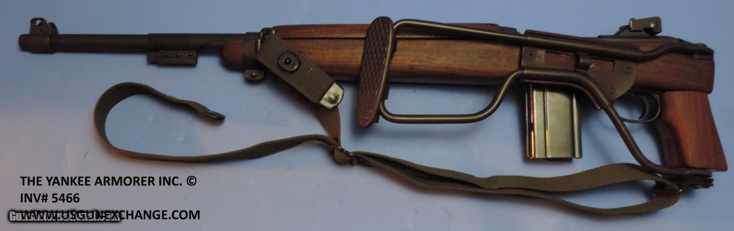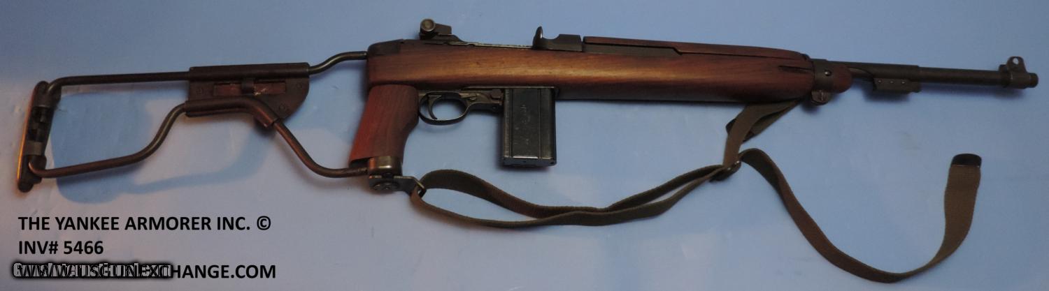 Description: Inv. 5466 Inland M1 A1 Paratrooper Carbine, Ser. 30559XX. This is a correct M1 A1. retaining about 90% of the original Parkerizing. There is the usual sharp edge silvering, a slight rub mark from the bolt and a little toning on the stock hinge cover. The push button safety has been updated with the lever style, the bolt the is round type, the rear sight is also the updated ladder type. The handguard is still the earlier two rivet type. The pistol grip is "P" stamped the folding stock has the proper Daisy mold mark along with the correct part number mold mark. The leather cheek piece has not been replaced and does have a surface crack because of age. the brass rivets like everything else are proper. The barrel is Inland stamped and dated 11-43. The bore is super bright, with razor sharp rifling. There is not even a hint of graying in the bore. The gun comes with one correct Inland stamped magazine, and one correct M1 Carbine oiler. This is a great example of an arsenal updated M1 A1 that should be fine in a collection or a great on the range. It is value priced at......$2995. To purchase this firearm or if you want to request more information contact us at: Email ckgunsymail Phone 201-512-0002 Cell 201-575-6838 FAX 201-215-4759 We accept most major credit cards. Prices shown are Discounted 3% for Cash or Check. The buyer must be familiar with all the laws governing the purchase and the ownership of firearms in their own city and state. The Yankee Armorer, Inc is not responsible for any failure to comply with or observe these laws. The Yankee Armorer, Inc will only ship after full payment and receipt of all required documents. Shipping: Add $35.00 for handguns, $45.00 for long guns. New Jersey buyers are subject to a 7% sales tax. The Yankee Armorer, Inc offers a 3 day inspection period with full refund upon return of intact firearm and in the original condition. The Yankee Armorer, Inc offers a no interest lay away program - 25% down; 25% in 30 days; 25% in 60 days; and full payment in 90 days. Any violation of this policy is subject to restocking and forfeiture of all payments. Any variation from this policy must be agreed to in advance. Unshipped Cancelled sales are subject to a 20% restocking fee. Be advised that all firearms sold by The Yankee Armorer, Inc. or the Gun Exchange, LLC (SELLER) are sold as collector’s items. They have not been fired or tested for safety and must be examined by a license gunsmith prior to use. By purchasing any item from the (SELLER), you are agreeing to hold the (SELLER) free from any damages or lawsuits of any nature. Any item left for transfer or storage will be charged to $25.00 per month, per item from the day of its receipt. Any variation from this policy must be agreed to in advance. Store hours 10:00 am to 5:00 pm Tuesday -Saturday. It's always best to call for appointment. Store 201-512-0002, cell 201-575-6838. SOLD Manufacturer: Inland Model: M1 A1 Carbine Serial Number: 30559XX Caliber Info: .30 Carbine |