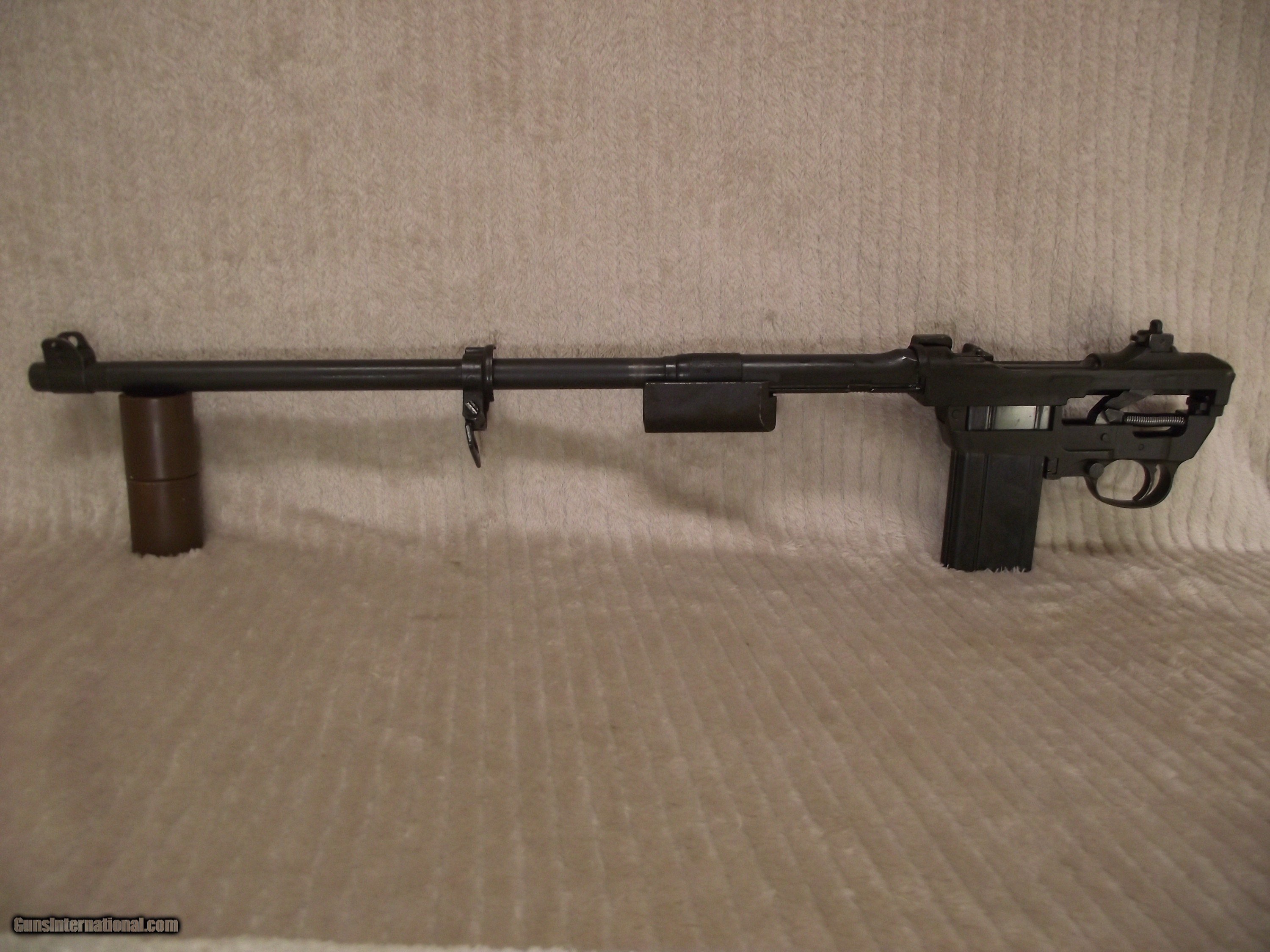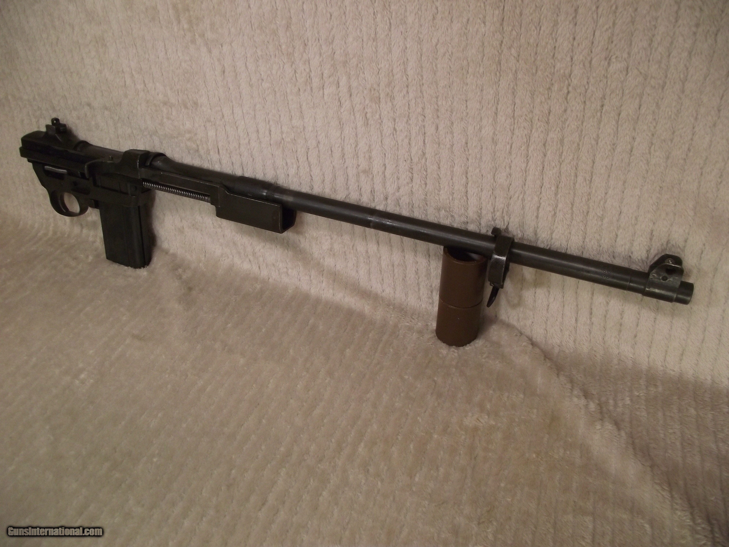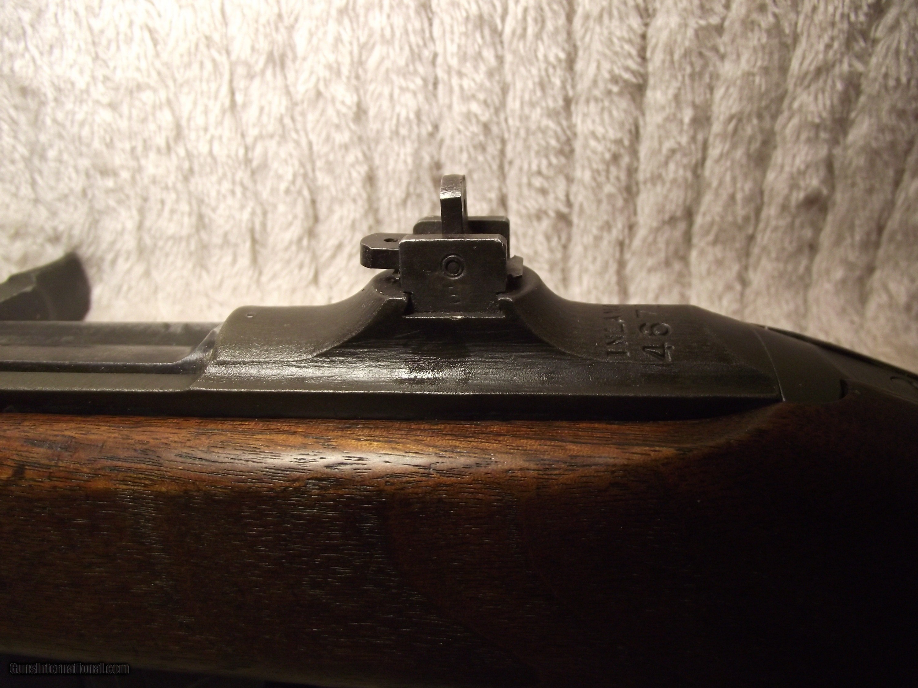 Description: The six digit serial number of this M1 Carbine is 467254 which dates manufacturing aound the early part of July 1943. Serial number 467254 puts this rifle into the early part of the 5th version of the 1st production block which was from serial number 400000 to 700000. I use Roger Larson's book "Comprehensive Guide - M1 Carbine" to verify the parts in the rifles I sell are correct based on manufacturer's serial number, production block, production date, and and production version on a consistant basis. This book's 829 pages are filled with M1 Carbine data and over 4,000 high quality photos that I use to validate the correct parts for the specific rifle. There are many other similar books that are great sources of information about the M1 Carbine, but I prefer one source to remain consistant in my assessment. The M1 Carbines in this particular production block and version did not have any anomalies or peculiarities that would make it somewhat unique except the use of the Oval Cut High Wood Stock. This rifle also has the receiver integrated spring tube instead of the dettachable tube which Inland used sporadically until serial number 610000. When determining which collectable M1 Carbine to buy make sure you evaluate each and every part for correct manufacturer and correct identification stamp. Most manufacturers use lateral support between all suppliers in order to keep the production line moving. This is why Roger Larson's book is so valuable and can make the difference between correct and 100% collectable. REMEMBER; with rare exception (detachable spring tube receiver being one) all of the M1 Carbine parts were interchangeable regardless of manufacturer. ALSO KNOW; virtually none of the 1944-1945 carbines were issued during WWII. About 95% of these were "held back" until the front bayonet lug barrel band, adjustable rear sight, and rotary safety were installed to bring them up to post-war standard issue M1 Carbine configuration. This why the early rifles are worth more than the post-war rifles. The serial number is the key because a post-war M1 Caarbine can be retro-fitted with the parts to make it look WWII issue. CHECK THE SERIAL NUMBER and CHECK THE BARREL BORE ! There's a reason why many sellers of M1 Carbines don't provide a picture of the bore. I won't bore you with identifying all of the parts in this text. I will email you as many pictures of the entire rifle and also pictures of the three data sheets for the rifle. Preferred payment method is valid personal check or USPS Money Order. This rifle will be sold and shipped in compliance with all state and federal firearms regulations. This rifle qualifies for Curio and Relic status. Although this rifle is fully functional there is no express or implied warranty that accompanies. Buyer is to pay actual shipping and handling cost to an approved FFL within the contiguous 48 states. Shipping insurance is optional with cost being buyers responsibility. Thank you for your interest. SOLD Curio/Relic: Yes Rifle Caliber: .30 Carbine Manufacturer: Inland Model: M1 Carbine Serial Number: 467254 Barrel Length: 18 Bore: 4 Lands and Riflings Ejectors: Type 1 - 3 faceted Condition: Very Good Metal Condition: Very Good Wood Condition: Very Good Bore Condition: Very Good Barrel Type: Inland Division General Motors 6-43 Action: Semi- Automatic Stock: Dark Walnut HIGH WOOD Weight: 5.6 lbs. Sights: Dual Aperture Fixed Rear Manufacture Date: Approx EArly July 19 Extras: Quality Reproduction Olive Drab Sling, Original USGI Oiler Case: High Quality Reproduction Zippered Canvas Carry Case. ction Zippered Carry Case. Item Location: Texas |