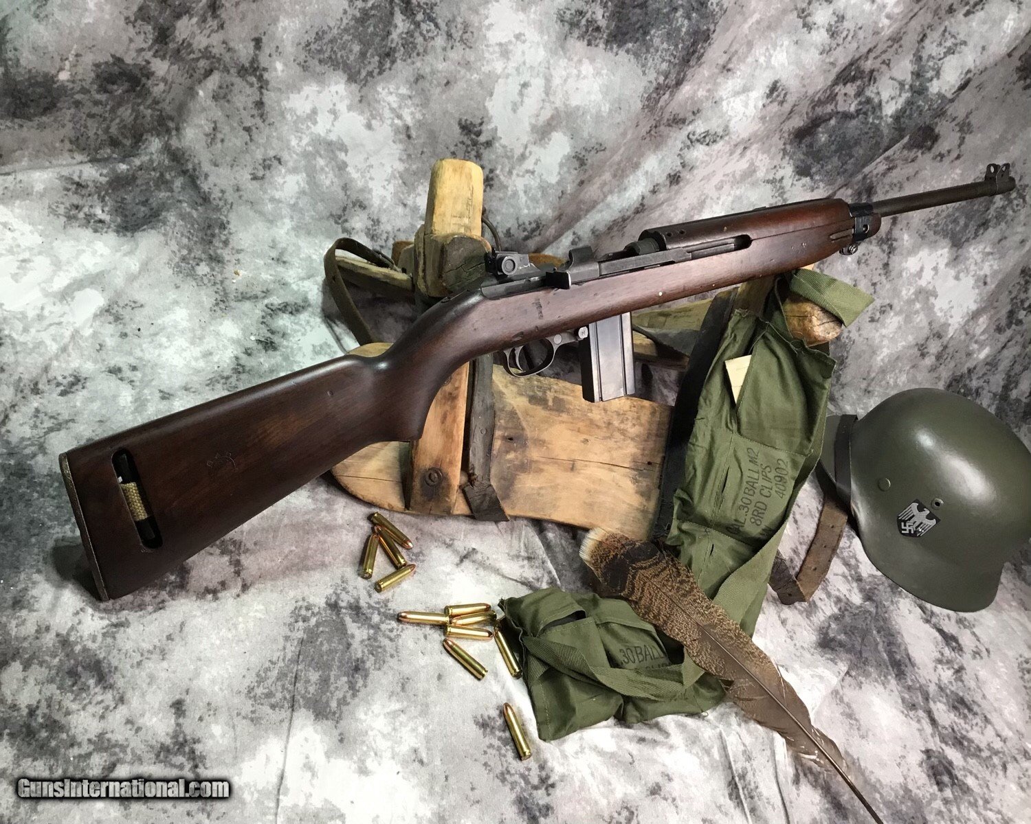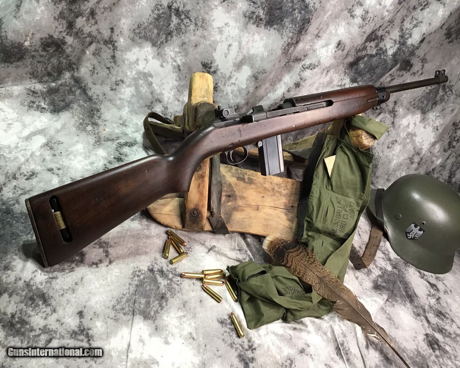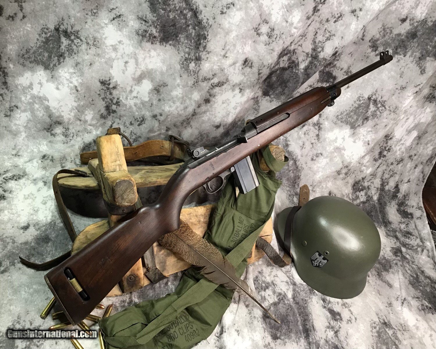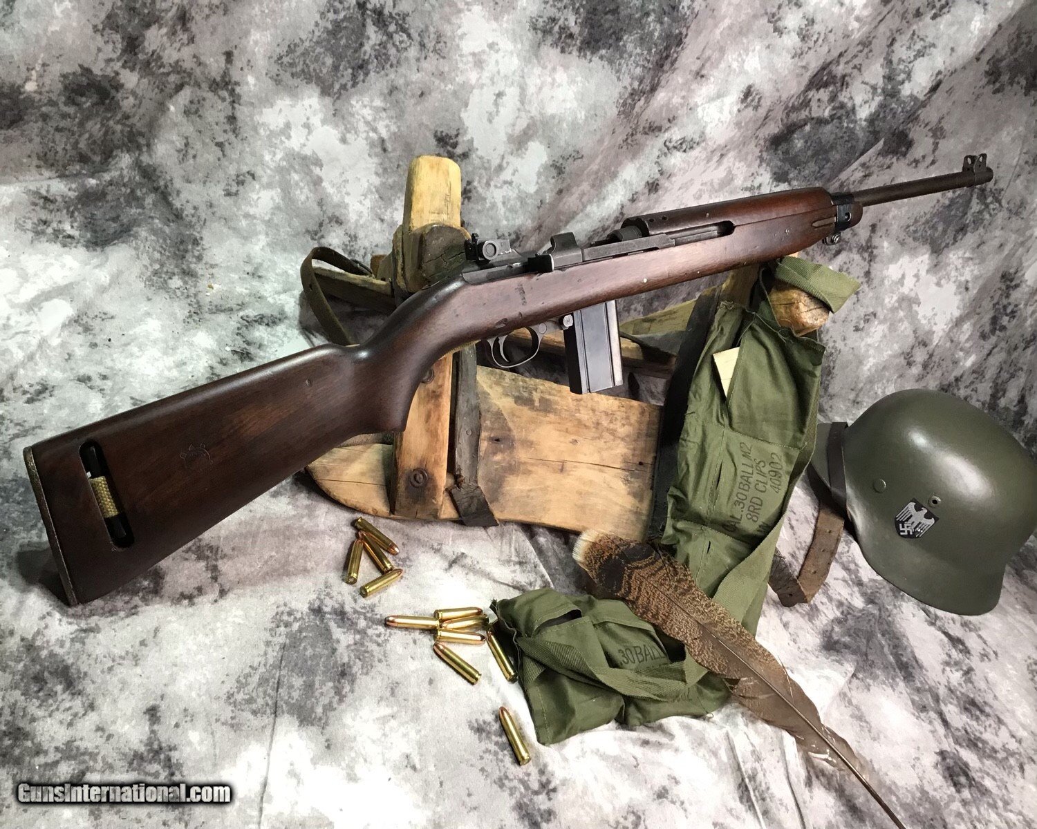 Description: 1944 Inland M1 Carbine in very good condition. Manufactured Spring of 1944. Barrel dated 44. Original battle worn American Black Walnut stock with Circle P near pistol grip and crossed Cannons on Right side of stock. Period sling and oiler. Several Army Armorers Brass pins in stock as done in field repairs, well done and adds to the battle look. Chambered in .30 Carbine with one matching Inland magazine. Rifles mechanics are all good with good bore. Early push button safety and no bayonet lug on barrel .Stock has great dark patina, Metal retains most of original finish. Extra magazines available at additional cost. Add 3% if paying with credit card, Shipping to your FFL for $40. SOLD Curio/Relic: Yes Rifle Caliber: .30 Carbine Manufacturer: Inland Model: M1 Carbine Serial Number: 5052673 Condition: Very good Metal Condition: Very good Wood Condition: Very good Bore Condition: Very good Action: Semi-auto Stock: Wood |