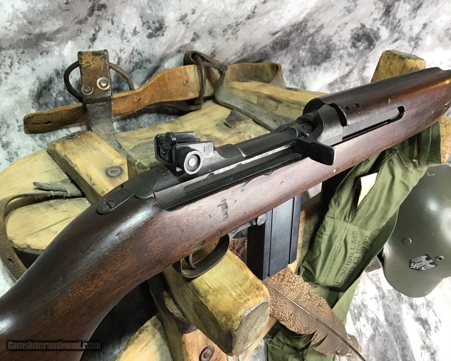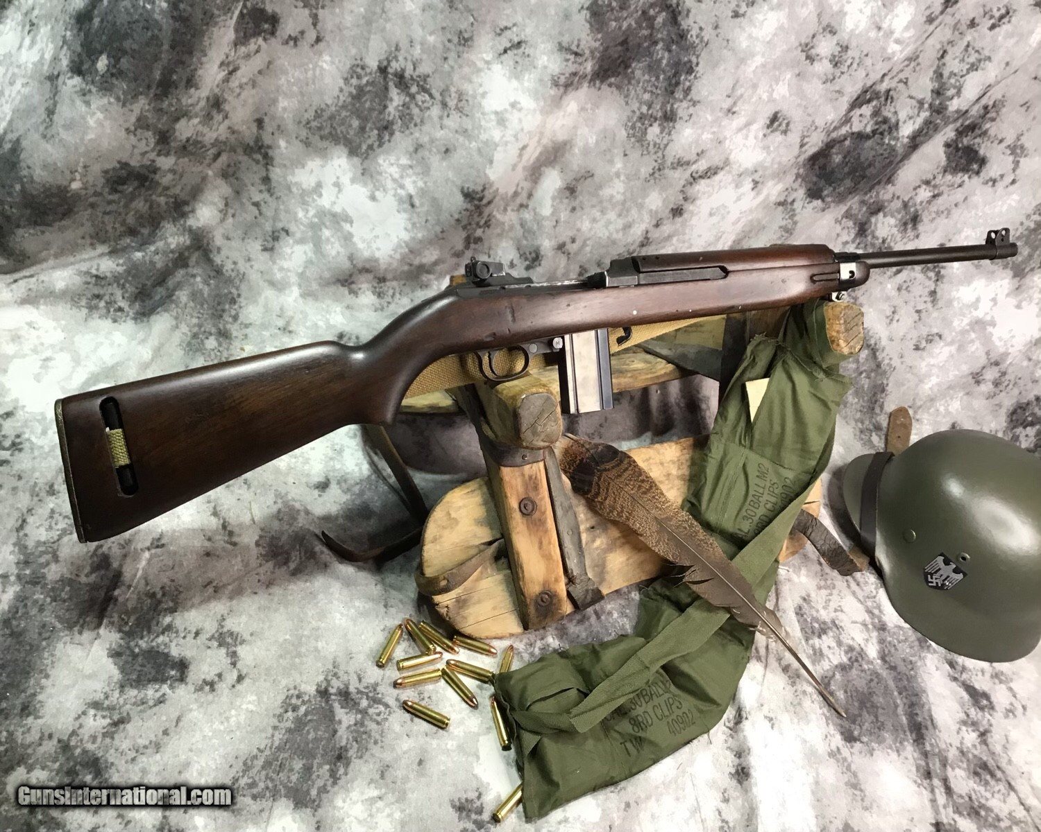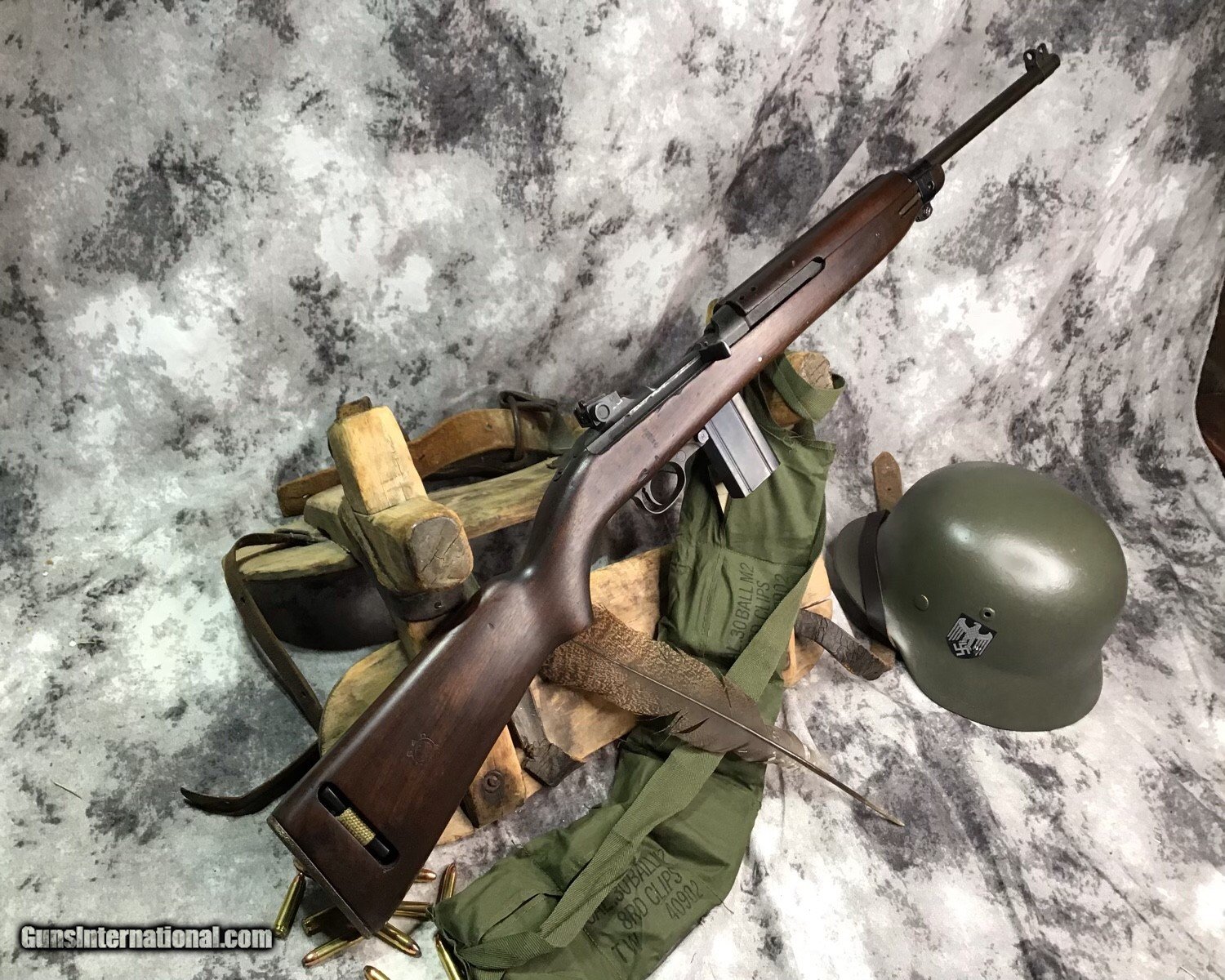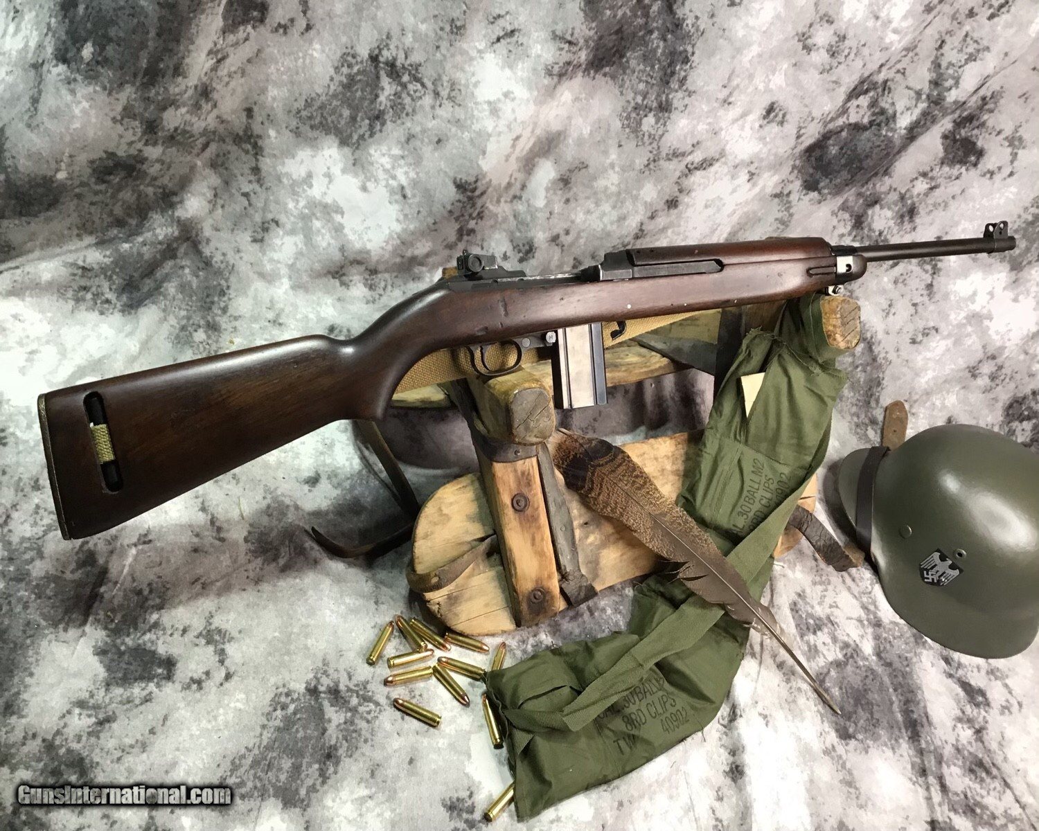 Description: 1944 Inland M1 Carbine in very good condition. Manufactured Spring of 1944. Barrel dated 44. Original battle worn American Black Walnut stock with Circle P near pistol grip and crossed Cannons on Right side of stock. Period sling and oiler. Several Army Armorers Brass pins in stock as done in field repairs, well done and adds to the battle look. Chambered in .30 Carbine with one matching Inland magazine. Rifles mechanics are all good with good bore. Early push button safety and no bayonet lug on barrel .Stock has great dark patina, Metal retains most of original finish. Extra magazines available at additional cost. Add 3% if paying with credit card, Shipping to your FFL for $40. SOLD Curio/Relic: Yes Rifle Caliber: .30 Carbine Manufacturer: Inland Model: M1 Carbine Serial Number: 5052673 Condition: Very good Metal Condition: Very good Wood Condition: Very good Bore Condition: Very good Action: Semi-auto Stock: Wood |