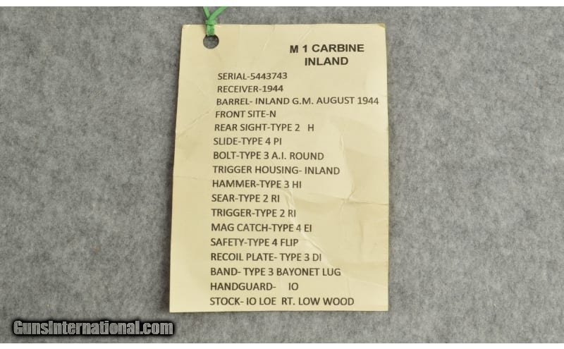 Description: For your consideration, the Inland M1 Carbine semi-auto rifle chambered in .30 Carbine. See the second image for details on the firearm's parts. Inland manufactured the M1 from 1942 to 1945, this model was made in 1944, around the month of August. See the second image for more detail on its parts. .30 Carbine SOLD Curio/Relic: Yes Metal Condition: Very Good Wood Condition: Very Good Bore Condition: Very Good Barrels: 17.75 Weight: 5.2 lbs. Item Location: Centerville, OH |