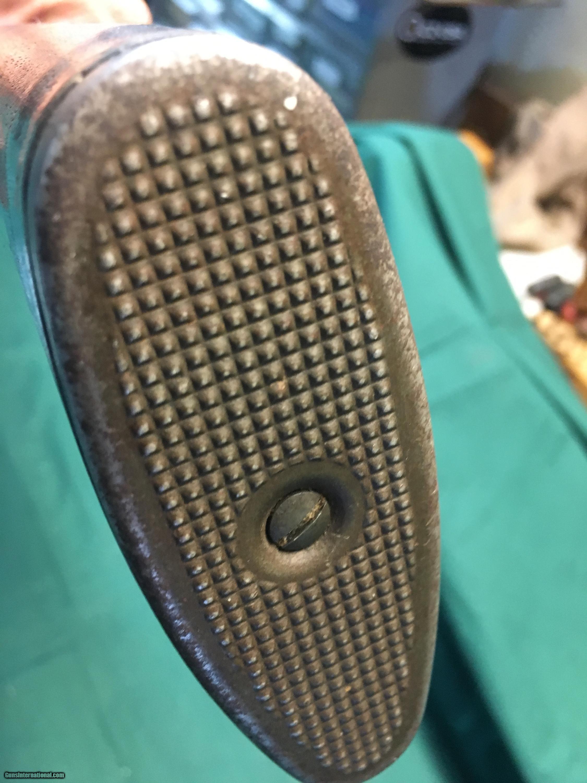 Description: For sale is an Inland M1 Carbine Type 1 WWII with a barrel date of 11-42. The barrel is marked Inland Mfg. Div. General Motors 11-42. The receiver is marked Inland Div. 94956 U.S. Carbine Cal. 30 M1. It also has the Inland stamp on the side of the trigger housing under the wood. The carbine has the correct high wood, narrow barrel band, carrect sights, Type 1 oiler cutout in the stock, and a 30 round magazine marked M2. The stock is marked with a P in a circle on the bottom of the pistol grip and the flaming bomb in the stock sling cutout. There is also what looks like IO in the cutout. The slide is marked PI in a circle and the bolt is marked IO. The trigger is marked RI. The only part I see that isn't Inland is the hammer which is markedd SG. The bore is good with strong rifling and the action seems to be in very good condition. There are a few marks on the wood and some freckling on the metal but still a very nice early carbine.This is a great piece for the military collector. SOLD Curio/Relic: Yes Manufacturer: Inland Model: U.S Carbine M1 Serial Number: 94956 Caliber Info: 30 M1 |