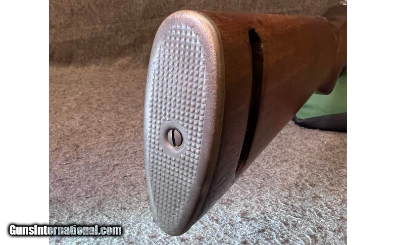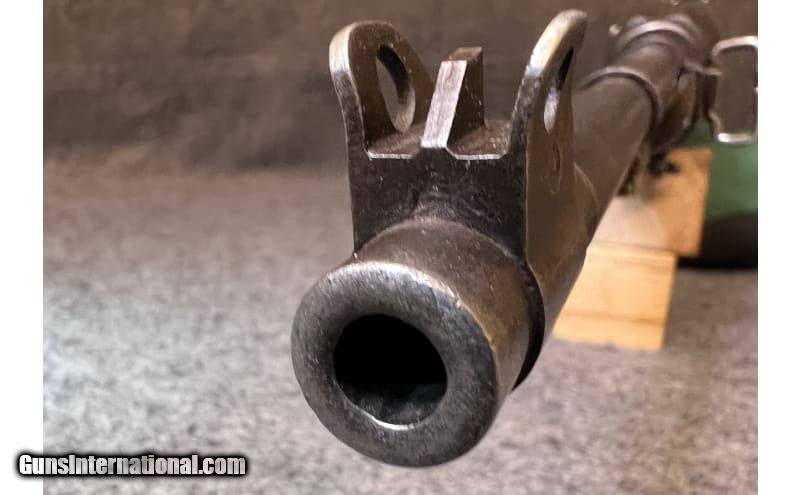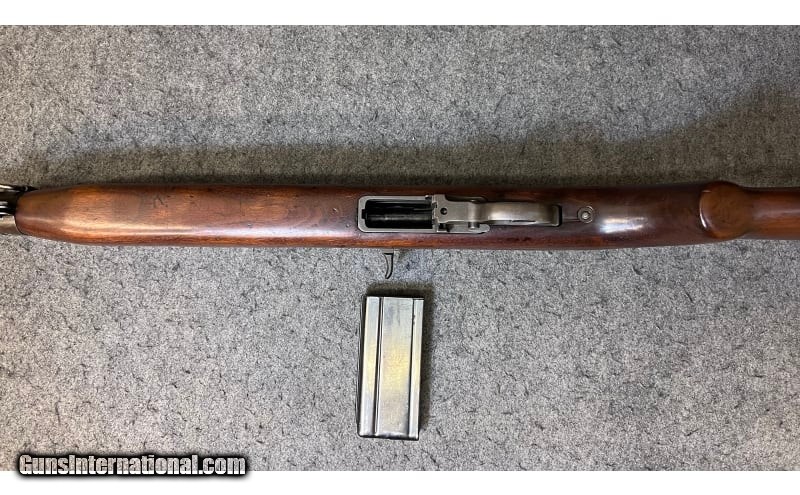 Description: This 12-43 World War II semi-auto rifle is an Inland M1 U.S. Carbine chambered in .30 Carbine. It has a fixed front sight with protective sides, an adjustable aperture rear sight, a checkered steel butt plate, a bayonet lug, and a sling loop at the top. It is in generally very good condition metal and furniture, showing what appears to be a factory repair to the right side of the bottom portion of the fore arm wood. The bore is in good condition with strong rifling intact. It comes with a single 15 round magazine. This .30 caliber semi-automatic rifle was first used by the United States Armed Forces on October 22, 1941 and the Inland Division of General Motors was the first of 10 manufacturers to produce this firearm. Despite having a similar name and appearance, the M1 Carbine is not a carbine version of the M1 Garand rifle. They are different firearms and use different ammunition. Prior to World War II, U.S. Army Ordnance received many reports that the full-size M1 Garand was too heavy and cumbersome for most support troops, such as mortarmen and radiomen to carry, so the M1 U.S. Carbine was designed to fulfill the request for a compact, lightweight defensive weapon with greater range, accuracy and firepower than handguns. The U.S. Army decided that carbine would adequately fulfill these requirements. .30 Carbine SOLD Curio/Relic: Yes Metal Condition: Very good condition Wood Condition: Right side of forearm has what appears to be a factory repair to the lower fore arm Bore Condition: Very good condition with strong rifling Barrels: 18" barrel with bayonet lug Stock Dimensions: 35¾" overall length Butt Pad: Checkered steel butt plate Weight: 5 LB 6 OZ Sights: "Fixed front sight with side protectors, adjustable rear peep sight Item Location: Wichita, KS |