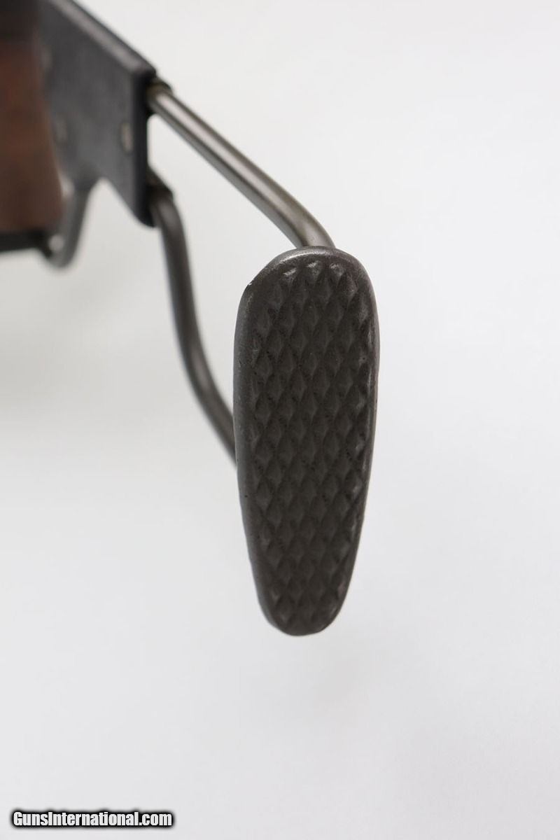 Description: This is a terrific example of a second run M1A1 paratrooper carbine as produced by Inland in late 1944. The rifle appears all correct for a second run example, with about 98% of the original blue remaining. There's very little finish loss on the metal parts but there is some freckling on the barrel and muzzle. Barrel is dated to November of 1944. P proof on the front of the pistol grip is common for second run rifles. It's also marked RI/3, which is also correct. Rear sight is the adjustable variant. Folding stock is original, including the buttplate and the cheekpad. Bore is mint and hardly looks used. The wood stock is in excellent condition aside from the very common indents where the folded stock presses against the left side. SOLD Curio/Relic: Yes Manufacturer: Inland Model: M1A1 Paratrooper Serial Number: 6365784 Caliber Info: .30 Condition: 98% Bore Condition: 10/10 Manufacture Date: 1944 |