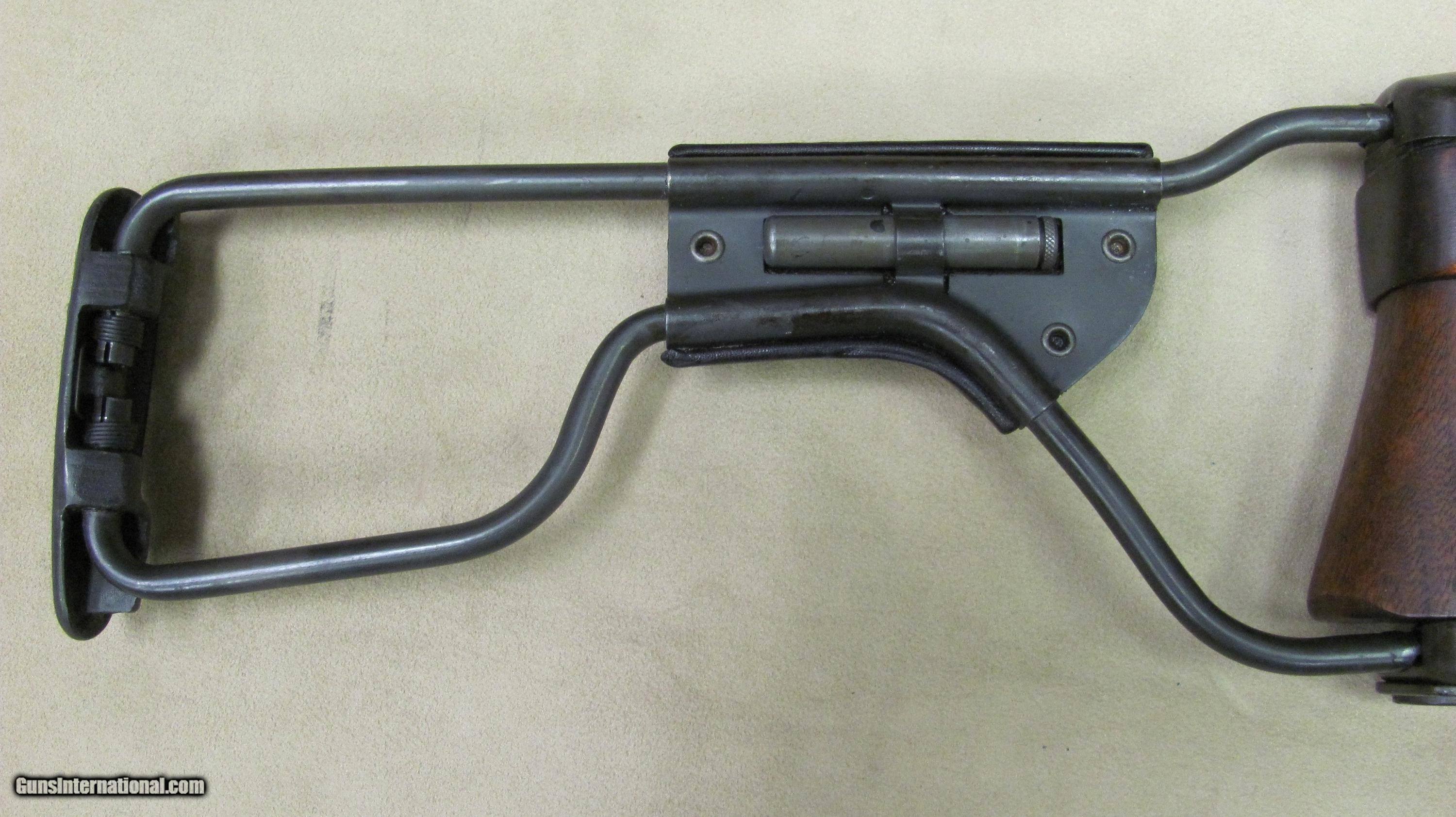 Description: Inland M1A1 paratrooper carbine that has some of the later parts such as an adjustable rear sight and a round bolt, but has an early push button safety. All of these parts are correct for a Type 2 M1A. This rifle remains in very good condition including the folding stock (not a repo). SOLD Curio/Relic: Yes Rifle Caliber: .30 Carbine Manufacturer: Inland Model: M1A1 Serial Number: 5327401 Condition: Excellent Metal Condition: Excellent Wood Condition: Excellent Bore Condition: Excellent Action: Semi Auto Stock: Folding Stock Manufacture Date: 1944 Proof:Nitro: Nitro |