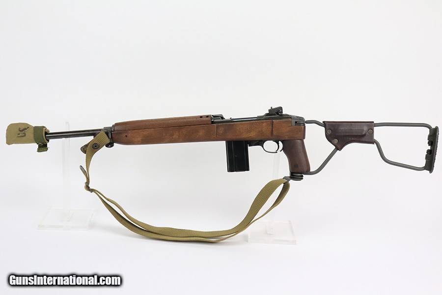 Description: This is an Inland M1A1 Paratrooper carbine from 1944. It has Type 2 characteristics such as adjustable rear sight and no bayo lug. The rifle is a "put-together" though with a mix of internal parts, though several made by Inland. Includes the RI marked pistol grrip. The finish on the rifle is excellent overall, with just some thinning on the barrel. Minty bore. Excellent wood condition. Comes with a canvas muzzle cover and sling. SOLD Curio/Relic: Yes Rifle Caliber: .30 Carbine Bore: 9.5/10 Condition: 90-95% |