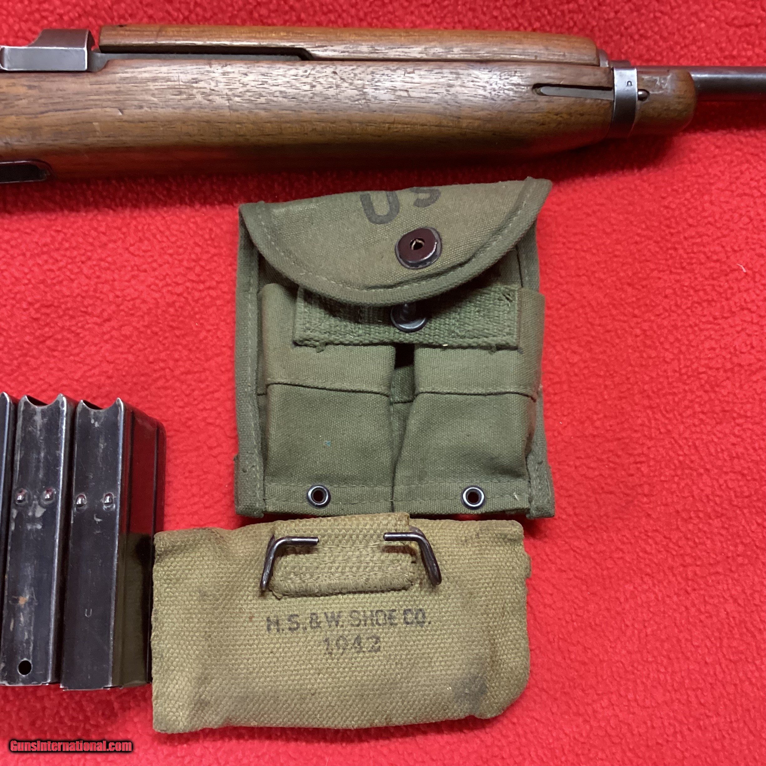Description: FOR YOUR VIEWING FROM AN ESTATE IS A M1 CARBINE MADE BY QUALITY HARDWARE WITH A ROCK-OLA BARREL. THE CARBINE SHOOTS WELL, AND HAROLD THE PREVIOUS OWNER LIKED IT SO MUCH HE CARVED HIS NAME ITO THE LEFTSIDE OF THE STOCK. IT HAS THE EARLY FLIP SIGHT. RIFLE COMES WITH MILLITYARY MAGS AND TWO POUCHES. I BELIEVE THE LARGER MAG IS AFTER MARKET. TEST FIRED FUNCTIONS WELL. NOTE: SHIPPING AND INSURANCE EXTRA CALL OR EMAIL FOR MORE INFO ETC. THANKS FOR LOOKING ASK ABOUT OUR 90 DAY EZ PAY PLAN SOLD |