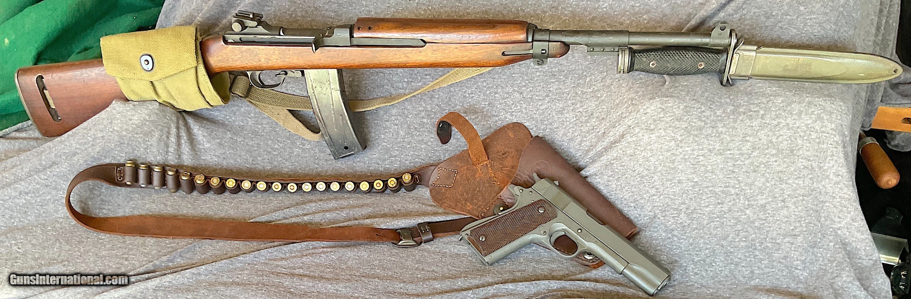Description: We have a real fine find ; Four (4) for one price ( will seperate ) COLT 1911A1 = M1 SAGINAW CARBINE = Saginaw Barrel and Stocks , ( SAC Stamp in sling well ) == Both have been rebullt twice in their life time, first by Augusta Arsenal and then Springfield Arsenal , as a result are in HIGH EXCELLENT CONDITIION = Both appear to be U.S.M.C. issue == Fighting knife / Bayonet USM 4 ( tmn co. ) W/ Dept of Defense stamp == Scabbard USM 8 ( Bim Co.) == Tanker holster is in Glove soft leather made by ENGER KRESS Co. , USA == 1944 == Pictures are MAJOR part of description == If you are reading this you know more than I of these War Horse guns and accessories == ALL OFFERS CONSIDERED == LAY A WAY Welcome == C & R will suffice == shipping 75.00 lower 48 == ZELLE accepted == SOLD Curio/Relic: Yes |