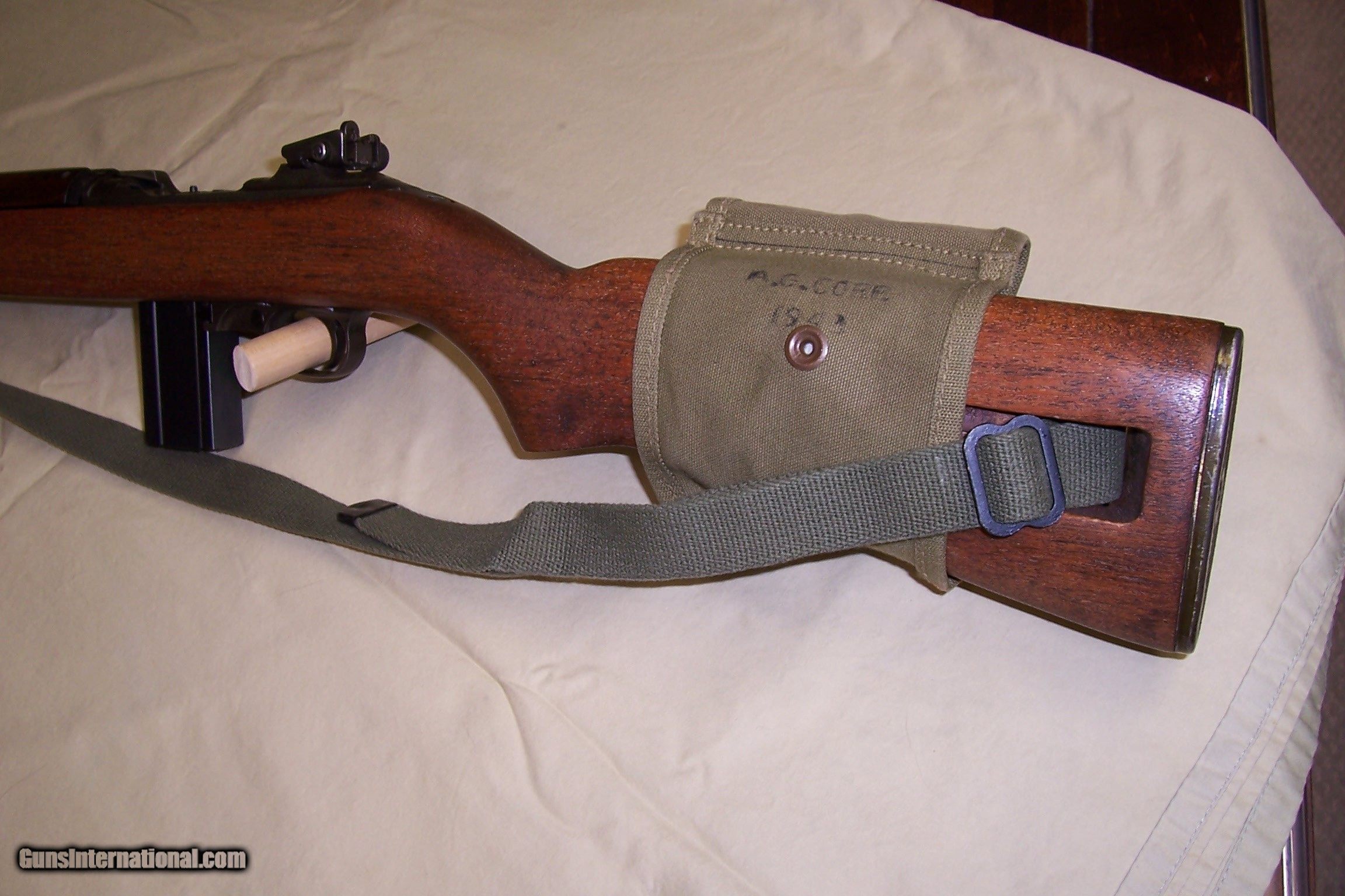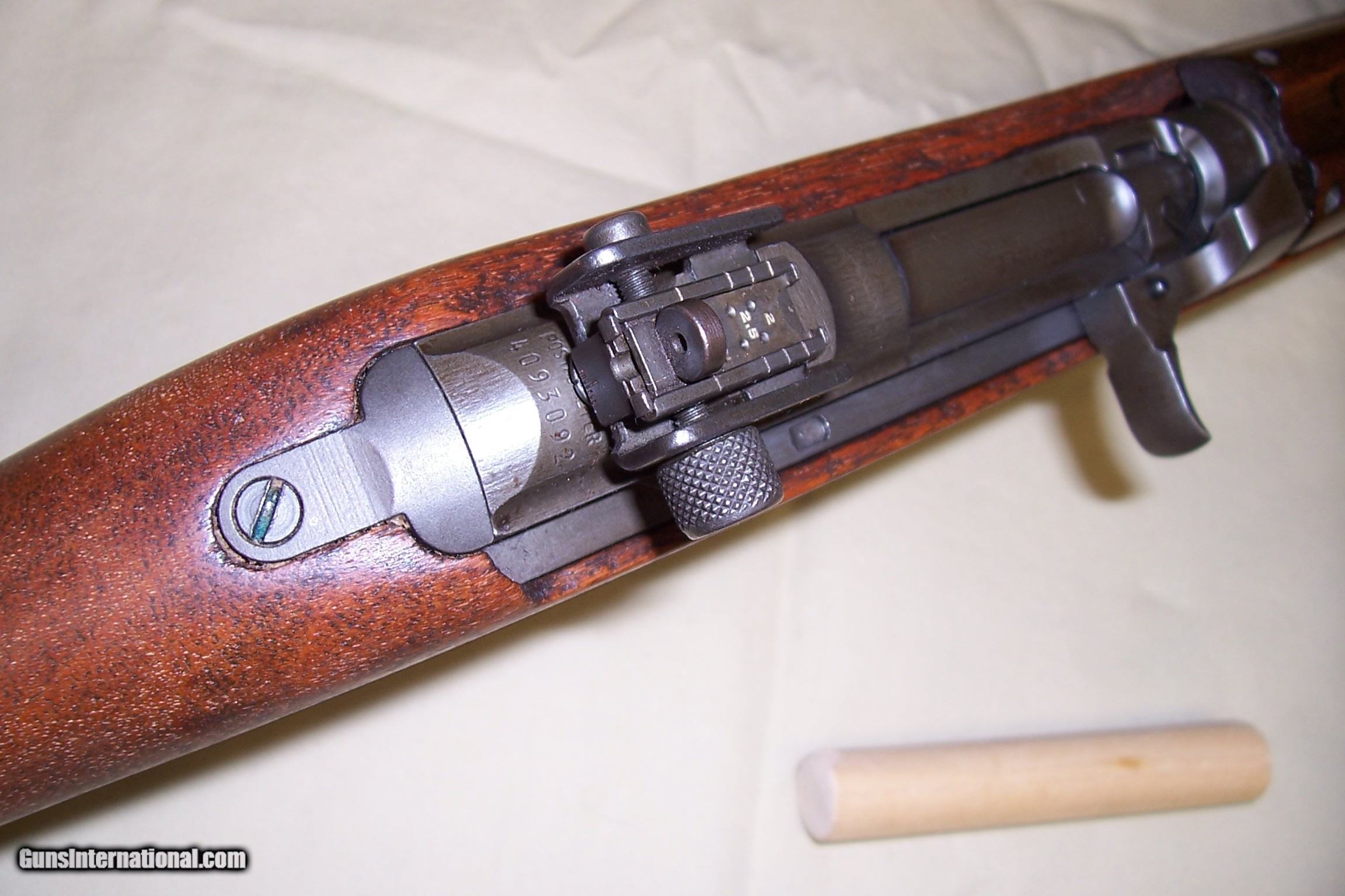 Description: A very nice National Postal Meter 30 cal M1 Carbine with sling and mag pouch with 3 mags. Marlin barrel, flat bolt and correct wood. A 1943 date, serial number 4093092. Take a close look at this carbine it is NICE. Call or email any questions. SOLD Curio/Relic: Yes Manufacturer: National Postal Meter Model: M1 Carbine Serial Number: 4093092 Caliber Info: 30 Bore: excellent Condition: Excellent Metal Condition: excellent Stock: excellent Finish: excellent |