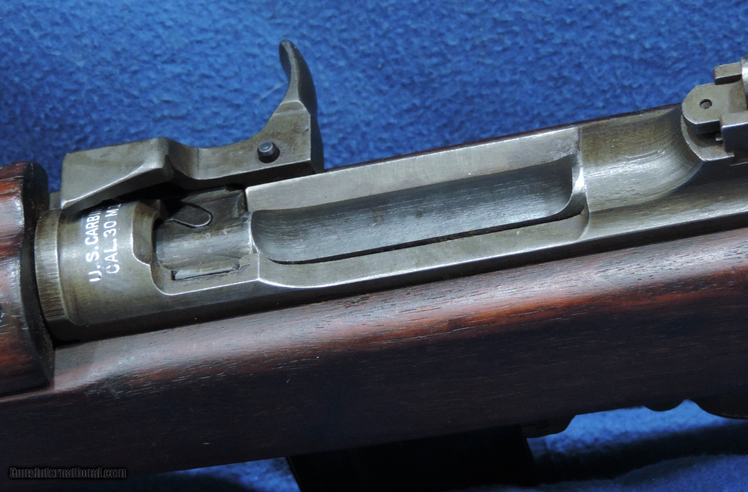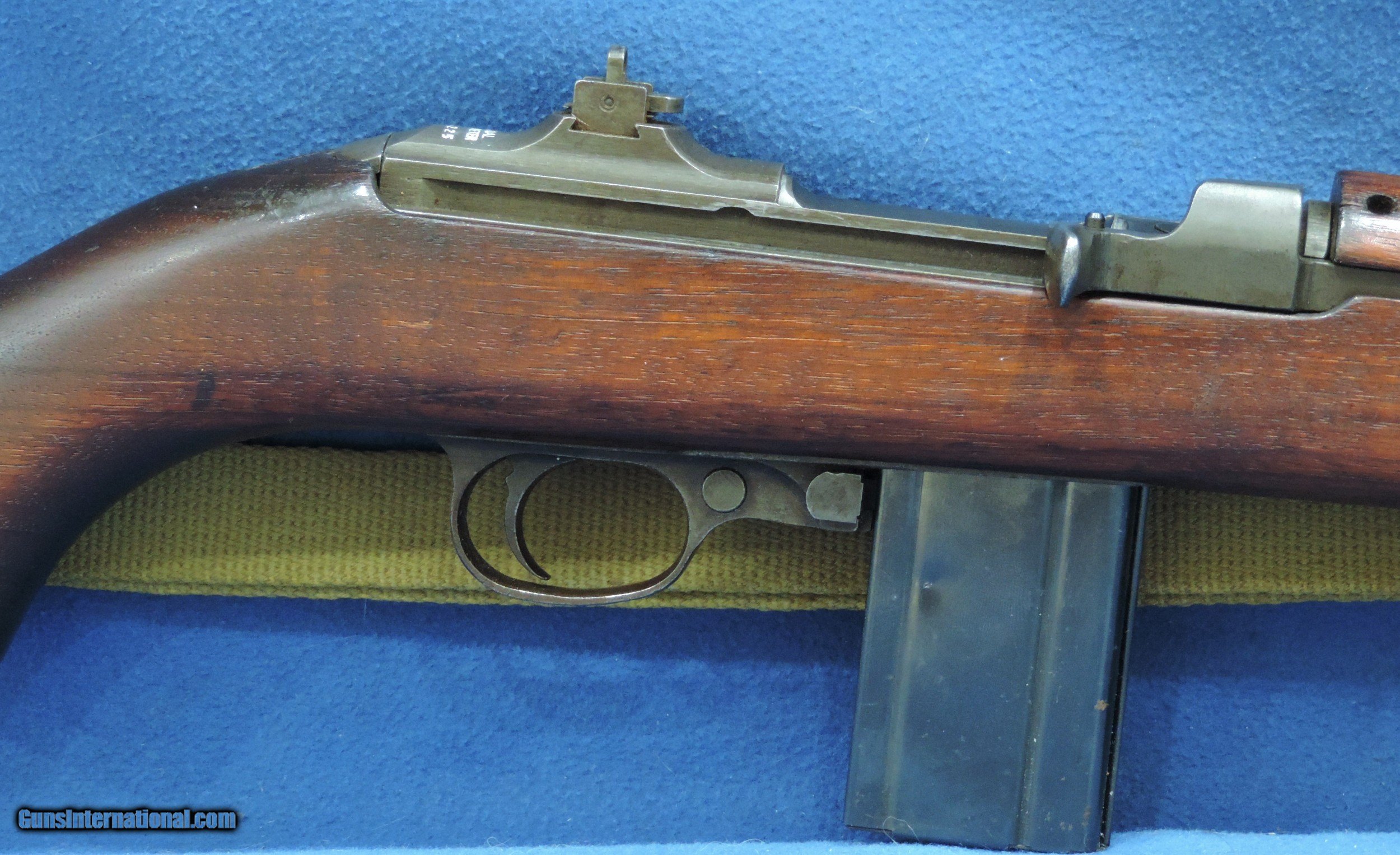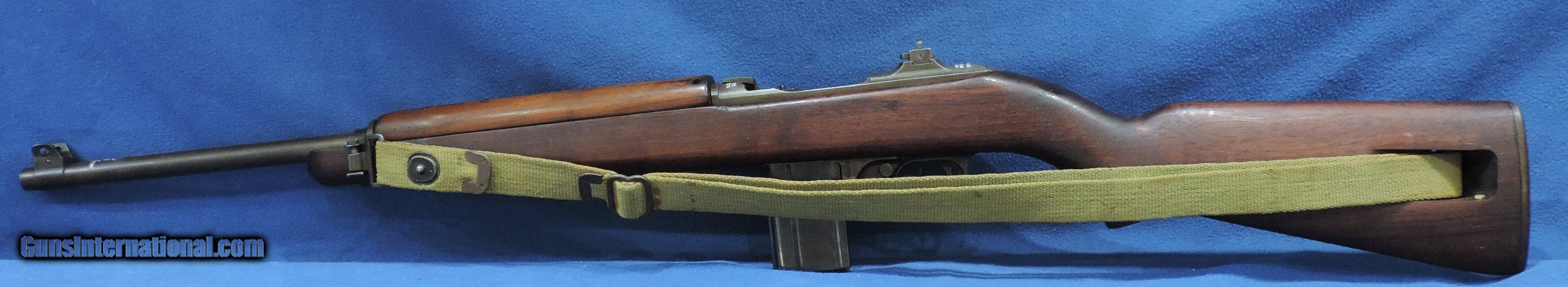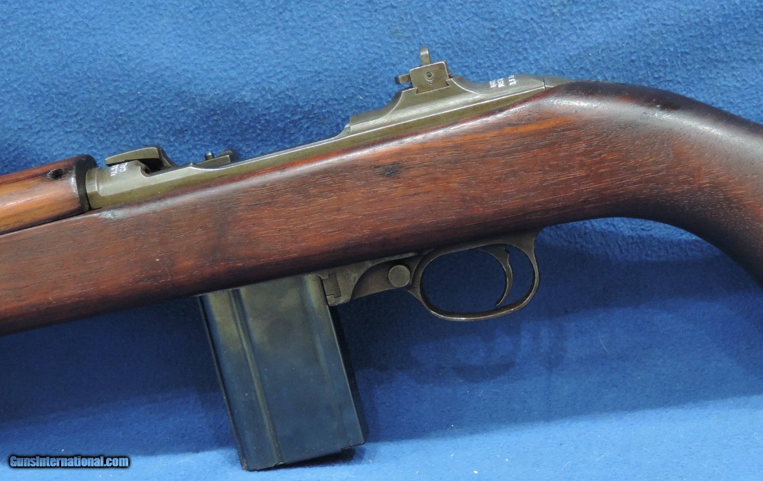 Description: INV. 7784 NATIONAL POSTAL METER M1 CARBINE, CAL. .30. #15362XX . IT'S A REAL RARE ONE. 1943 FIRST YEAR OF PRODUCTION. MFG. THEY WERE 4.5% OF THE TOTAL M1 PRODUCTION. THE ORIGINAL CONDITION IS REALLY QUITE NICE. THE BLUED FINISHED HAS FADED SLIGHTLY TO A SILVER BEIGE PATINA. THE BARREL IS STAMPED UNDERWOOD, 7/43-FLAMING BOMB. IT HAS HAS ALL THE FOLLOWING ORIGINAL PARTS, OP ROD FLIP SIGHT, FLAT BOLT, PUSH BUTTON SAFETY, TWO RIVET HAND GUARD, TRIGGER ASSEMBLY, BARREL BAND, AND HIGH WOOD STOCK. THE SLING INLET IS MARKED "TRIMBLE TN". THE RIGHT SIDE OF THE BUTT IS STAMPED, BOXED NPM/FJA, AND ORDINANCE WHEEL. ALL OF WHICH IS 100% CORRECT. THE SLIDE RAILS, BOLT FACE AND FEED RAMP SHOW LITTLE USE. THE BORE IS MINTY, MIRROR BRIGHT, WITH RAZOR SHARP RIFLING WITH NOT A DROP OF FROST. IT COMES WITH ONE ORIGINAL CANVAS SLING AND ONE TEN ROUND MAGAZINE STAMPED "MN"....FOR THE VERY CRITICAL INVESTOR COLLECTOR IT DOESN'T GET NICER THAN THIS....SHIPPED....$2495.*** *** PURCHASE SATISFACTION GUARANTEED*** To purchase this firearm or if you want to request more information contact us at: Email ckguns[at]ymail[dot]com Phone 201-512-0002 Cell 201-575-6838 FAX 201-215-4759 We accept most major credit cards. Prices shown are Discounted 3% for Cash or Check. The buyer must be familiar with all the laws governing the purchase and the ownership of firearms in their own city and state. The Yankee Armorer, Inc is not responsible for any failure to comply with or observe these laws. The Yankee Armorer, Inc will only ship after full payment and receipt of all required documents. Shipping: Add $35.00 for handguns, $45.00 for long guns. New Jersey buyers are subject to a 7% sales tax. The Yankee Armorer, Inc offers a 3 day inspection period with full refund upon return of intact firearm and in the original condition. The Yankee Armorer, Inc offers a no interest lay away program - 25% down; 25% in 30 days; 25% in 60 days; and full payment in 90 days. Any violation of this policy is subject to restocking and forfeiture of all payments. Any variation from this policy must be agreed to in advance. Unshipped Cancelled sales are subject to a 20% restocking fee. Be advised that all firearms sold by The Yankee Armorer, Inc. or the Gun Exchange, LLC (SELLER) are sold as collector’s items. They have not been fired or tested for safety and must be examined by a license gunsmith prior to use. By purchasing any item from the (SELLER), you are agreeing to hold the (SELLER) free from any damages or lawsuits of any nature. Any item left for transfer or storage will be charged to $25.00 per month, per item from the day of its receipt. Any variation from this policy must be agreed to in advance. Store hours 10:00 am to 5:00 pm Tuesday -Saturday. It's always best to call for appointment. Store 201-512-0002, cell 201-575-6838. SOLD Curio/Relic: Yes Rifle Caliber: .30 Carbine |