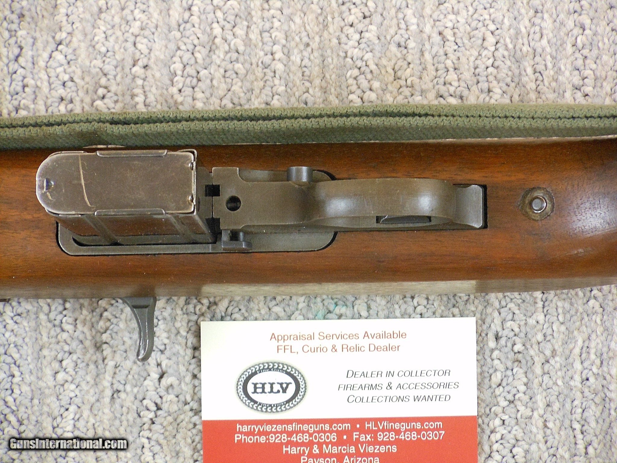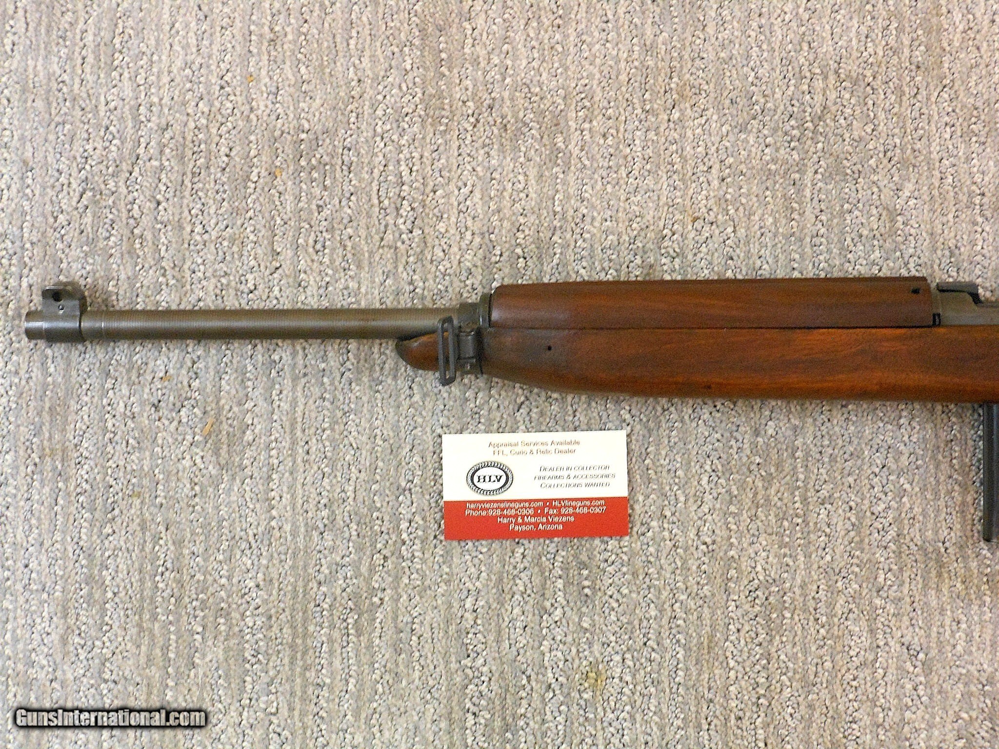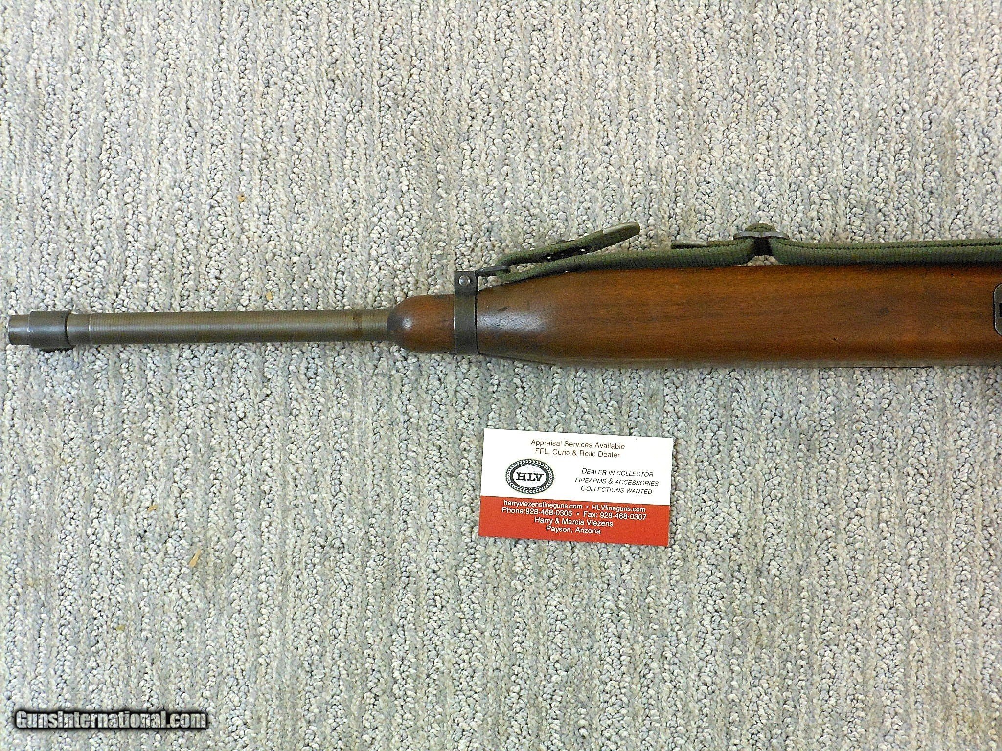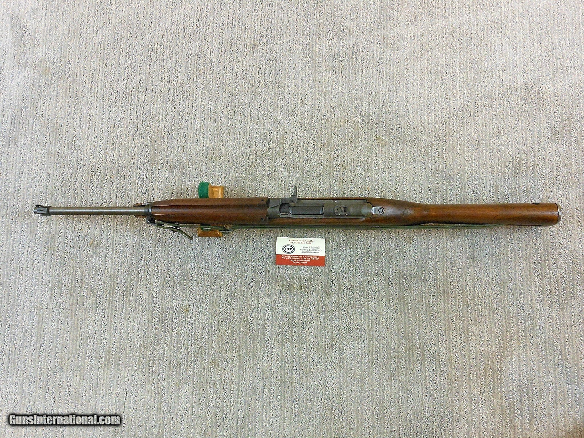Description: SOLD This National Postal Meter Carbine's barrel date is 1-44. The carbine's serial number is 4219579. It has the standard military dated barrel produced by Underwood. Underwood was one of the barrel suppliers for National Postal Meter as they did not produce their own barrels. This barrel is in minty condition. The front and rear sights are original to this carbine. This National Postal Meter has all of the correct original parts for the serial number range and time frame. This gun is in wonderful fine unissued looking condition! All of the original finish is intact on the gun and parts. The only wear is from working the bolt. The oval cut high wood stock and forend have all of the original finish intact. The stock and handguard is correctly {TN} coded for National Postal Meter. The magazine is also coded for National Postal Meter. National Postal Meter produced around 6.8% of the carbines manufactured during the war. That breaks down to 413017 carbines produced by them. To find a carbine in this nice of original condition is a real find! Here is one of these fine condition carbines for the collector to enjoy! Curio&Relic LAKE (7) F. No. 620 -22 SOLD Curio/Relic: Yes Rifle Caliber: .30 Carbine Manufacturer: National Postal Meter Model: M1 Carbine Serial Number: 4219579 Barrel Length: 18 Inch Chambers: Minty Condition: 99% Overall Metal Condition: Very Fine Wood Condition: Very Fine Bore Condition: Minty Barrels: Carbine Barrel Type: Military Action: Self Loading Stock: High Wood Finish: Parkerized Sights: Standard For The Serial Number Range Manufacture Date: 1944 Extras: Sling And Oiler |