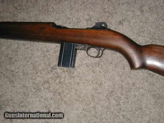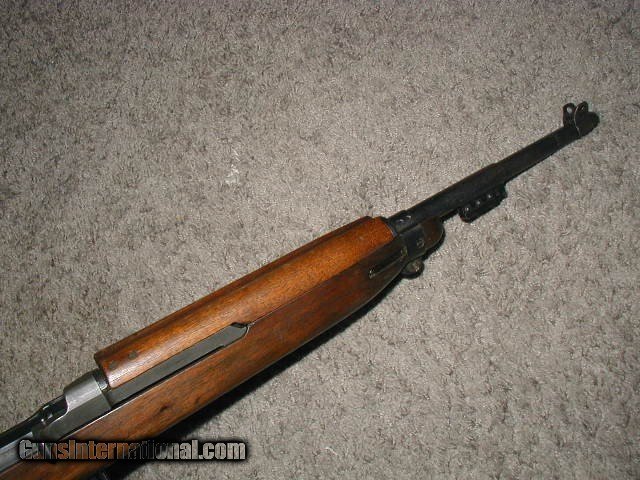 Description: THIS IS A VERY NICE 1944 M1 CARBINE IN THE 5.2 MILL. RANGE, WITH A 6-44 BARREL DATE......ALL THE PARTS INSIDE AND OUT ARE MATCHING INLAND...STOCK IS ORIGINAL WITH LARGE ORDNANCE WHEEL AND BOTH HANDGUARD AND STOCK ARE MARKED IO....ORIGINAL FINISH ON METAL AND WOOD. BORE IS MIRROR BRIGHT. H I MILLED REAR SIGHT...THE BAYONET LUG WAS ADDED AT SOME POINT, BUT THERE ARE NO REBUILD MARKS ANYWHERE.....VERY ATTRACTIVE WW2 CARBINE, C&R OK.... SOLD Curio/Relic: Yes |