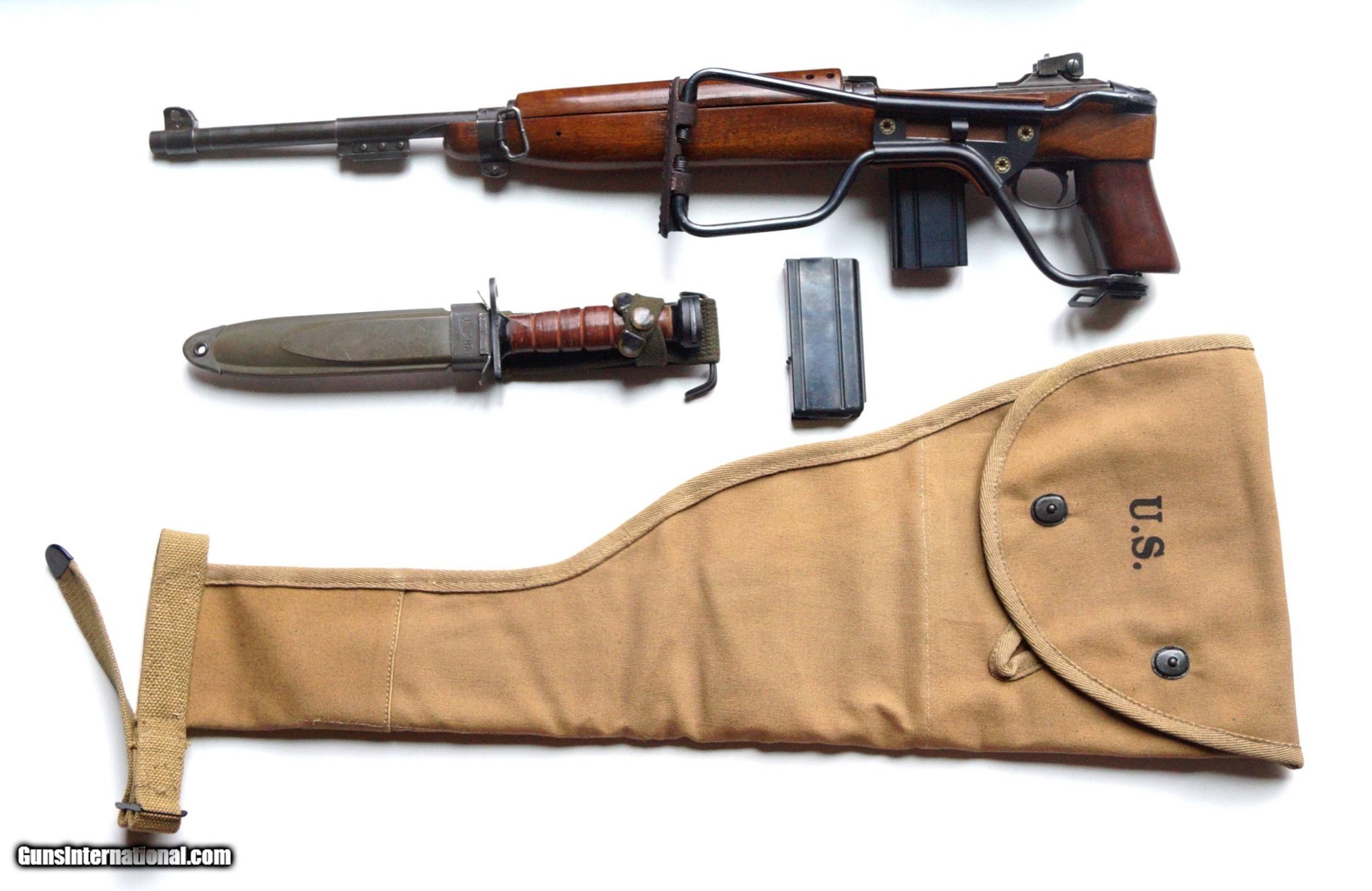 Description: THIS IS AN ORIGINAL INLAND - GENERAL MOTORS M1 CARINE (PARATROOPER MODEL), .30 CAL. THE RIFLE IS IN VERY GOOD CONDITION. ALL ORIGINAL, NUMBER MATCHING, VERY GOOD BORE, FOREARM AND STOCK, MECHANICALLY CORRECT AND TIGHT. THE RIFLE COMES WITH 2 ORIGINAL MAGAZINES, BAYONET AND SCABBARD AND CANVAS PARATROOPER CARRYING CASE. IT WOULD BE HARD TO FIND ONE BETTER THAN THIS. NOTE: BARREL IS MARKED INLAND - GENERAL MOTORS 8-43. SOLD Curio/Relic: Yes |