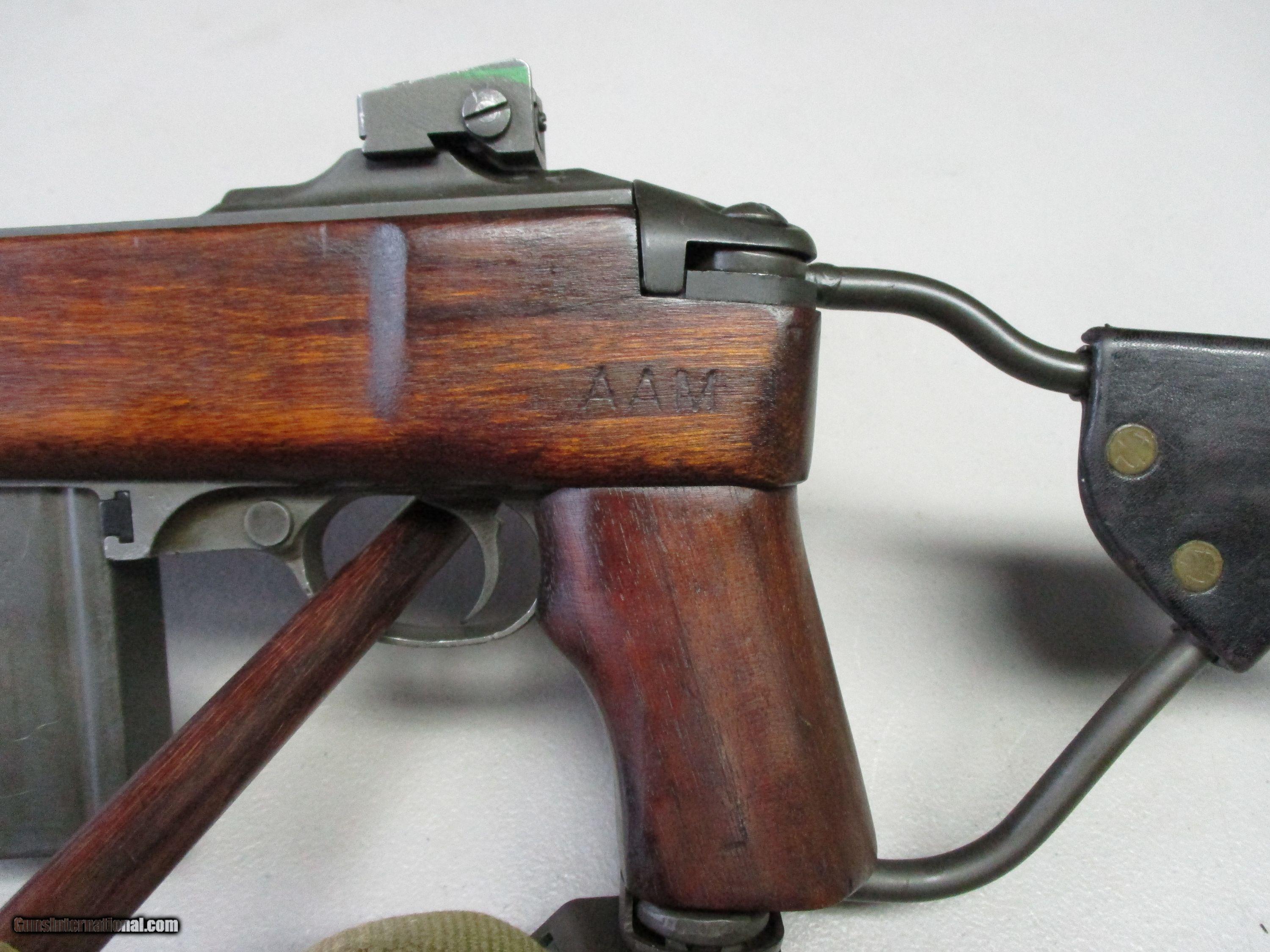 Description: Designed to replace the M1911A1 as an issue weapon for second line and rear-area troops, the M1 carbine was designed with the goal of being lighter than the M1903 Springfield, M1 Garand, and M1A1 Thompson, while providing more firepower than the M1911A1. For all intents and purposes. This goal was reached, but at a price. The M1 Carbine utilized the .30 Carbine round which had been based on the .32 Winchester Self-Loading (32 WSL). That round had been designed for hunting but proved to be underpowered for deer and too large for varmint hunting. In basing the .30 Carbine on this round, Winchester produced a round that was adequate for the task required. At roughly 40,000 Psi, the round was effective out to, at most, 200 yards. On the positive side, the .30 carbine is in the same class as the 357 Magnum. Despite the original intentions behind the M1, the rifle went on to be issued many US Army personnel, even those serving on the frontlines. A folding stock version, the M1A1, was most famously used by the 82nd and 101st Airborne divisions during their campaigns which took them from Italy (82nd) to France, Belgium, and finally, into Germany. Despite occasional criticisms for lack of firepower past 200 yards, the M1 carbine was well-liked for its light weight and generous (at the time) magazine capacity of 15 rounds. The sights were easy to use, and the rifle would hit anything the rifleman aimed at out to at least 85 yards (from personal experience with my one M1) without having to adjust the rear sight to compensate for distance. The M1 shown above was built by the Inland Division of General Motors in 1943. It looks to be in fantastic condition considering its age. As with all paratrooper carbines, the forend exhibits small dents from the buttstock when in the folded position. These dents can be steamed out. The rifle comes with an original carry bag produced by Atlas Awning in 1943. This was the only company to produce these bags. There is one 15-round magazine. SOLD Curio/Relic: Yes Manufacturer: Inland Mfg. Division - General Motors Model: Carbine, Cal. 30, M1A1 Serial Number: 425828 Caliber Info: .30 Carbine (7.62x33mm) Condition: Used - Original WWII Barrels: 18" (457mm) Action: Semi-Auto Stock: Folding - Steel Finish: Original Sights: Iron - Adjustable Rear Manufacture Date: 6-43 |