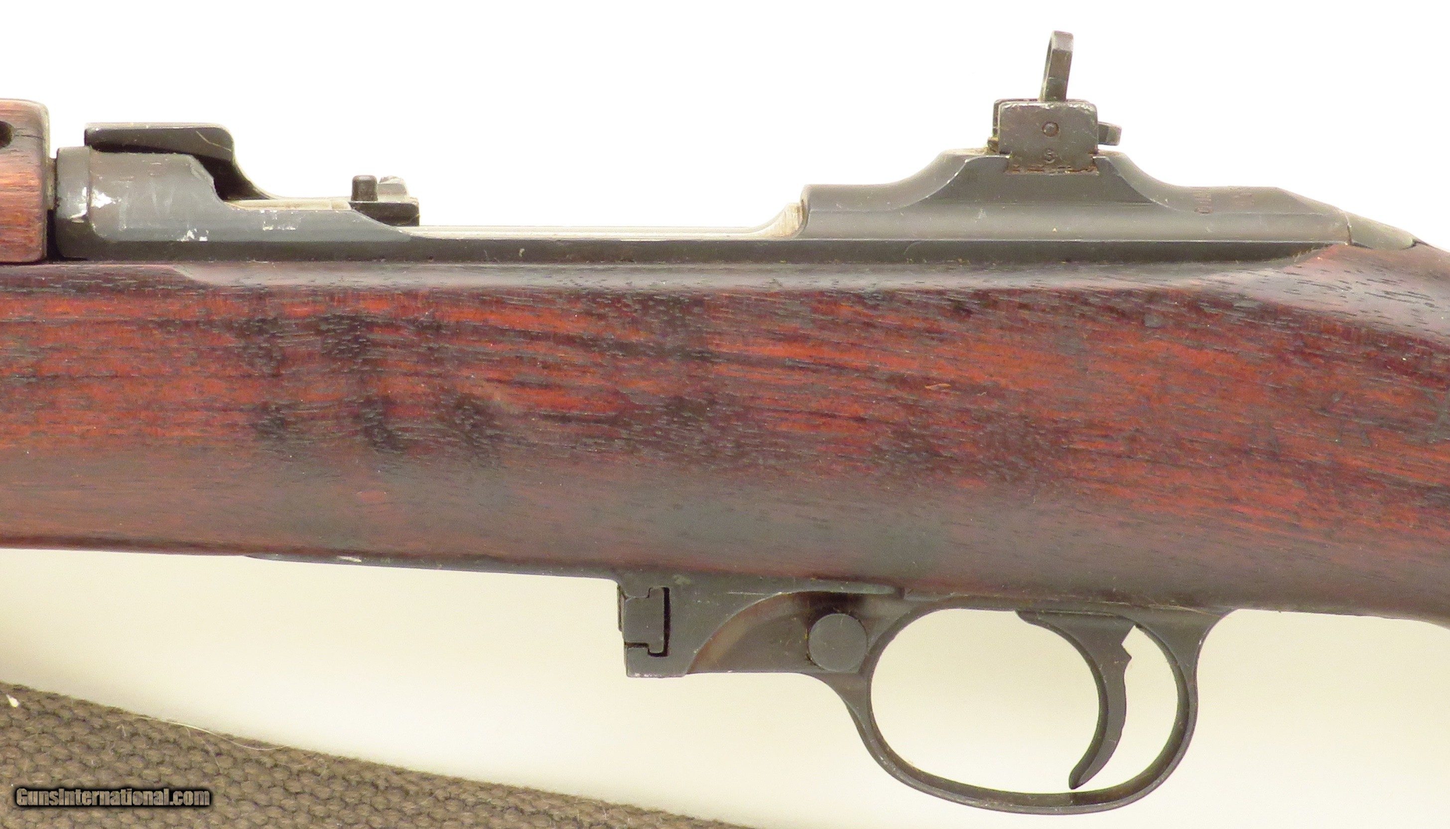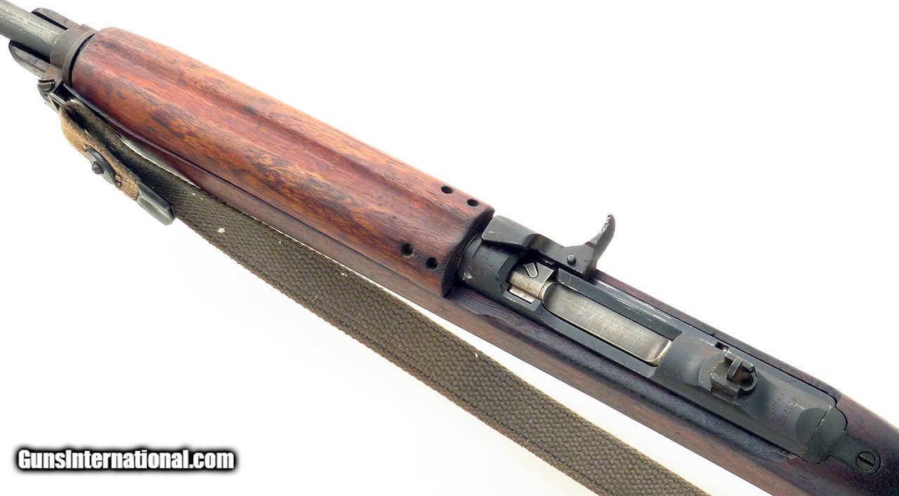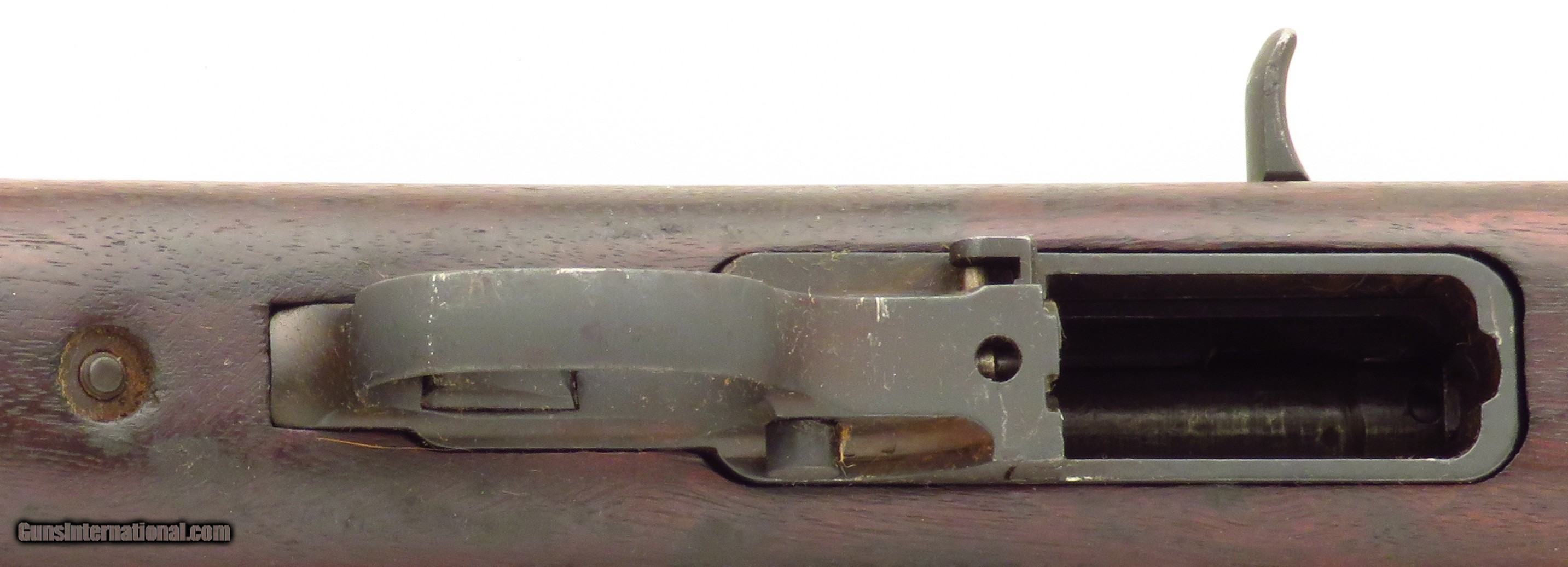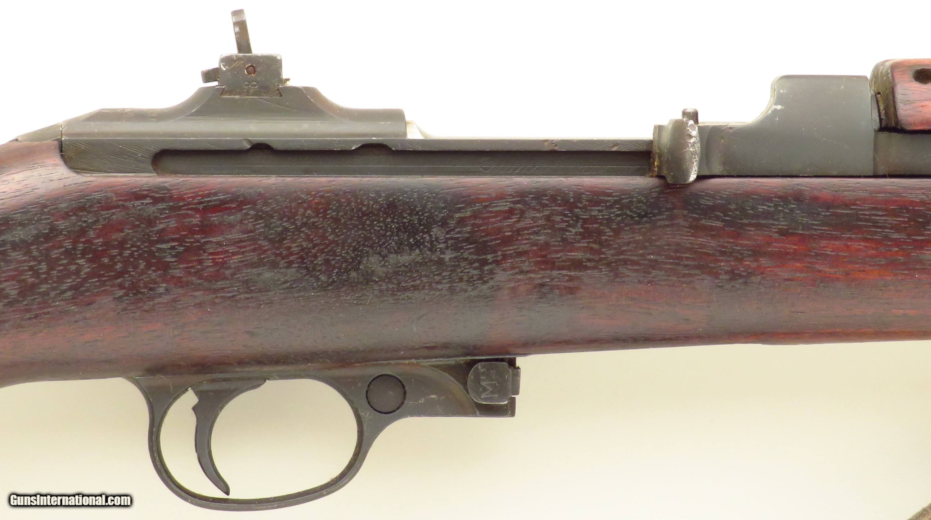 Description: Quality Hardware M1 Carbine .30 Carbine. With a Rock-Ola barrel dated 1943 (appears to be 4/43, month is faint), serial 1582749 has double-rivet guard, rocker rear aperture sight and a sling. MARKINGS: "P" on barrel, "AAX" forward of grip left, 10" in sling slot, stock cartouche, "P" at grip and a partial rack number. A canvas bore cover (Dave Mfg., 1944) is included. No magazine. CONDITION: The bore (four lands) is good with areas of mild roughness. Metal finish is approximately 50 percent and wood finish is approximately 60 percent. Rear sight is loose. The price is firm and layaway is available. $2,250 plus shipping. SOLD Curio/Relic: Yes Rifle Caliber: .30 Carbine |