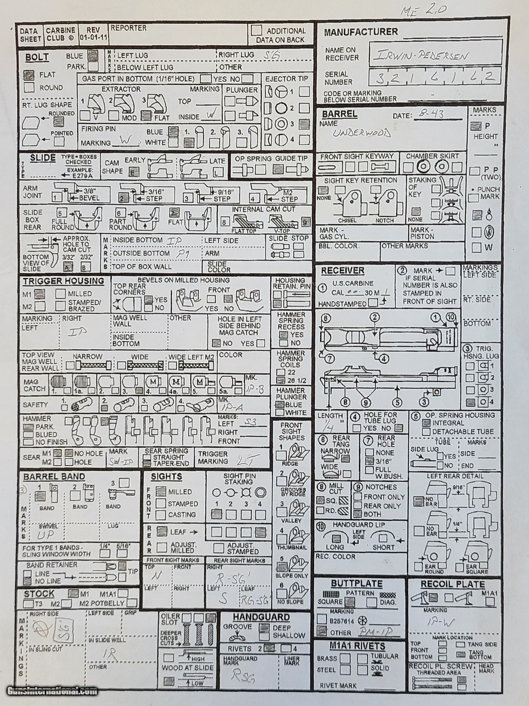 Description: For sale is very nice Irwin Pedersen 3.2 million serial numbered M1 carbine. No import marks. No reproduction parts. See data sheet for details. Receiver has stake marks from an adjustable sight. M.W. 2.0. Nice Bore. $3150 Email with questions or for additional pictures. Shipping from my ffl to your ffl or C&R. Shipping is extra and is $60 with insurance. SOLD Curio/Relic: Yes Rifle Caliber: .30 Carbine Manufacturer: Irwin Pedersen Model: M1 carbine Serial Number: 3216162 |