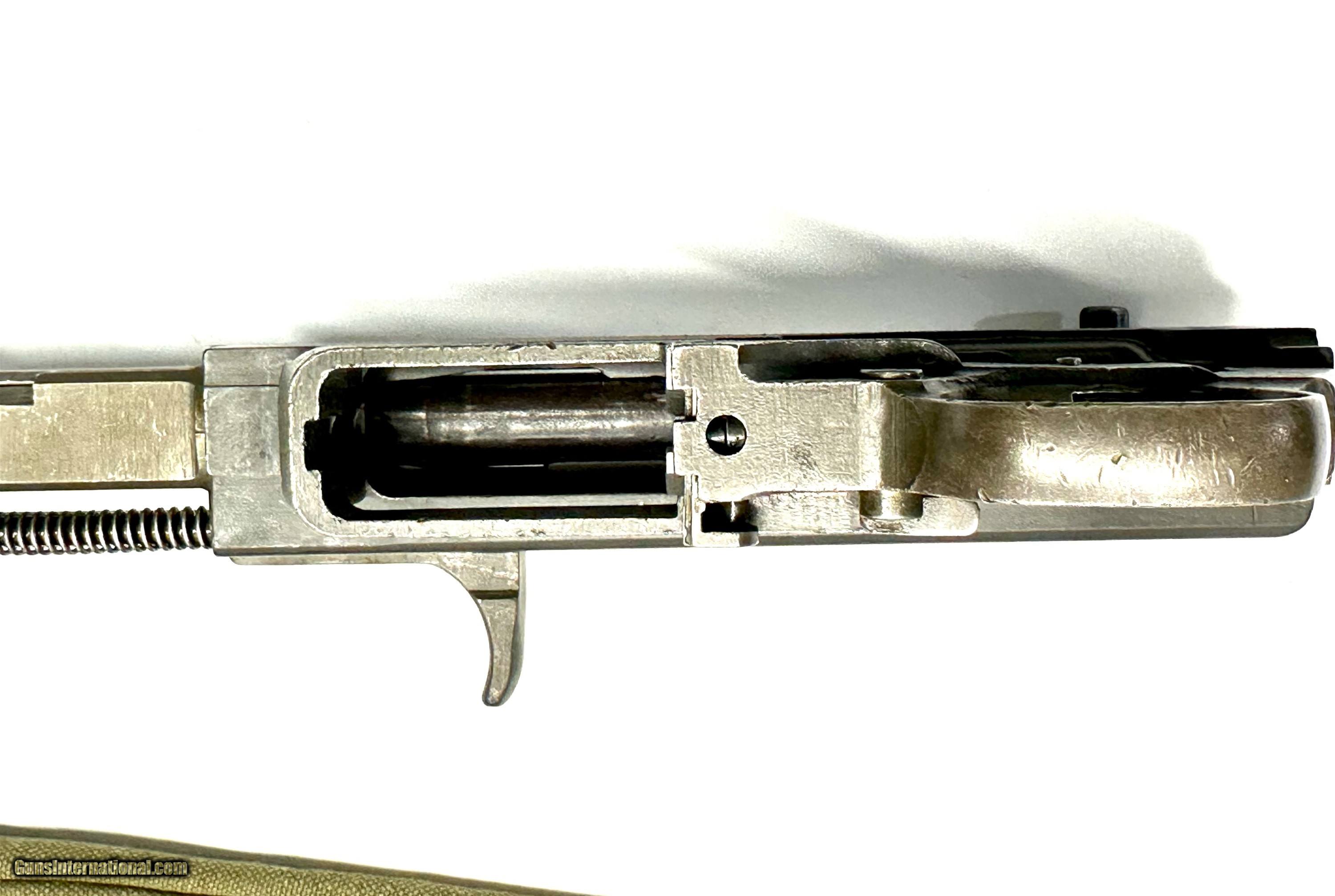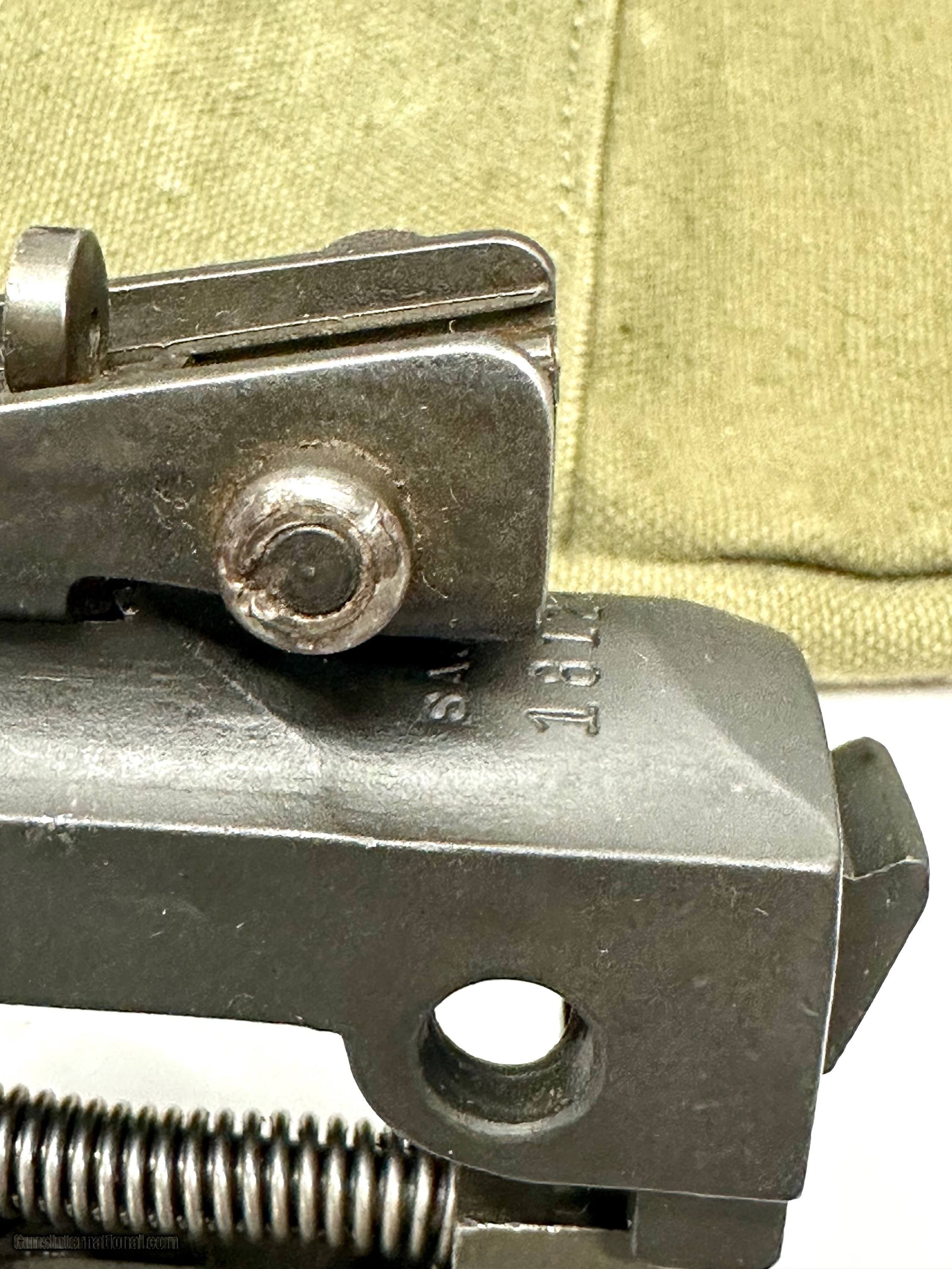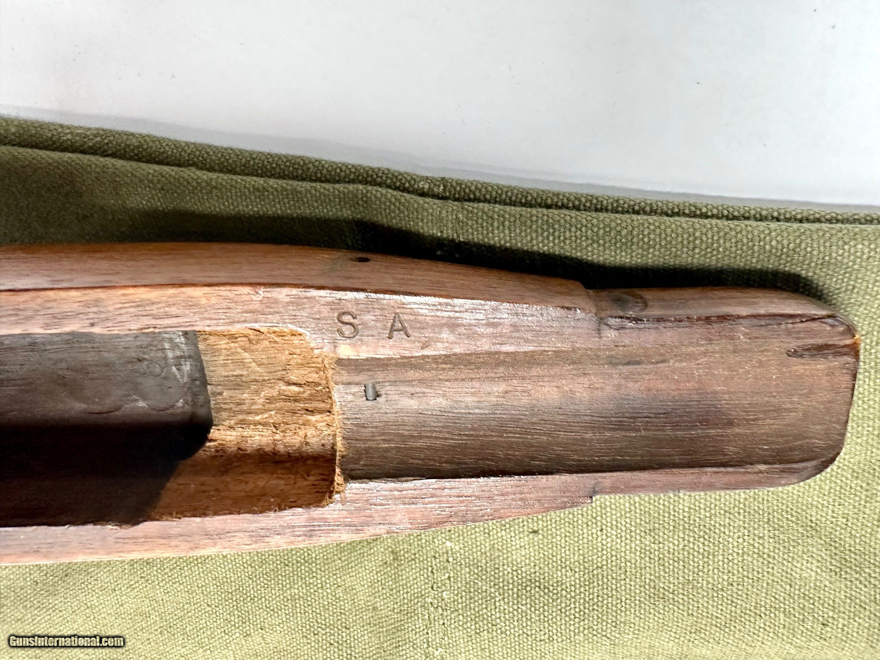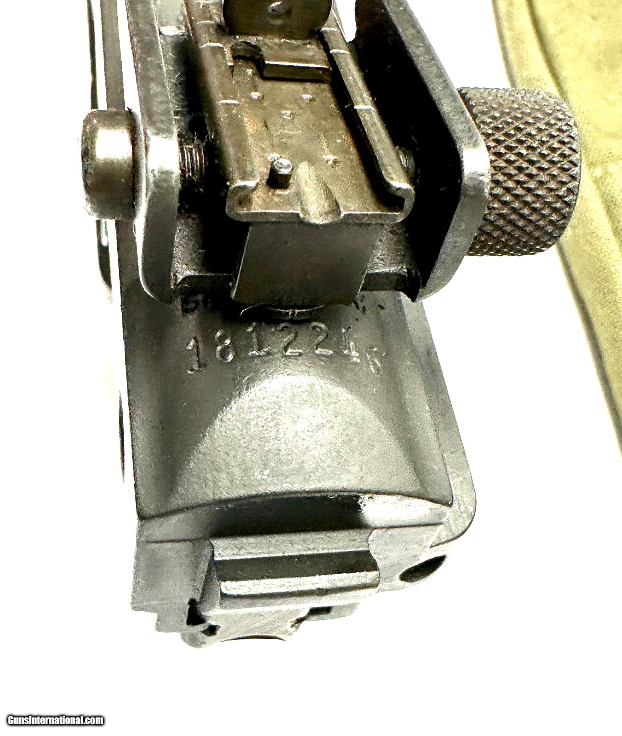Description: This is a very clean little M1 Carbine. It has a Saganaw receiver within the serial number range that they were given from the Irwin-Patterson's range when Irwin-Patterson failed to have any of their rifles accepted by the US military. This carbine has a group of eclectic parts as can be seen in the photographs, Contrary to what many people may think a very large number of M1 carbine's left there factory's with mismatched manufacturers parts on them. For instance Inland Shipped approximately 34,000 barrels to Saginaw to aid in production Rock-Ola, Underwood and NPM also are recorded as shipping miscellaneous parts to Saginaw as the war progressed so they could fulfill orders. This carbine comes with a sling and oiler that look to possible be period correct. It also comes with a Canvas Bag with a sling that I believe to be a reproduction but still a nice touch. It is also fitted with a 1955 dated bayonet Italian manufactured by AET (Arsenal Esercito Torino) with a scabbord these we quality made bayonets. It also has an RO stamped new manufacture 15 round magazine. The stock has been refinished and It looks like the previous owner removed some extra wood in front of the gas piston. This in no way will negatively affect functioning. Very fun guns to take to the range with decently priced ammunition available. Free shipping No CC Fees Maine residents must add 5.5% sales tax SOLD Rifle Caliber: .30 Carbine Manufacturer: Saginaw Model: M1 Carbine Serial Number: 1812246 Barrel Length: 18 Condition: Very Good Metal Condition: Very Good Wood Condition: Very Good Bore Condition: Very Good Action: Semiautomatic Manufacture Date: 1944? Extras: Canvas Bag, Bayonet, Scabbard Item Location: Buxton Maine |