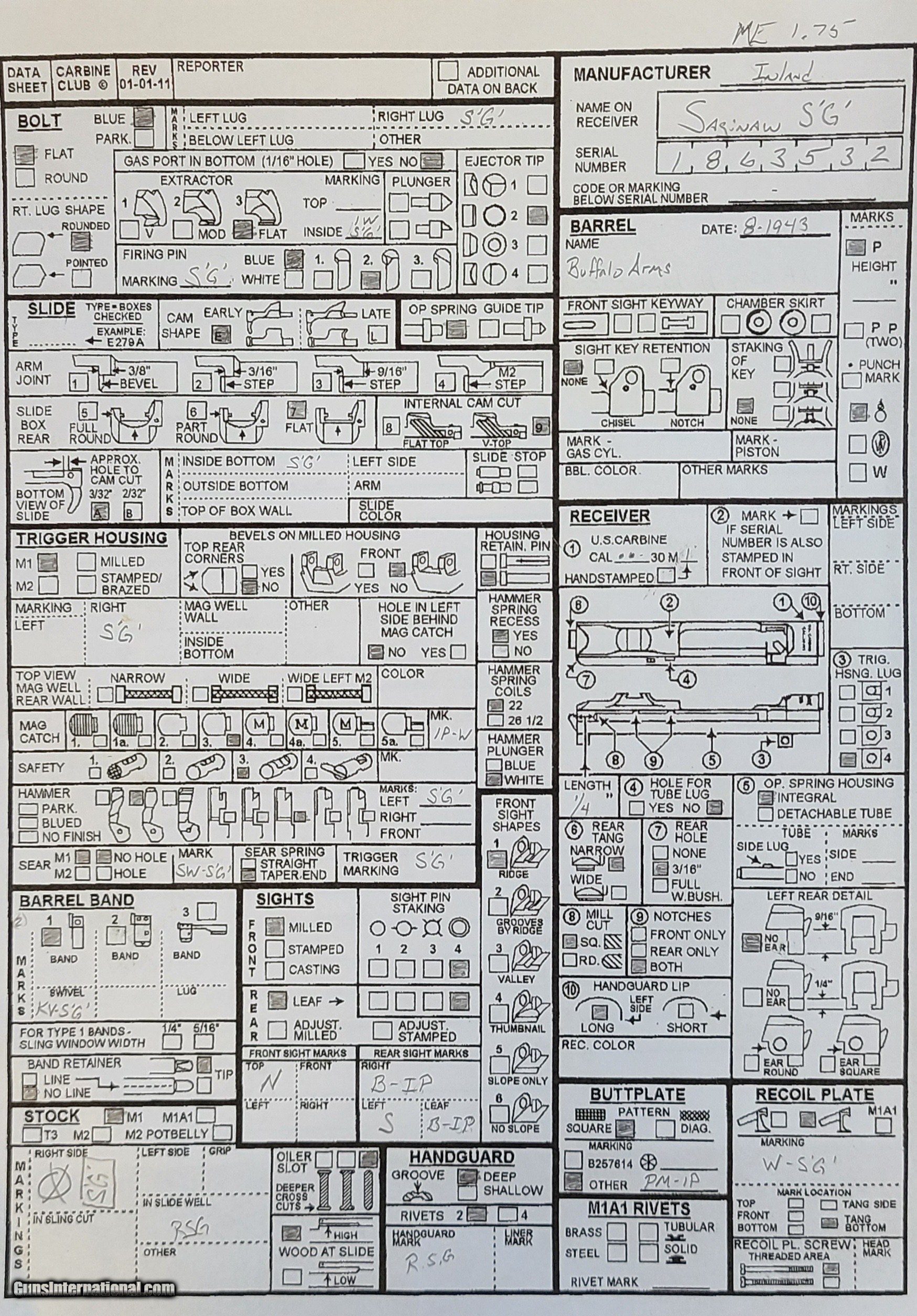Description: Here we have an original finish, nice, early Saginaw S'G' 1943 era M1 carbine. No reproduction parts. No pitting and no corrosion. No import marks. No repairs or cracks in the stock. Receiver has NOT been staked for an adjustable sight. There are ONLY type 1 barrel band marks on the barrel and stock. See data sheet for complete details. This carbine appears to be all correct with original finish and patina. M.W. 1.75. Nice bore. Feel free to email with questions and/or additional pictures. Ships from my FFL to your FFL or C&R. Shipping is extra and is $60. SOLD Curio/Relic: Yes Rifle Caliber: .30 Carbine Manufacturer: saginaw Model: m1 carbine Serial Number: 1863532 Condition: very nice |