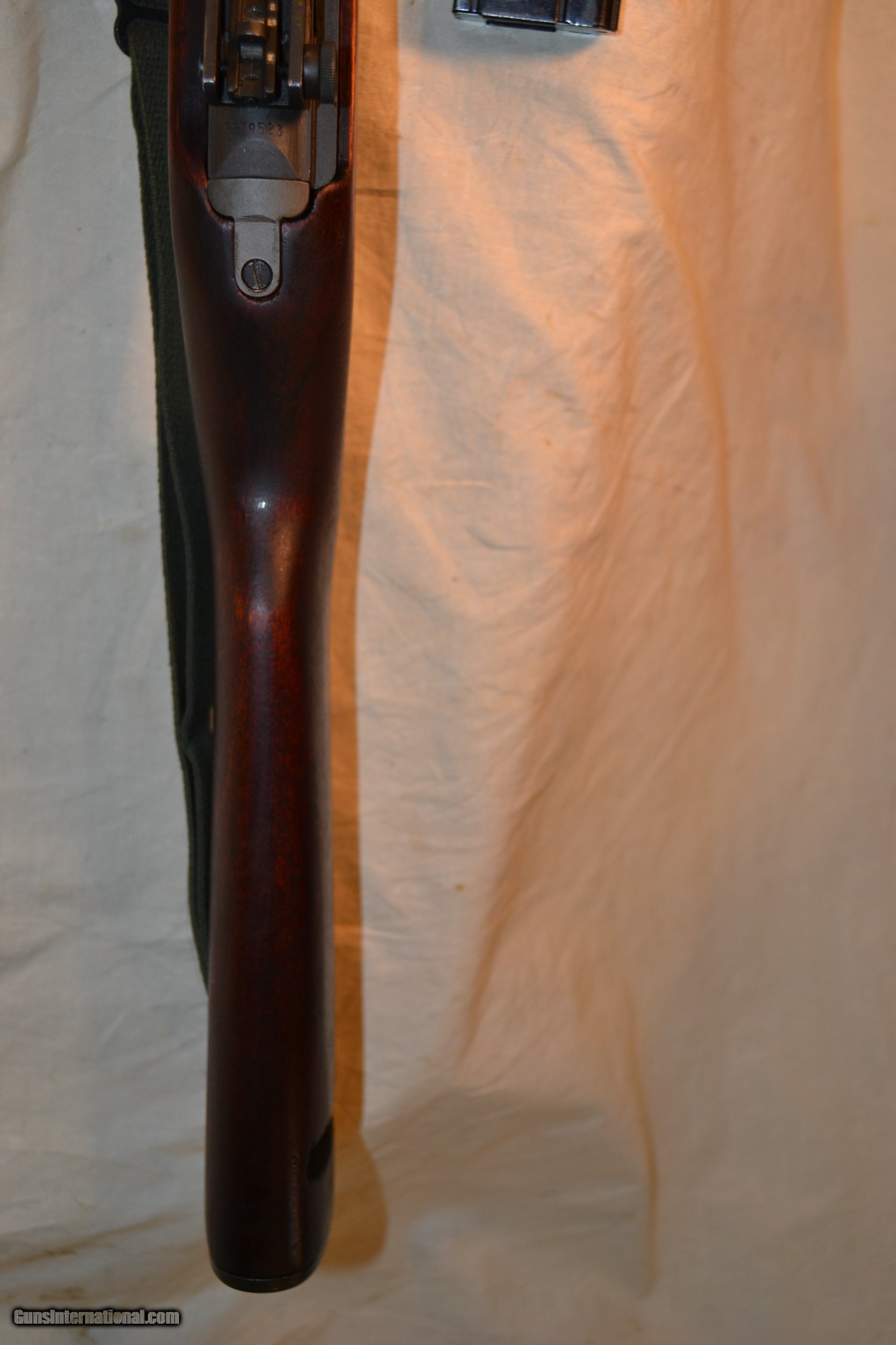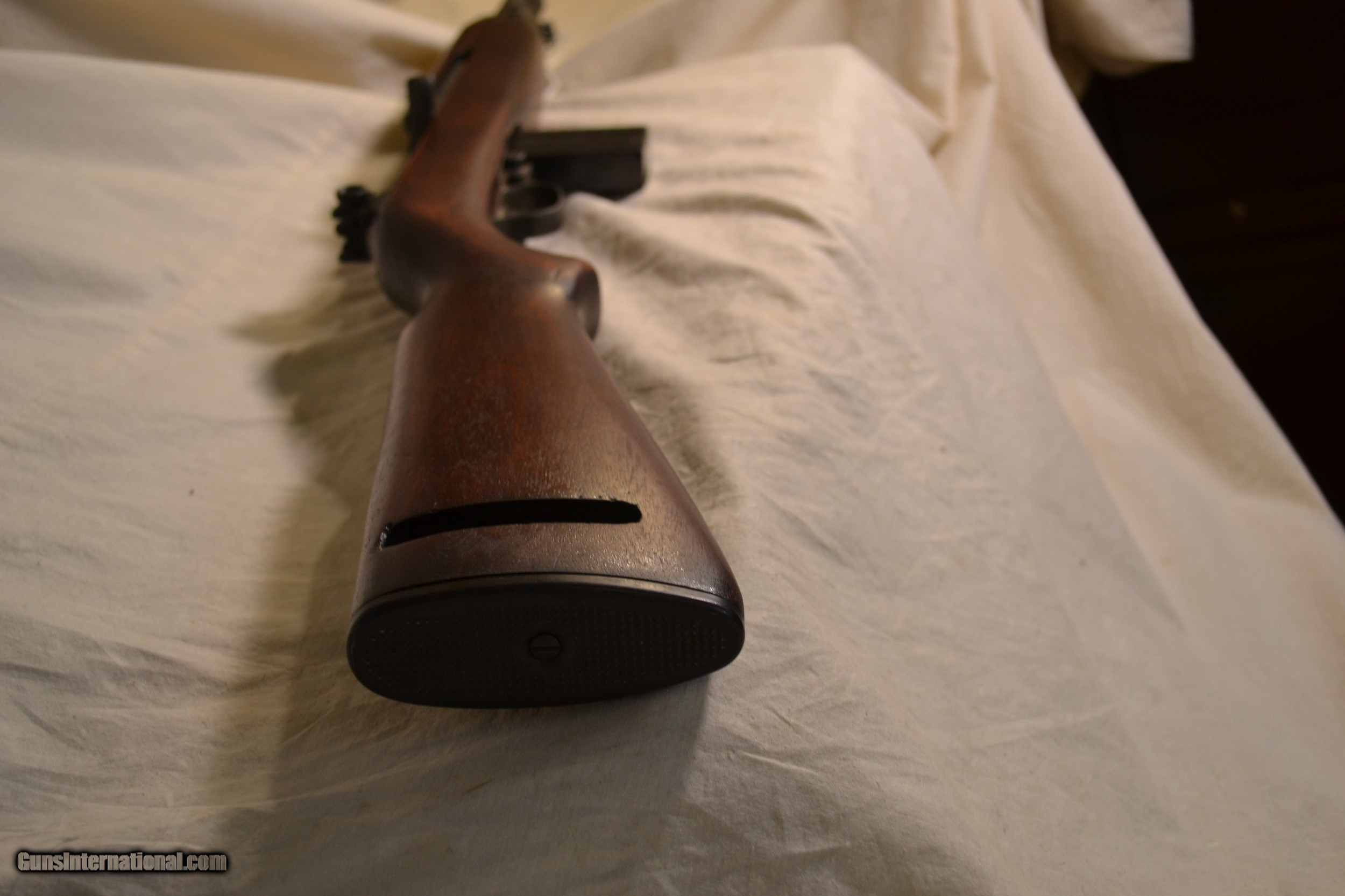 Description: Sale Pending ! **Further Price Reduction !! This M-1 Carbine is a Saginaw "SG" was mfg from 5/43 to 5/44. I would estimate this one as being mfg about 6/43. It has mostly WWII parts and the following is an inventory of them: Receiver - Saginaw SG (On back of the receiver), Rear Sight H1, Bolt Flat w/"SG" and components, Trigger HSG - Inland w/mixed unmarked parts, Safety - UM, Mag Catch - UM, Oper Slide - p ?, Stock - "O" in sling well, Recoil Plate - UM, Hand Guard - "IO", Barrel Band T-3, Butt Plate - Inl. The magzine is not included. These Saginaw SG and Saginaw Gear Divisions accoding to my information swapped parts around the beginning of the Sag SG takeover of Irwin Peterson in Grand Rapids, MI. There is to me some confusion about the exact timing and parts movement. Inland Div of GMC also may have played a part in this, I'm not sure. Anyway this Carbine is 95% made up of parts from the WWII era. It is in excellent condition w/good bluing, a stock w/no cracks or abuse and an excellent of an original WWII collectible firearm. SOLD Curio/Relic: Yes Manufacturer: Saginaw SG Model: M-1 Carbine Serial Number: 3379523 Caliber Info: .30 Condition: Very Good |