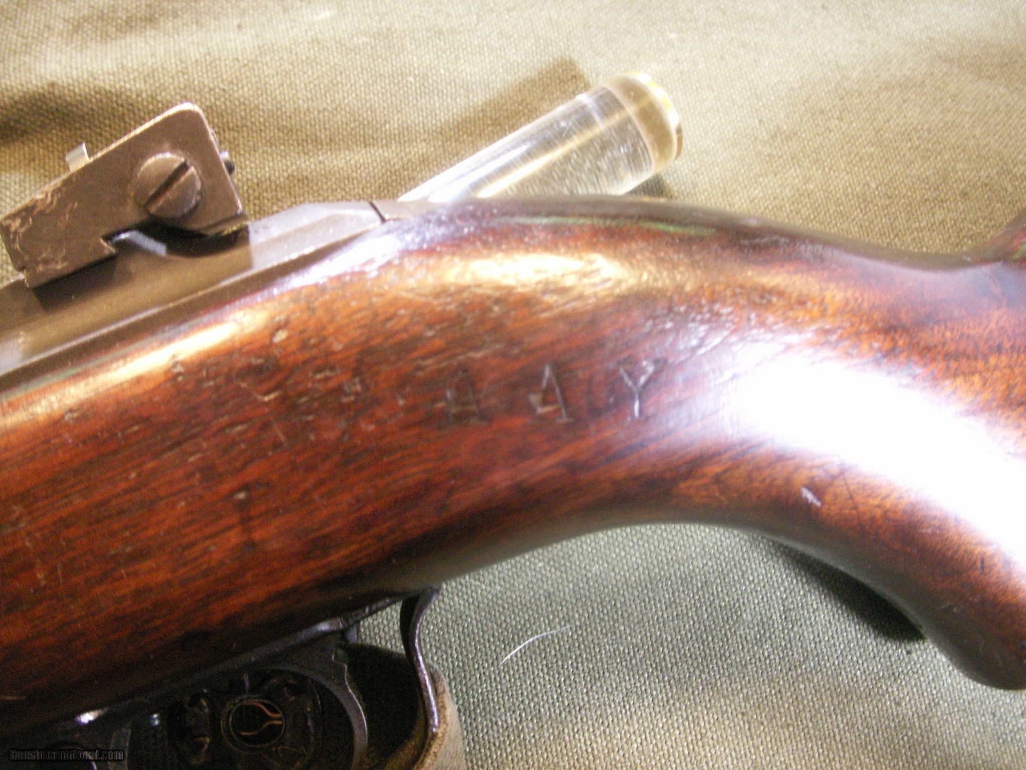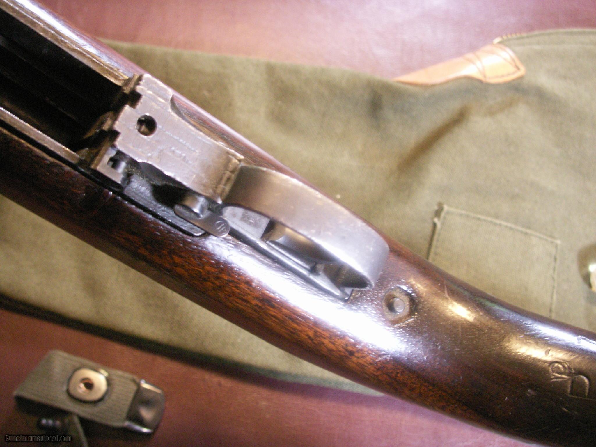 Description: SOLD PENDING FUNDS: Standard Products M1 Carbine Arsenal Reworked by Augusta Arsenal. Originally manufactured in 1943. Caliber is .30 Carbine cartridge. It has a Underwood barrel dated 1 - 43, Inland stock, early flat bolt, and no bayonet lug. The condition is rated at 85% mainly due to the dings in the stock as the metal condition is much nicer. It comes with 5 magazines (4 military, 1 after market), canvas sling and reproduction canvas case. SOLD Curio/Relic: Yes |