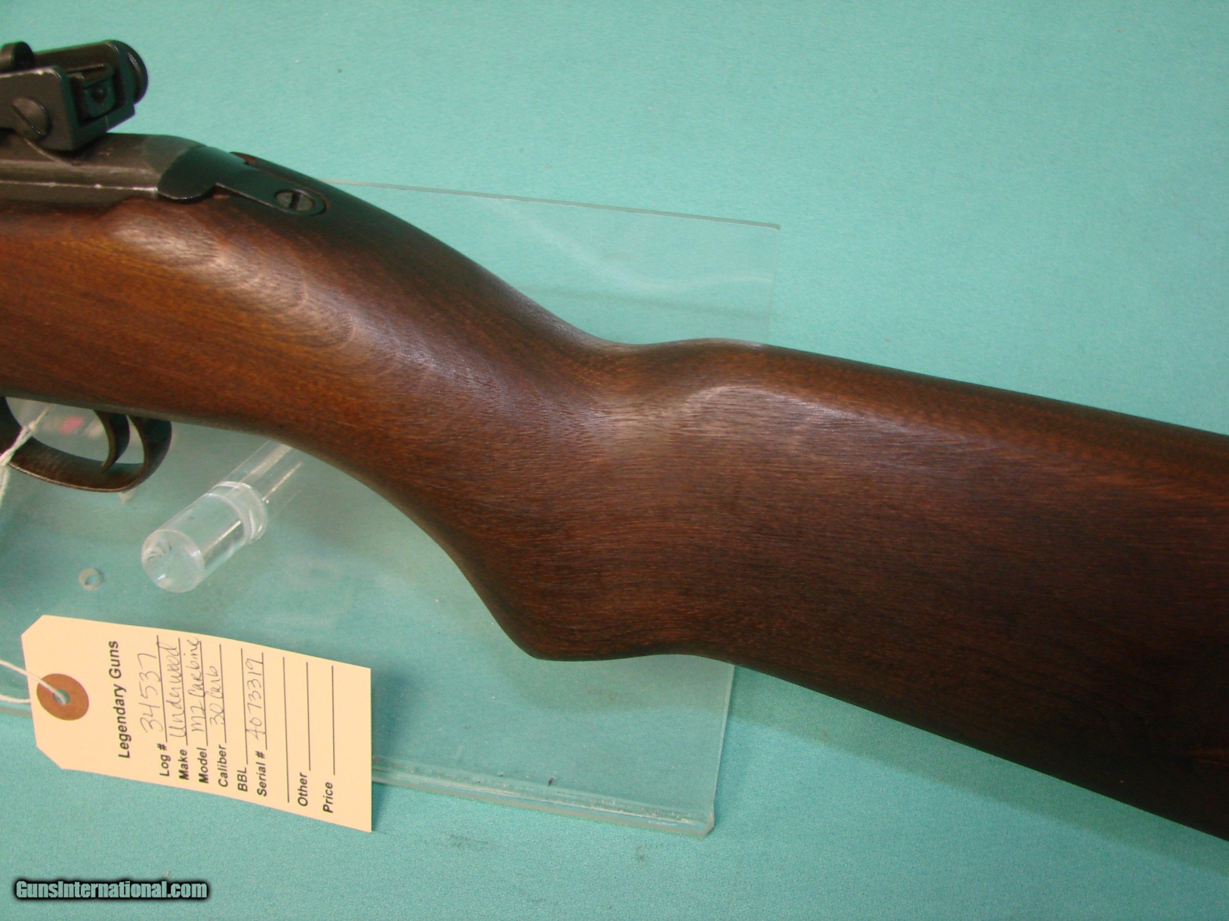 Description: Underwood M1 Carbine in 30 Carbine, No import marks, Underwood barrel dated 2-43, 4073xxx serial number, adj rear sight, sharp cartouches on stock, very good bore. Carbine is in very good condition. *Legendary Guns in Phoenix AZ 602-242-1195 Hours of operation Tuesday-Friday 10-6 Sat 10-5 Closed Sundays & Mondays *No Additional Credit Card fees, You only pay for the cost of the item and shipping. We accept all Major credit cards, Postal Money orders or Certified Bank Checks{Checks & Money order payments ship after payment has cleared} *Shipping is $50 for rifles/shotguns {AK & HI Extra} and $35 for handguns. Arizona Residents Must Pay Sales Tax. We do not ship Internationally *We offer a 60 day layaway on purchases of $500 or more. Items require 1/3 of the total price as down payment which is NON-REFUNDABLE and you have 60 days to pay off the balance. *Please call or email the shop for any questions and to confirm availability before buying. We are happy to answer all questions. All items online are also for sale at our Phoenix location *We offer a 3 day inspection period with a full refund if item was misrepresented. We accept returns for any reason within the 3 day inspection period with NO REFUNDS ON SHIPPING CHARGES and a 15% restocking fee. *We Only accept/consider trades that can be brought to our Store in Phoenix. *If it’s legal in your area we will sell it, that includes California. P65Warnings.ca.gov SOLD Model: M1 Carbine Caliber Info: 30 Carbine Condition: Used |