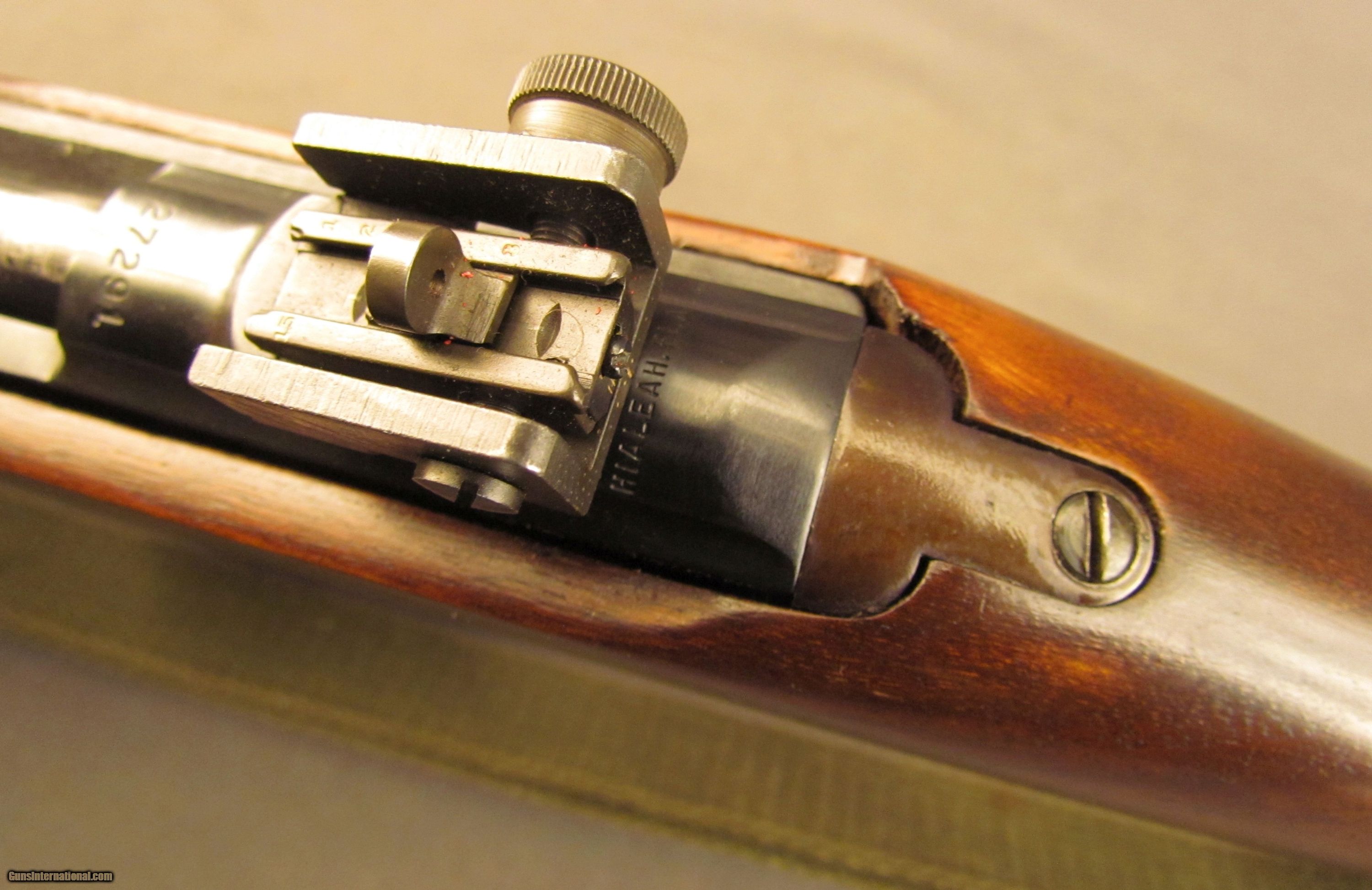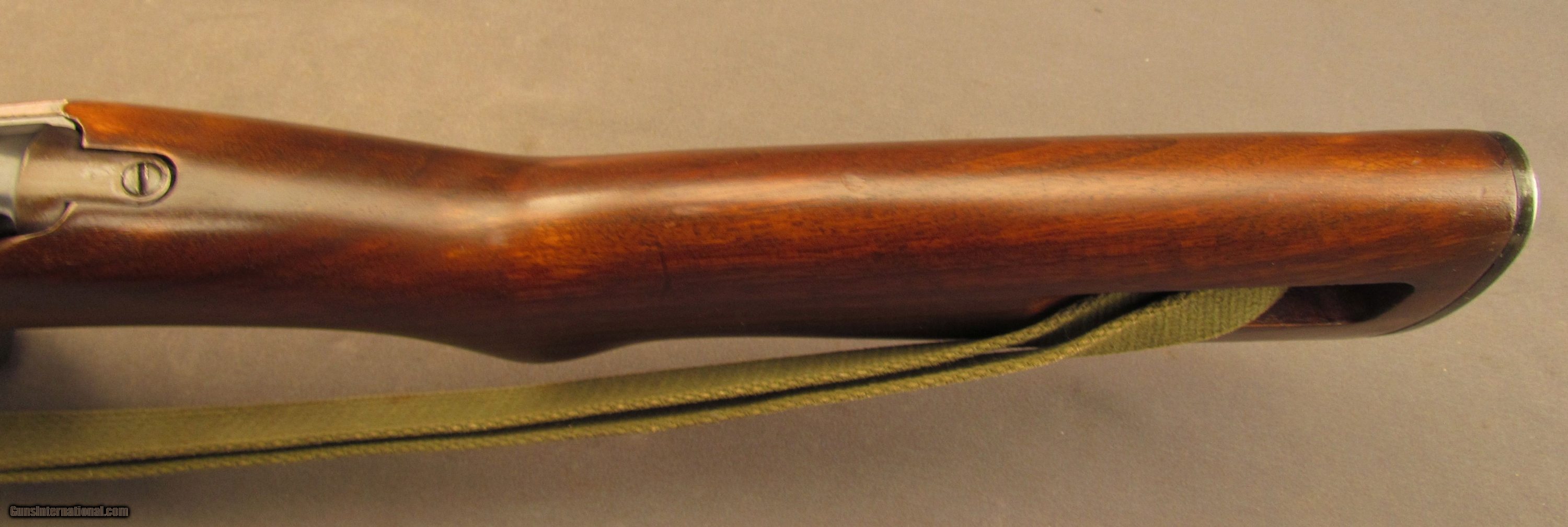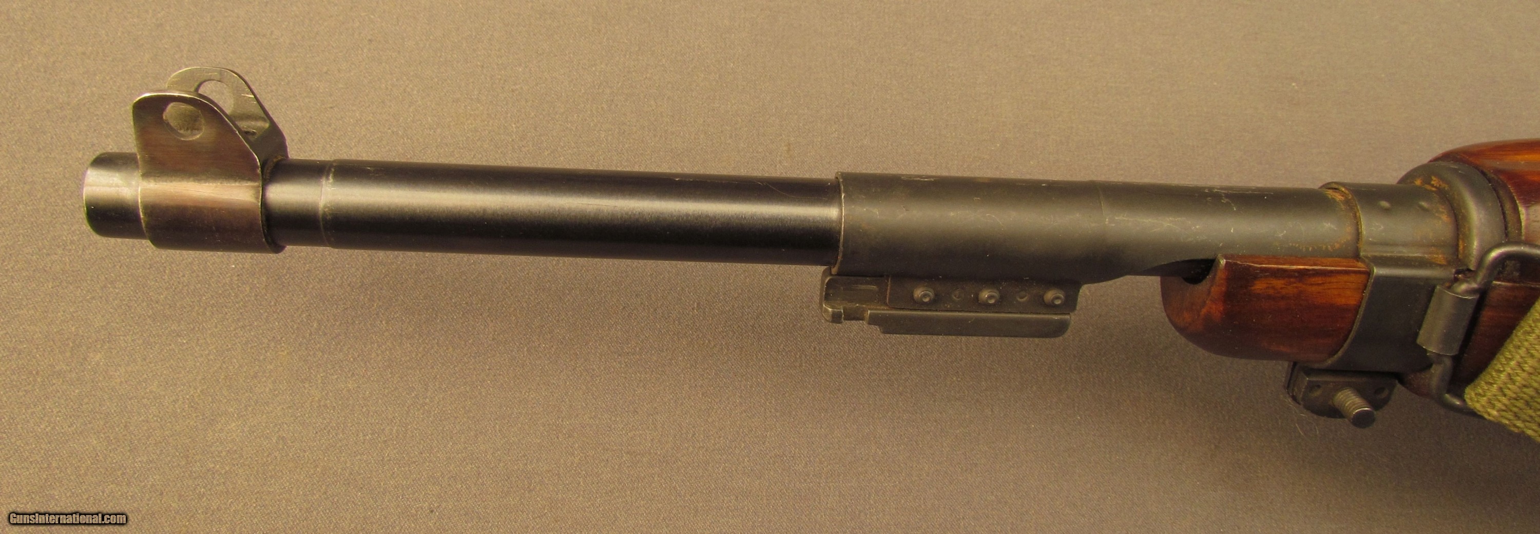 Description: Serial #272291, .30 Carbine, 18" barrel with an excellent, bright bore. The metal surfaces of this commercially produced M1 retain 95-97% of the original blue with some silvering on the bolt, slide raceway, muzzle, and projecting edges. The walnut stock rates very good plus, and has an added oil finish over scattered light blemishes and small handling marks. A single 15 round GI magazine, metal oiler, and a GI style OD canvas sling are included. This is a nice, high quality carbine in fine overall condition. FFL SOLD Curio/Relic: Yes Manufacturer: Universal Model: M1 Serial Number: 272291 Caliber Info: .30 Carb Gauge Info: .30 Carb |