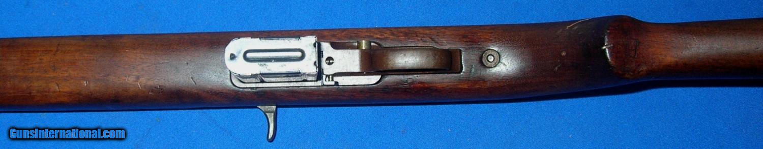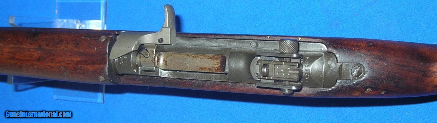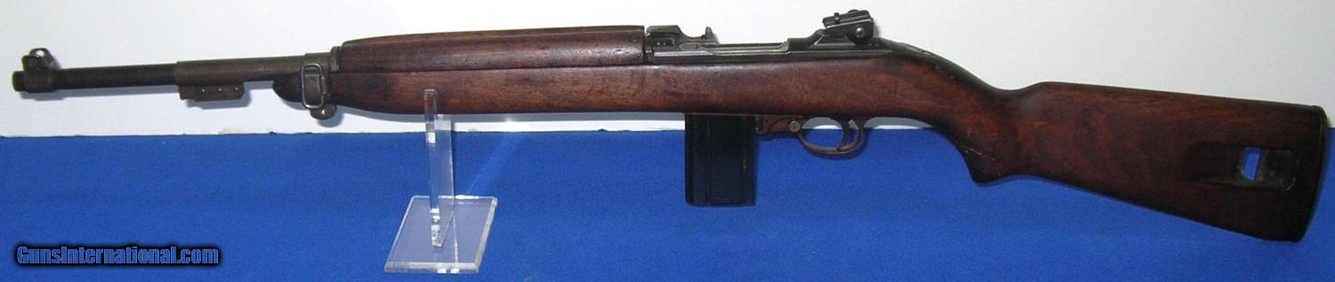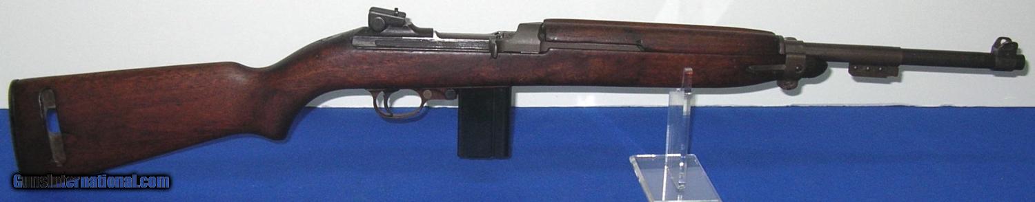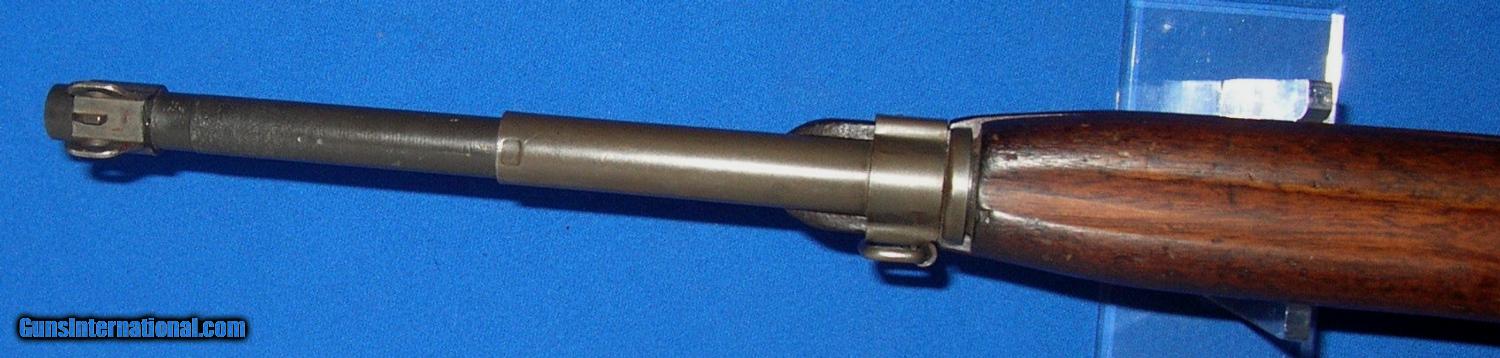 Description: SOLD Pending Funds / U.S. M1 Carbine, manufactured by Inland Division, serial # 6631599, cal. 30 Carbine, with an 18" barrel and a very good bore, metal surfaces retains about 85%+ of an arsenal reparkerized finish that is more faded on the barrel and the bearing surfaces, the barrel is marked Underwood and the date has been obscured by very light pitting under the repark, hardwood Hi-wood stocks rate very good condition as well as the two rivet hand guard but have been refinished and are void of any cartouches, this type Ill built carbine has many late parts and includes a 15 round blued magazine that is marked “OIB”, overall condition is good plus plus. Inv.: # 2-1606 SOLD Curio/Relic: Yes |