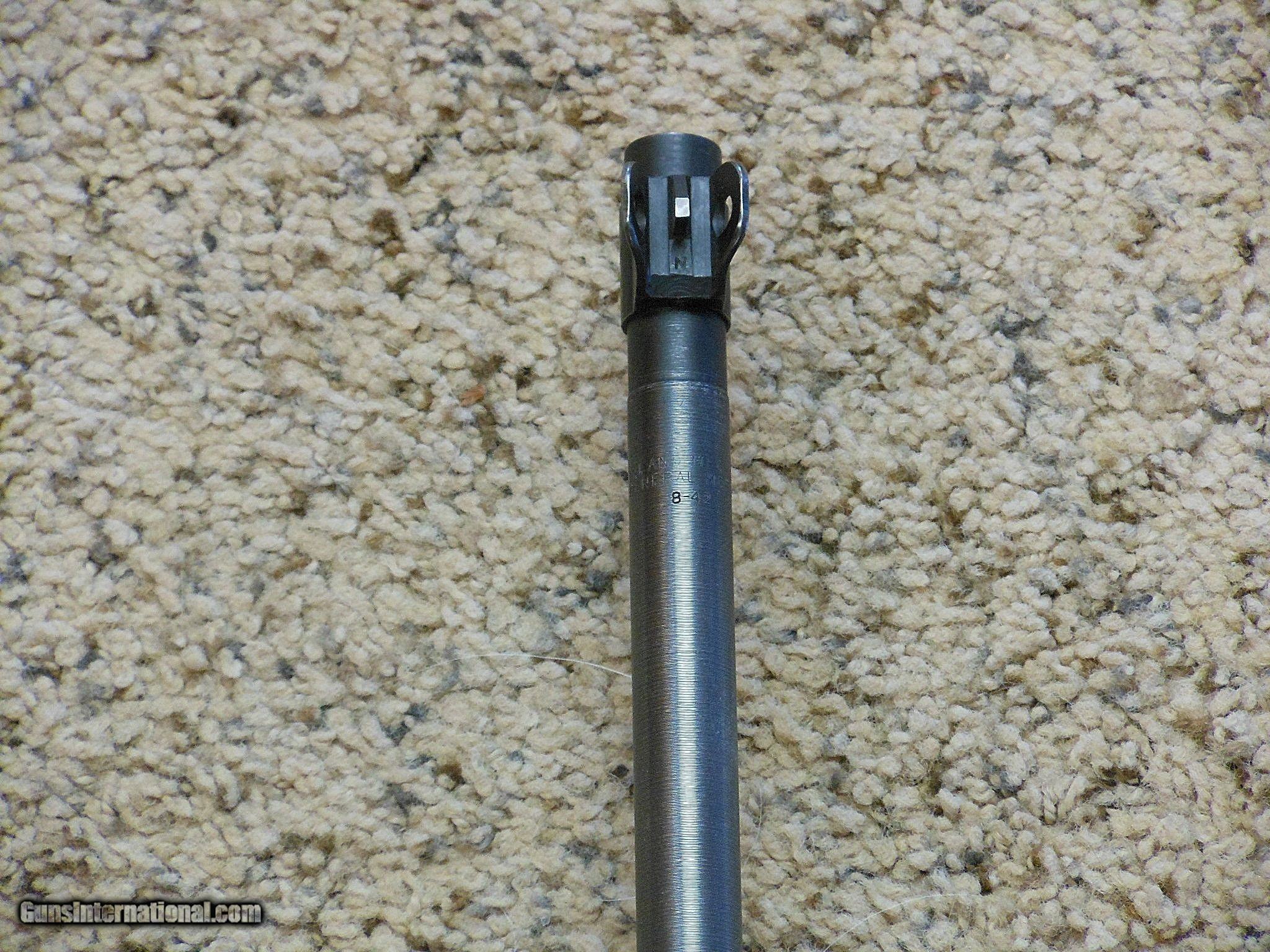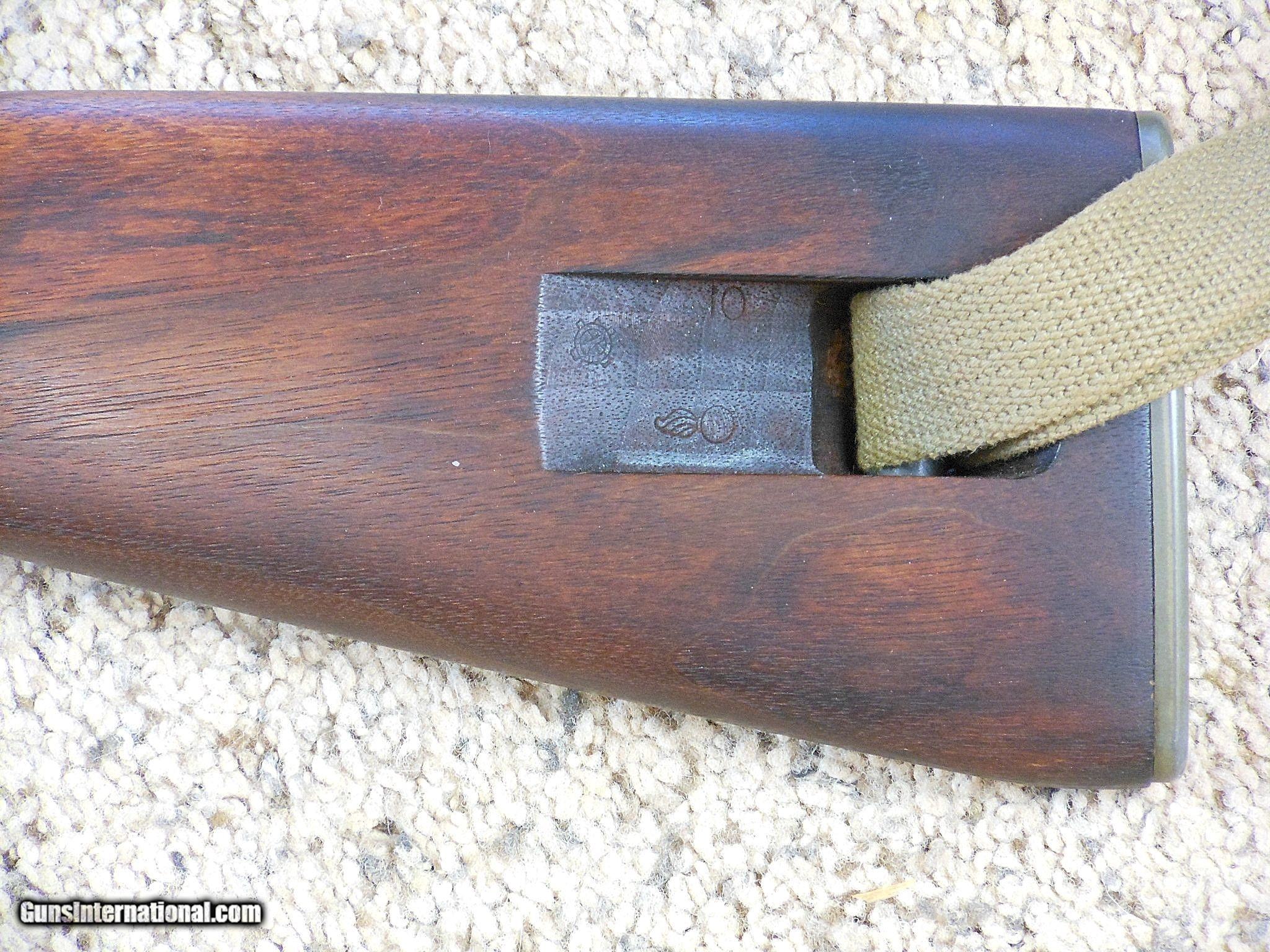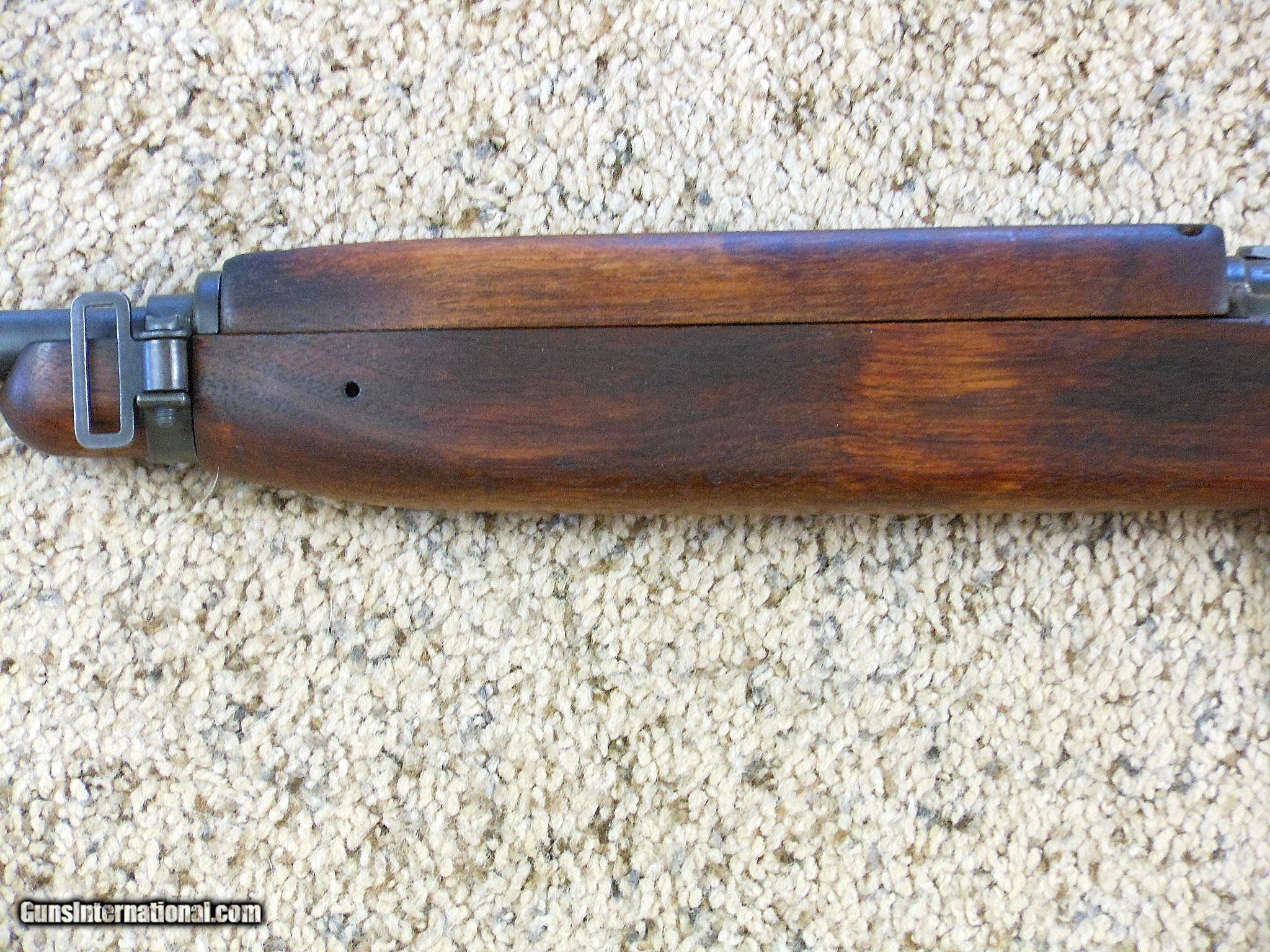 Description: The barrel date is 8-42. The carbine's serial number is 35901. This is an original as issued carbine. It is not a rebuild. All the early parts are original and correct for the serial number range and date of production. Some of these early parts in this carbine were only used for a very short time in production. The bore is bright and new looking. The original finish is intact on all the parts and barrel. It has the correct wide groove handguard. The stock has the correct codes in the sling cut. The sling and oiler are correct early World War Two issue for Inland. The flat bolt bluing is faded on the top. All the parts in the bolt are correct for this gun. The stock and handguard have no cracks or other damage. The sights are original to this carbine. The magazine is the correct coded magazine for this Inland. This carbine shows very little service use or wear. It was never fitted for a type 3 barrel band. The internal parts are in very fine to near new condition. This is a very difficult early carbine to find in original condition today. Most of these guns were rebuilt and upgraded during the war and afterwards. This gun is as it left the factory in August 1942! Search for hlvfineguns on google for more details. Curio&Relic H.L.V. Coll. (9) F. No. 407 -18 SOLD Curio/Relic: Yes Manufacturer: Inland Division Of General Motors Model: M1 Carbine Serial Number: 35901 Caliber Info: 30 M 1 Carbine Condition: 96% Overall Condition Metal Condition: Very Fine Original Condition Wood Condition: Very Fine Original Condition Bore Condition: Very Fine Barrels: 18 Inch Barrel Type: Carbine Action: Self Loading Stock: "I" Stock Stock Dimensions: Military Standard Fore End: Wide Groove Finish: Parkerized Sights: Early Style Manufacture Date: 1942 |
