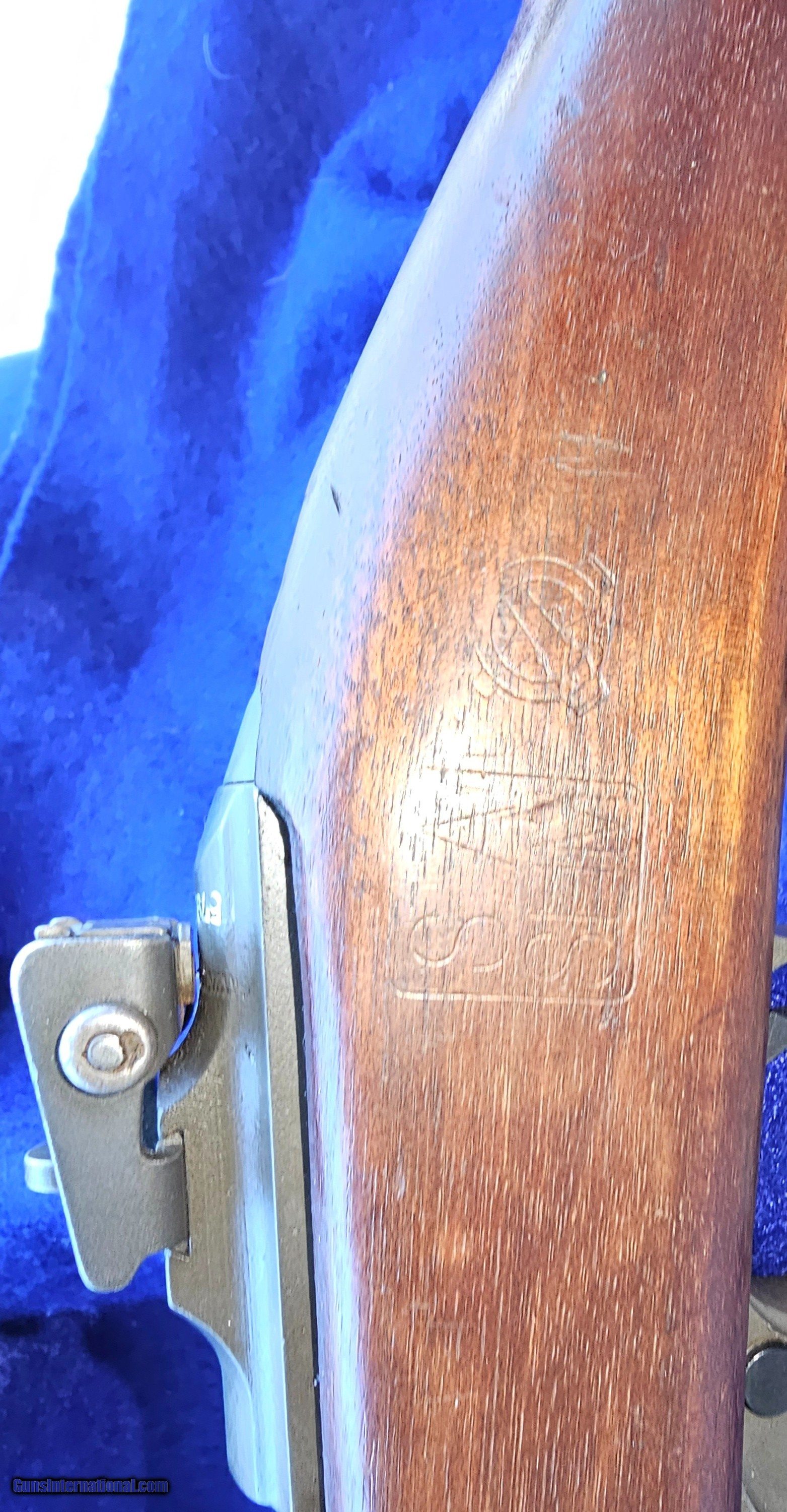 Description: WINCHESTER M-1 CARBINE SER. NO 5793077 GOOD COND. HOW EVER IT HAS A INLAND DATED BARREL . DATED 5-44. STOCK HAS A CART. S.A. SLIM, AND CROSSED CANNONS. HAS FLAT BOLT .IMPORT MARKES ON BARREL CAN NOT MAKE THEM OUT.BAYONET LUG. OTHER THAN THAT IN REALLY GOOD COND. SENT TO YOUR FFL. MORE INFO. CONTACT BUD (772 - 349- 0409) SOLD Rifle Caliber: .30 Carbine Manufacturer: WIN Model: M-1 Serial Number: 57930787 Barrel Length: 18 INCH Condition: GOOD Wood Condition: GOOD Bore Condition: VERYGOOD( |