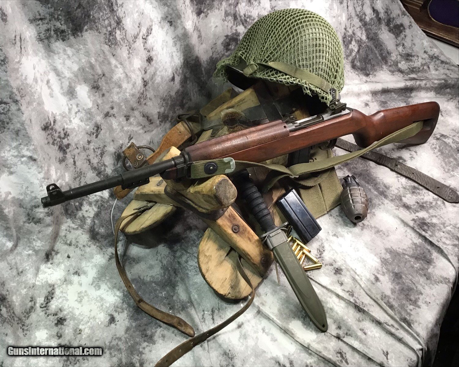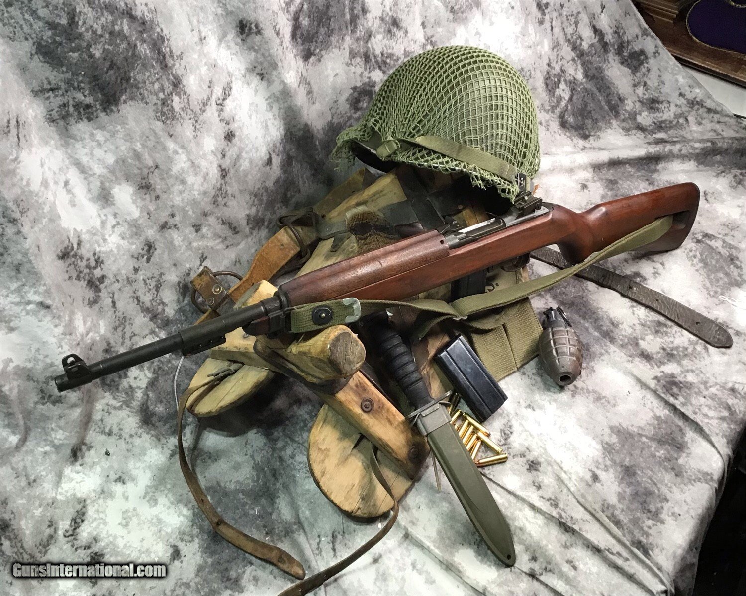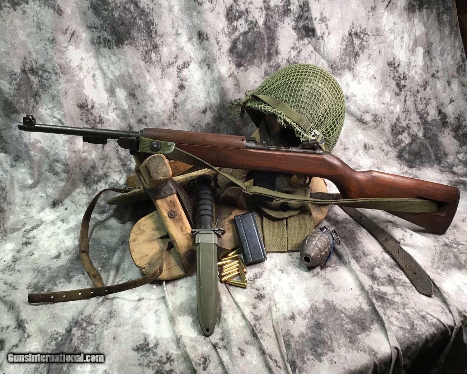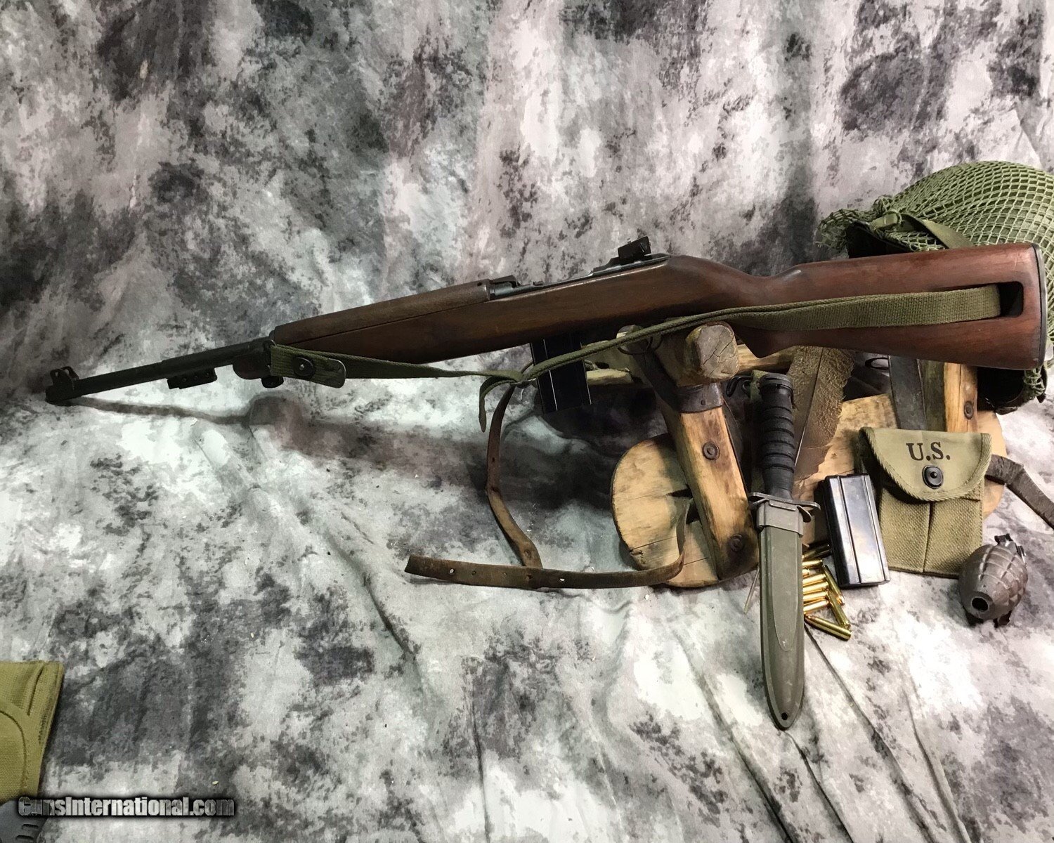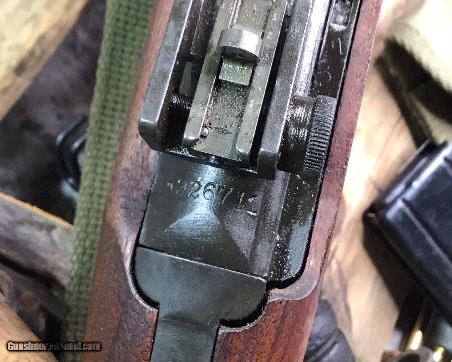 Description: WWII Winchester M1 Carbine, 1st Block Production approx. May 1943. SN:1226741. Winchester Proof marked barrel found 6.5 inches from the muzzle, Milled Type I unmarked sight with typical Winchester thumbnail cut behind the sight blade, two dismount notches on receiver, type II recoil plate marked "W", barrel band marked "C", unmarked small sling swivel, push button safety marked "EW", Type III magazine catch marked "W", Oval cut low wood stock with unmarked sling well SA marked on inside left front, unmarked oiler, olive drab sling with early C-tip and early flat buckle, early Winchester splatter butt plate, Type II handgaurd W/2 rivets marked "PU", Type II flat bolt, rear sight marked "SA". Overall a very nice Winchester M1 carbine ready to enjoy shooting a piece of WWII US history at the range or be a safe Queen. I'm no expert on carbines so please inspect the pictures and ask any questions. I'm a one man store and I answer the phone, Jerry. ) Interesting trades considered Add 3% if paying with credit card. God Bless America from a proud American, and a Viet Nam Vet , thankful for our freedoms.. paid for by the Blood ,Sweat and Tears of our brave men and women in uniform. Ten Below Firearms is a Veteran owned and operated business. We specialize in out of production models of high quality firearms. We love to ship! If you are out of state or can't make it to our store, just give us a call! Handguns normally ship for $30 and Long guns for $40 to $55 for extra length long guns. That's 2-3 day USPS Priority shipping, Delivery conformation and with tracking number. Optional Postal insurance is additional $1.50 per $100 and highly recommended. SOLD Curio/Relic: Yes Rifle Caliber: .30 Carbine Manufacturer: Winchester Model: M1 Carbine Serial Number: 1226741 Condition: Very good Metal Condition: Very good Wood Condition: Very good Bore Condition: Very good Action: Semi-auto Stock: Wood Finish: Parkerized Manufacture Date: 1943 |