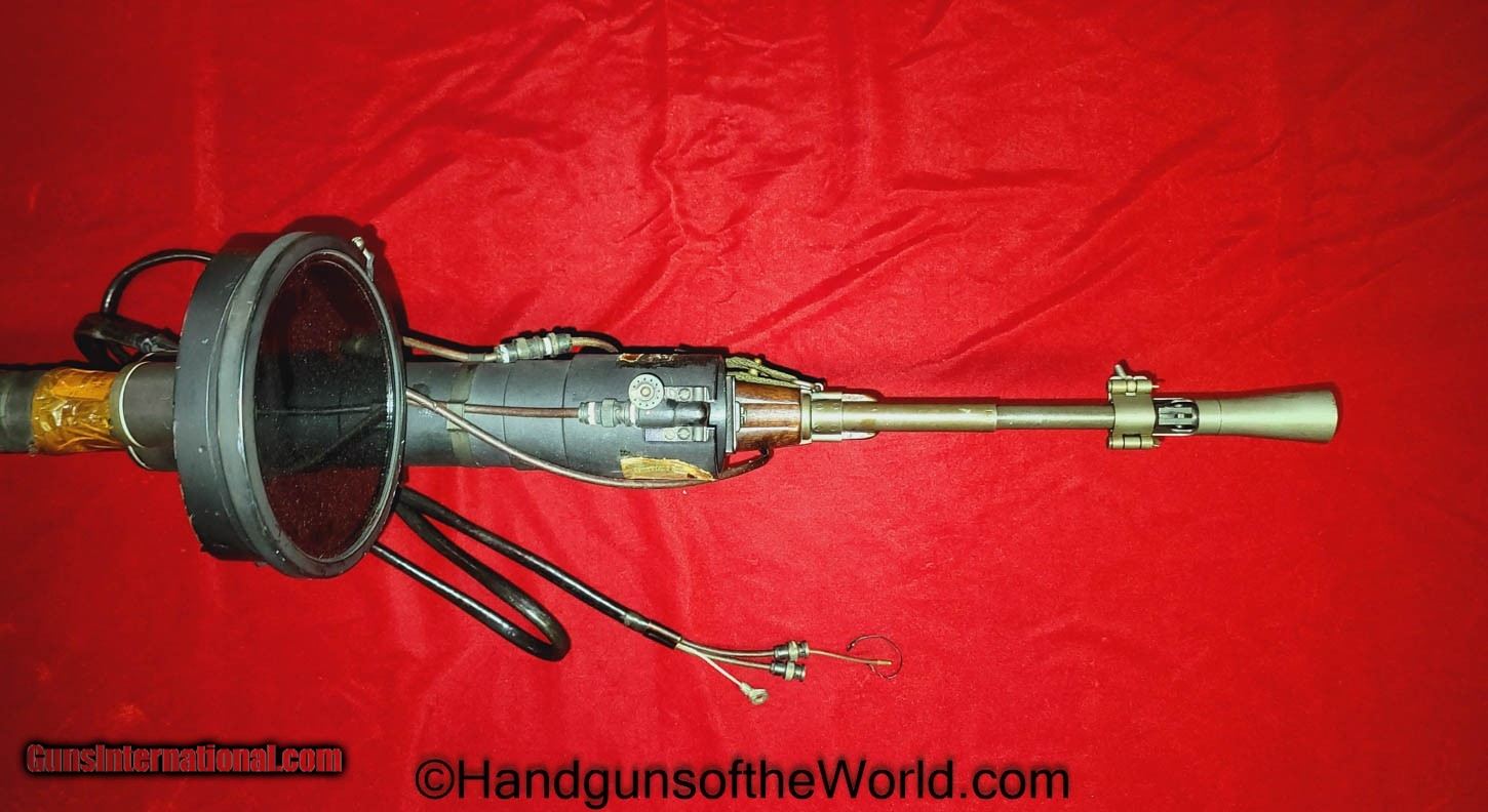 Description: Winchester M1 Carbine, .30 carbine caliber with an M3 Capehart-Farnsworth infrared sniper scope attached. This is an arsenal rebuilt with the serial number in front and behind the rear sight. Most parts are Winchester, but an arsenal rebuilt would have a variety. This has the 30 round magazine, flash suppressor and sling. The olive drab wood carrying case for the scope has most parts inside. The Cartouche on the walnut stock is nice, as is the wood. This retains about 95% finish and the bore is excellent Curio/Relic: Yes Rifle Caliber: .30 Carbine Manufacturer: Winchester Model: M1 Carbine Price: $6,000.00 Shipping: $55.00 Contact Seller |