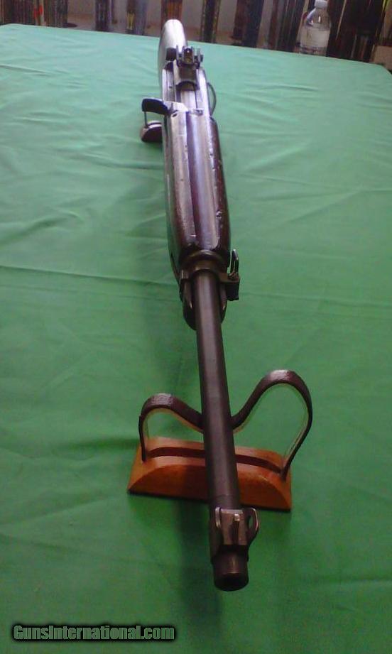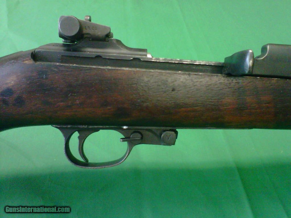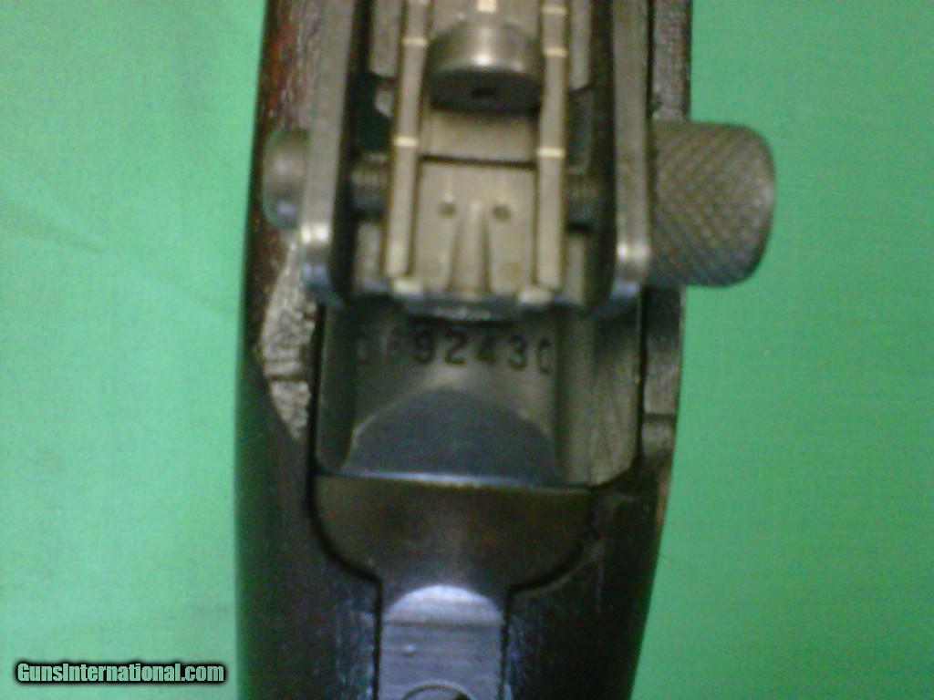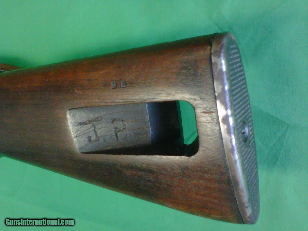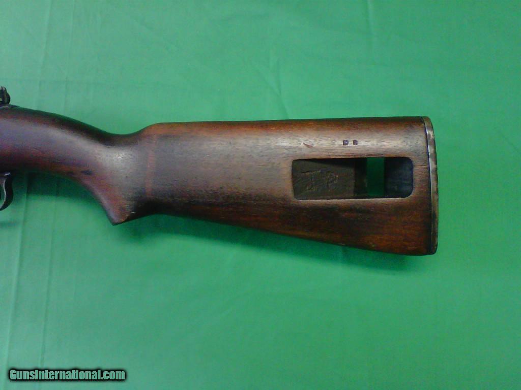 Description: A World War II M1 Carbine Rifle with a Marlin Barrel Made by ROCK-OLA Manufacturing Company in Chicago, Illinois, U.S.A. under contract to the U.S. Military. .30 Cal Semi-Automatic 18" Barrel Peep Sight Serial # 1692430 Very good condition: a nice dark wood, with irregularities in the color, some nicks, and the initials J.P. carved in the stock where it would be hidden by a gun strap. Some wear, visible in the photos. Solid, in full working order. Letter P stamped on the stock behind the trigger. Letter U stamped on the metal ring holding the front strap lock. Letters "S. H.B." stamped inside the stock below the large hand carved initials J.P. Letters HB or MB also stamped on the stock above, difficult to decipher the first letter. M stamped in metal by trigger lock. "I.R. CO". stamped on the side of the rear sight. *SOLD* SOLD Curio/Relic: Yes Manufacturer: ROCKOLA Model: M1 Carbine Serial Number: 1692430 Caliber Info: .30 M1 Condition: Very Good Metal Condition: Very Good Wood Condition: Very Good Barrels: 18 Sights: Peep Engraving: "U.S. CARBINE CAL. .30 M1. Item Location: Valatie, N.Y. |
