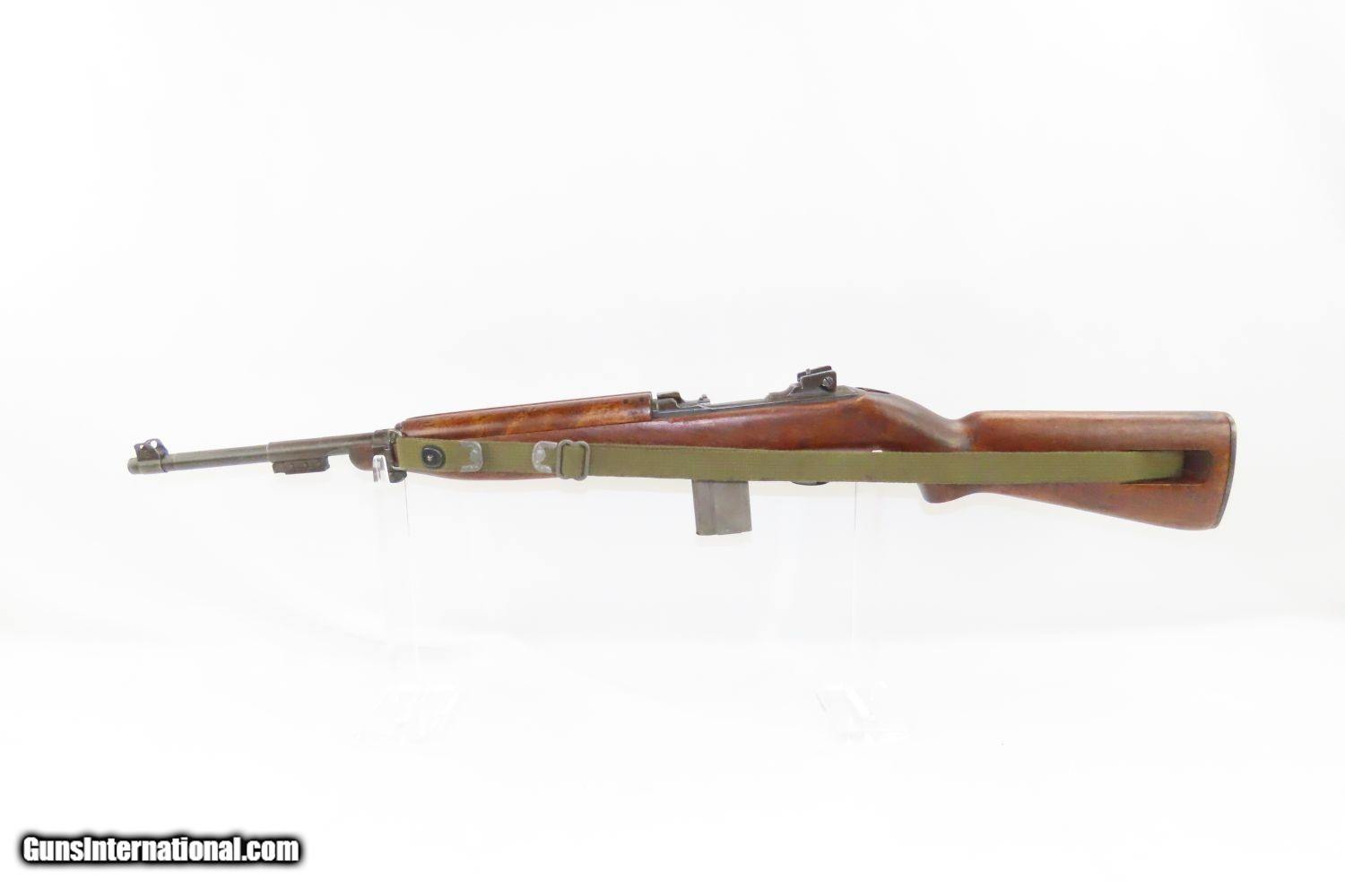 Description: World War II US NATIONAL POSTAL METER M1 Carbine Light Rifle .30 Caliber 1944 Dated Inland Mfg. Div. General Motors Barrel! Here we present a National Postal Meter U.S. M1 Carbine Semi-Automatic Rifle, manufactured circa 1943-1944 in Rochester, New York. This .30 caliber semi-automatic rifle was first used by the United States Armed Forces on October 22, 1941. Of the 6,110,730 carbines made of all types built during the war, National Postal Meter manufactured 413,017, or about 6.8% of the total between 1943 and 1944. National Postal Meter M1 carbines are one of the scarcer contractor carbines made. This example is equipped with an Inland/Arlington Ordnance barrel. Despite having similar name and appearance, the M1 Carbine is not a carbine version of the M1 Garand rifle. They are different firearms and use different ammunition. Prior to World War II, U.S. Army Ordnance received many reports that the full-size M1 Garand was too heavy and cumbersome for most support troops, such as mortarmen and radiomen to carry. During prewar and early war field exercises, it was found that the M1 Garand impeded these soldiers' mobility, as a slung rifle would frequently catch on brush, bang the helmet and tilt it over the eyes. Many soldiers found the rifle slid off the shoulder unless slung diagonally across the back, where it prevented the wearing of standard field packs and haversacks. Additionally, Germany's use of glider-borne and paratroop forces to launch surprise ‘blitzkrieg’ attacks behind the front lines generated a request for a new compact infantry weapon to equip support troops. This request called for a compact, lightweight defensive weapon with greater range, accuracy and firepower than handguns, while weighing half as much as the Thompson submachine gun or the M1 Garand. The U.S. Army decided that a carbine would adequately fulfill these requirements and specified that the new arm should weigh no more than five pounds and have an effective range of 300 yards. Paratroopers were also added to the list of intended users and a folding-stock version would also be developed. The M1 carbine was also one of the most cost-effective weapons used by the United States military during World War II. At the beginning of World War II, the average production cost for an M1 carbine was approximately $45, about half the cost of an M1 rifle at approximately $85 and about a fifth of the cost of a Thompson submachine gun at approximately $225. The .30 Caliber carbine ammunition was also far cheaper to produce than the standard .30-06 ammunition; used fewer resources, was smaller, lighter, faster and easier to make. These were major factors in the United States military decision to adopt the M1 carbine, especially when considering the large numbers of weapons and ammunition manufactured and transported by the United States during World War II. The overall condition is very good. The action is strong. The bore is in excellent shape and remains bright. “38” is hand painted on the bottom of the forend. This example has a parkerized finish. “INLAND MFG. DIV. GENERAL MOTORS” stamped barrel with a date of “2-44”. Marked “P” on the underside of the stock. This example comes a with canvassling. A fantastic World War II dated carbine! This firearm is classified as a Curio & Relic. Barrel is 18 inches. Caliber: .30 Carbine Overall condition as seen in photos. Very Fast. Very Safe. FREE SHIPPING. Will need to be sent to your local FFL or C&R licensee. This firearm is classified as a Curio & Relic. Guaranteed AUTHENTIC & Includes CERTIFICATE OF AUTHENTICITY. ancestryguns $2450 #201171 SOLD Curio/Relic: Yes |