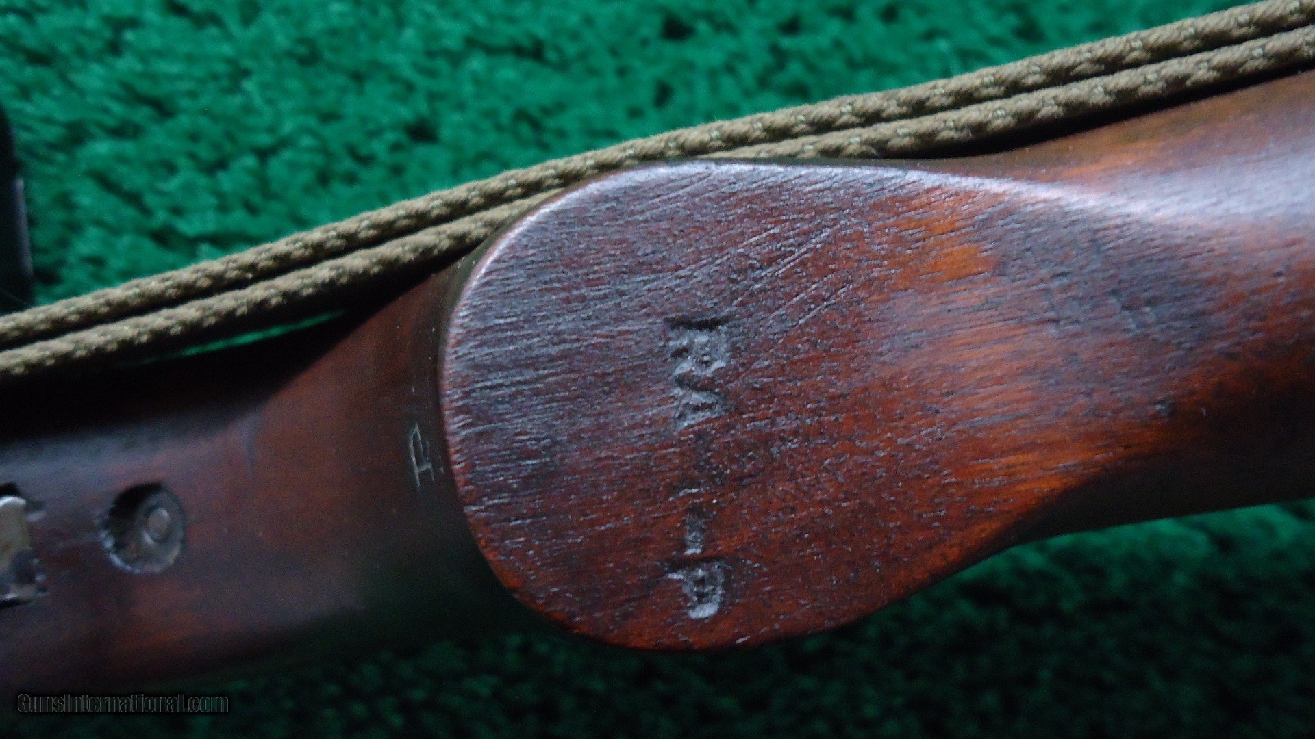 Description: M1 Semi-Automatic Winchester Carbine with 18 inch round barrel chambered in 30 Carbine caliber with a bright shiny bore. "W" marked Winchester barrel without a date. Metal surfaces have been parkerized. "LU" Underwood marked 15 round magazine. Raritan Arsenal rebuild marked Walnut Type 3 Low wood stock. Push button safety switch. Comes with canvas sling and oilier. Made in 1944. Leroy Merz Antique Firearms specializes in antique and vintage Winchesters and other fine American firearms. Since 1965 Mr. Merz has taken part in the world of firearms and has been a contributor to many well known reference books. We have hundreds of additional guns in every price range at our home online. Search for Merz Antiques in google. SOLD Curio/Relic: Yes Rifle Caliber: .30 Carbine |